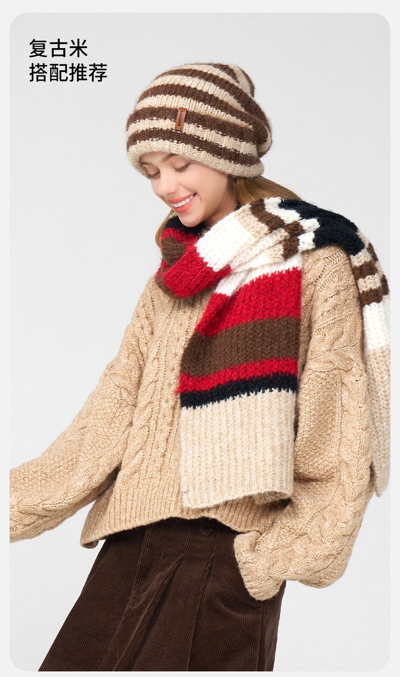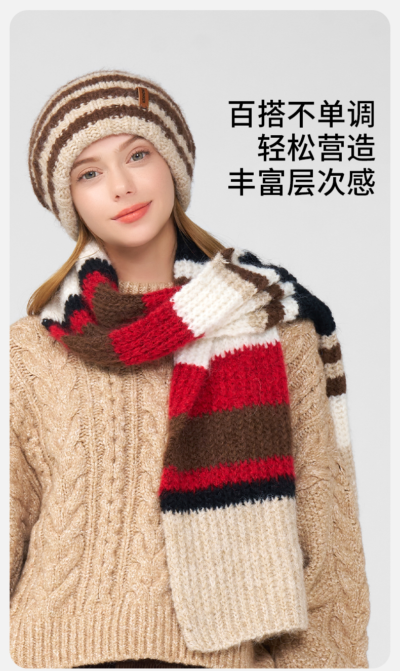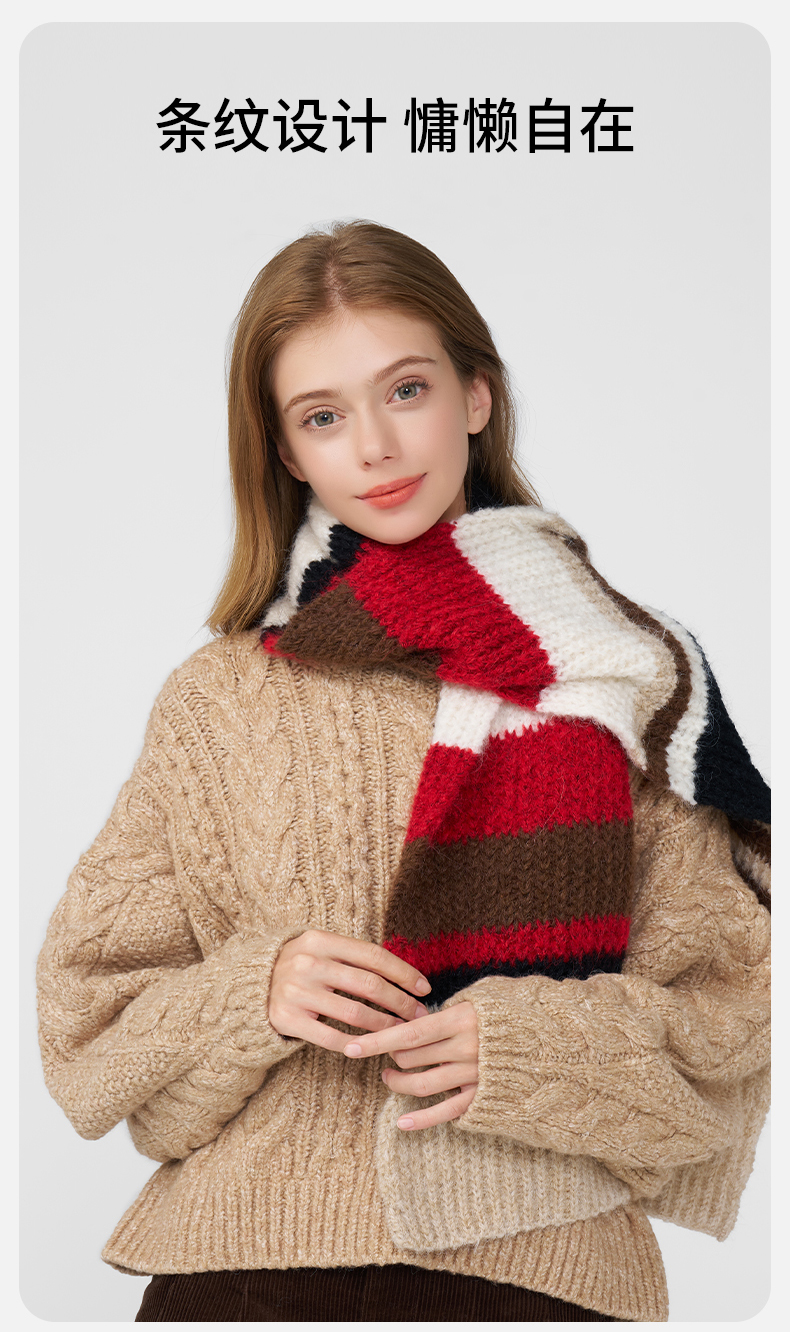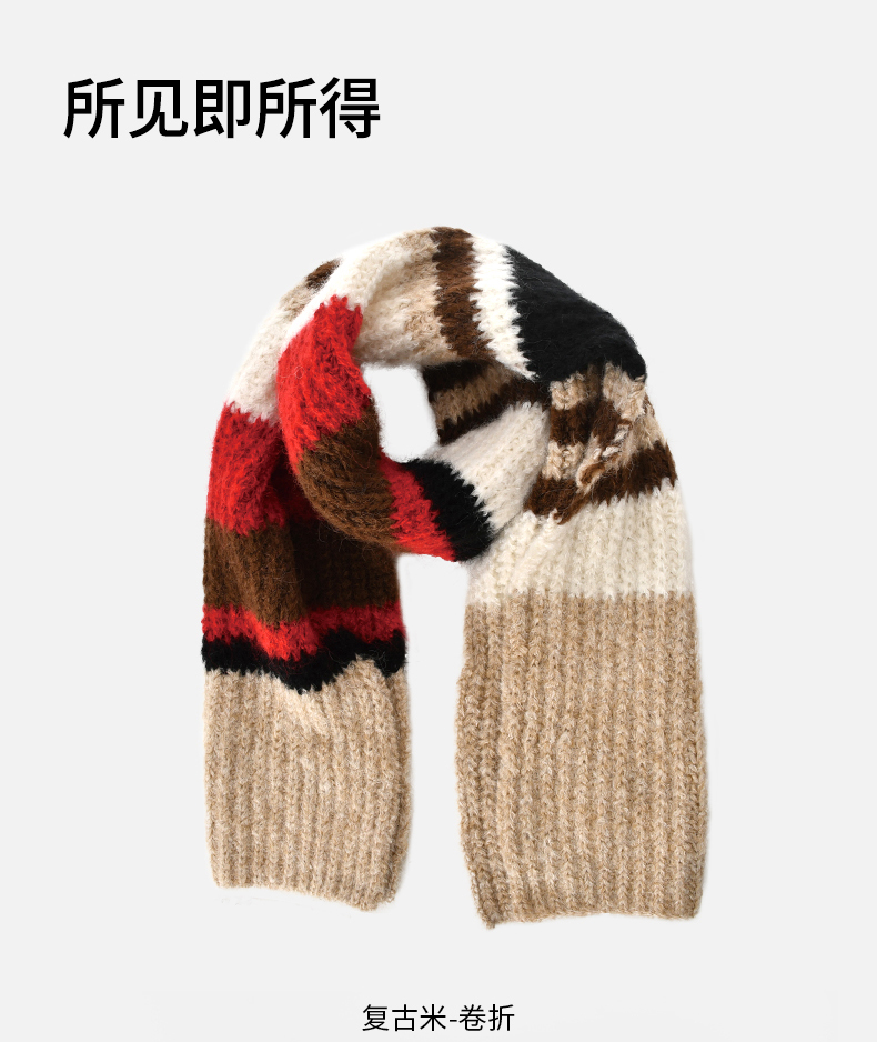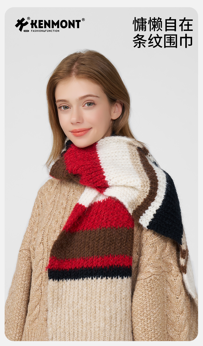 卡蒙冬季拼色条纹百搭随性针织围巾KM-1950