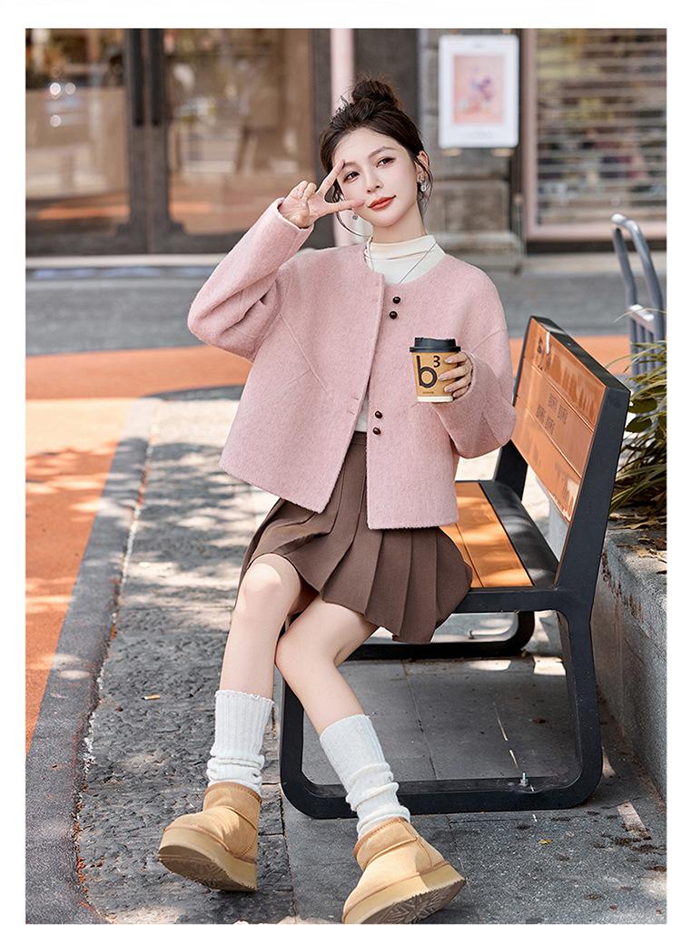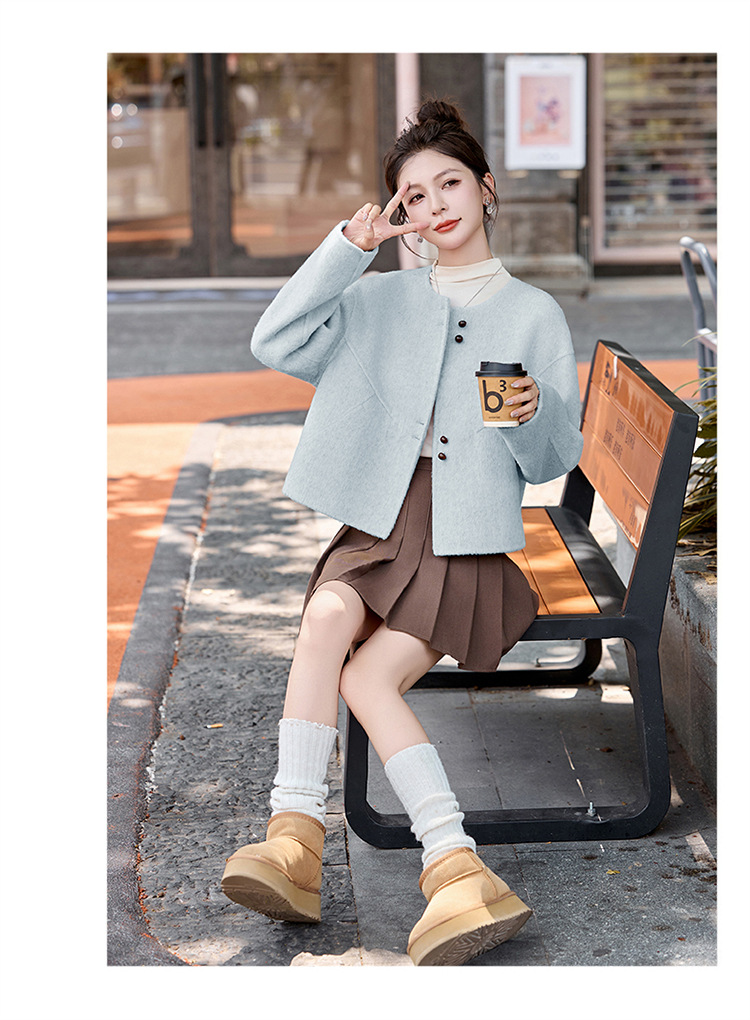 HR YJH5129短款双面羊毛纯色气质外套 商品图4