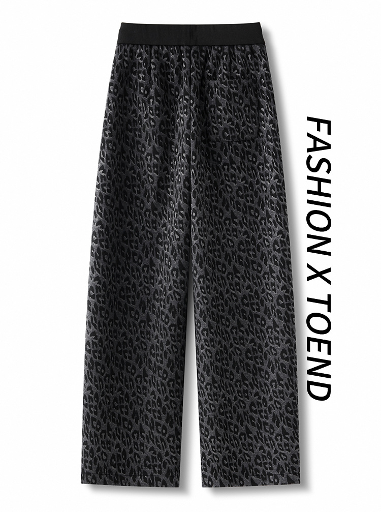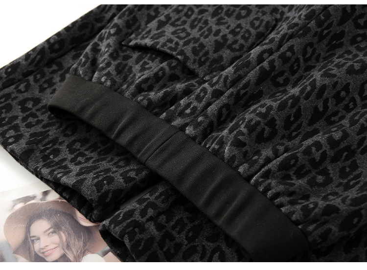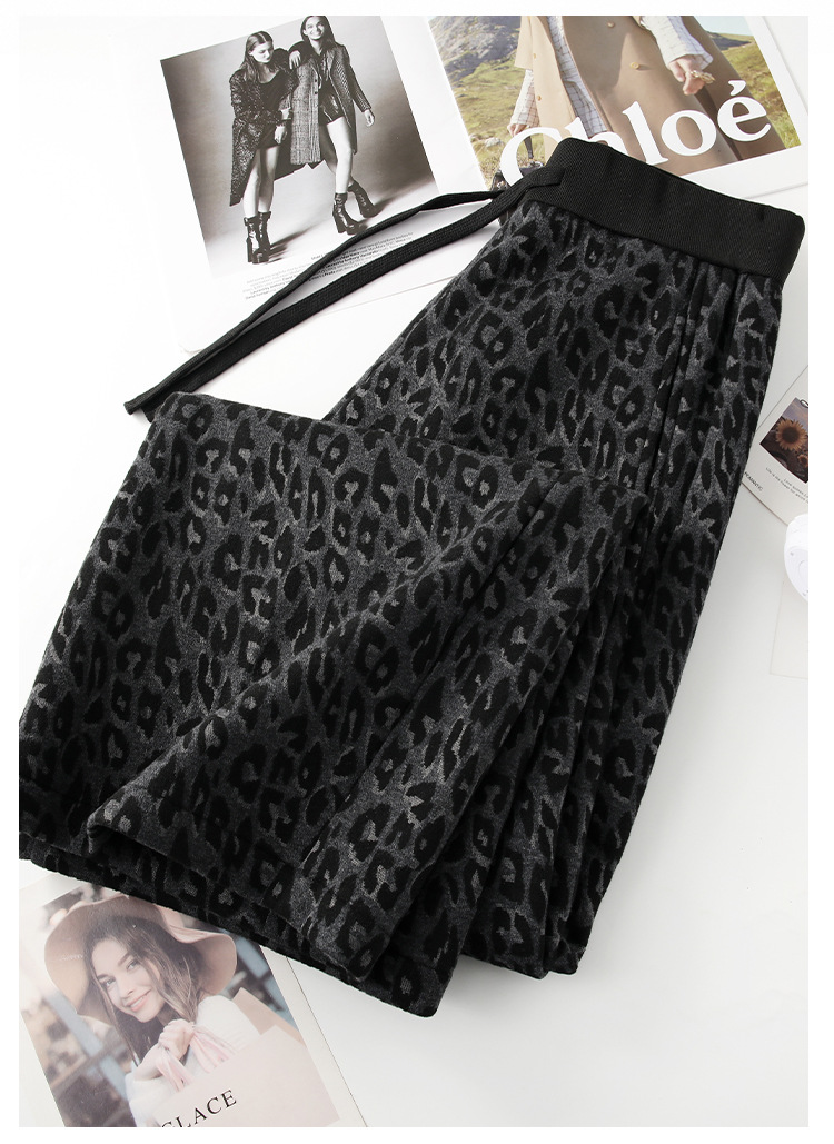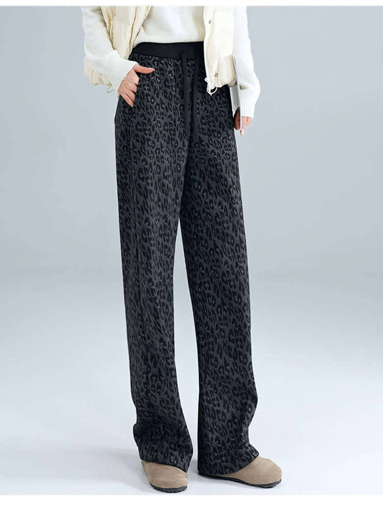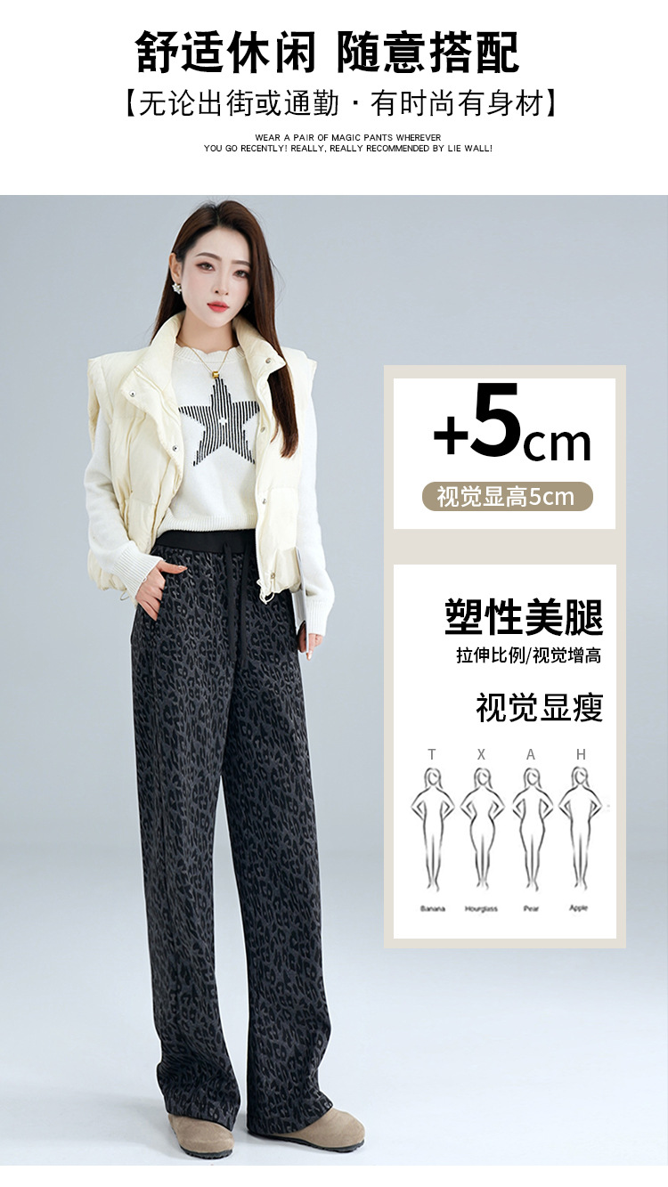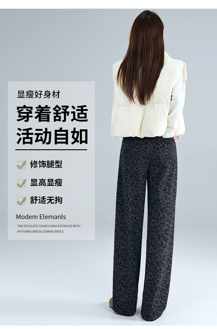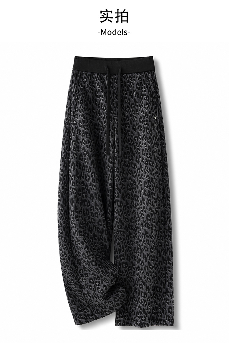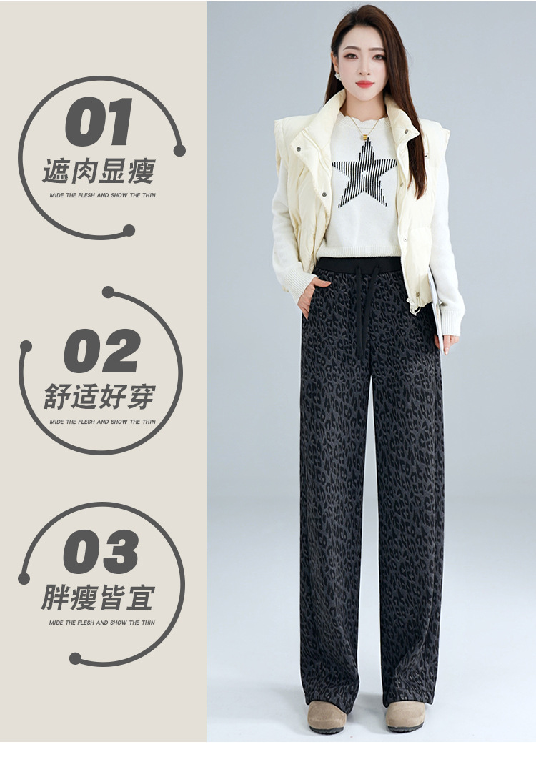 QYM M862-Y加绒保暖阔腿裤松紧高腰厚款保暖裤气质妈妈装豹纹宽松休闲裤