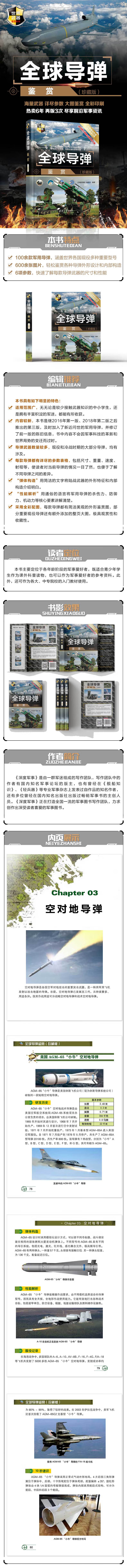 《全球导弹鉴赏(珍藏版)》精心选取了海外各国近百种导弹,类型包括空对空导弹、空对地导弹、地对地导弹、防空导弹、反舰导弹以及单兵便携式导弹等不同种类的导弹。为了增强阅读趣味性,并帮助读者更深刻地了解各类导弹的特性,《全球导弹鉴赏(珍藏版)》将每种导弹的介绍都特意分为研发历史、弹体构造、性能解析、服役记录、衍生型号和10 秒速识等多个板块,并详细罗列了各项参数。