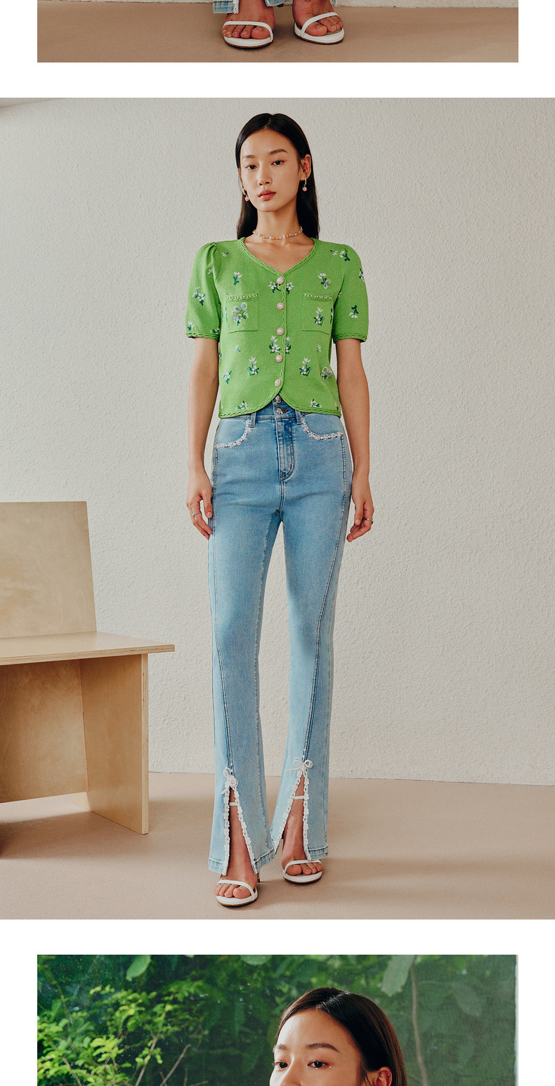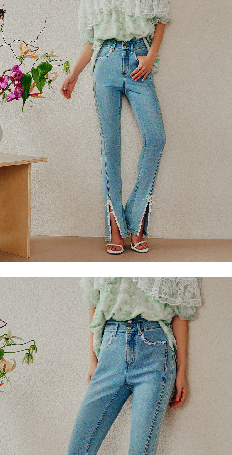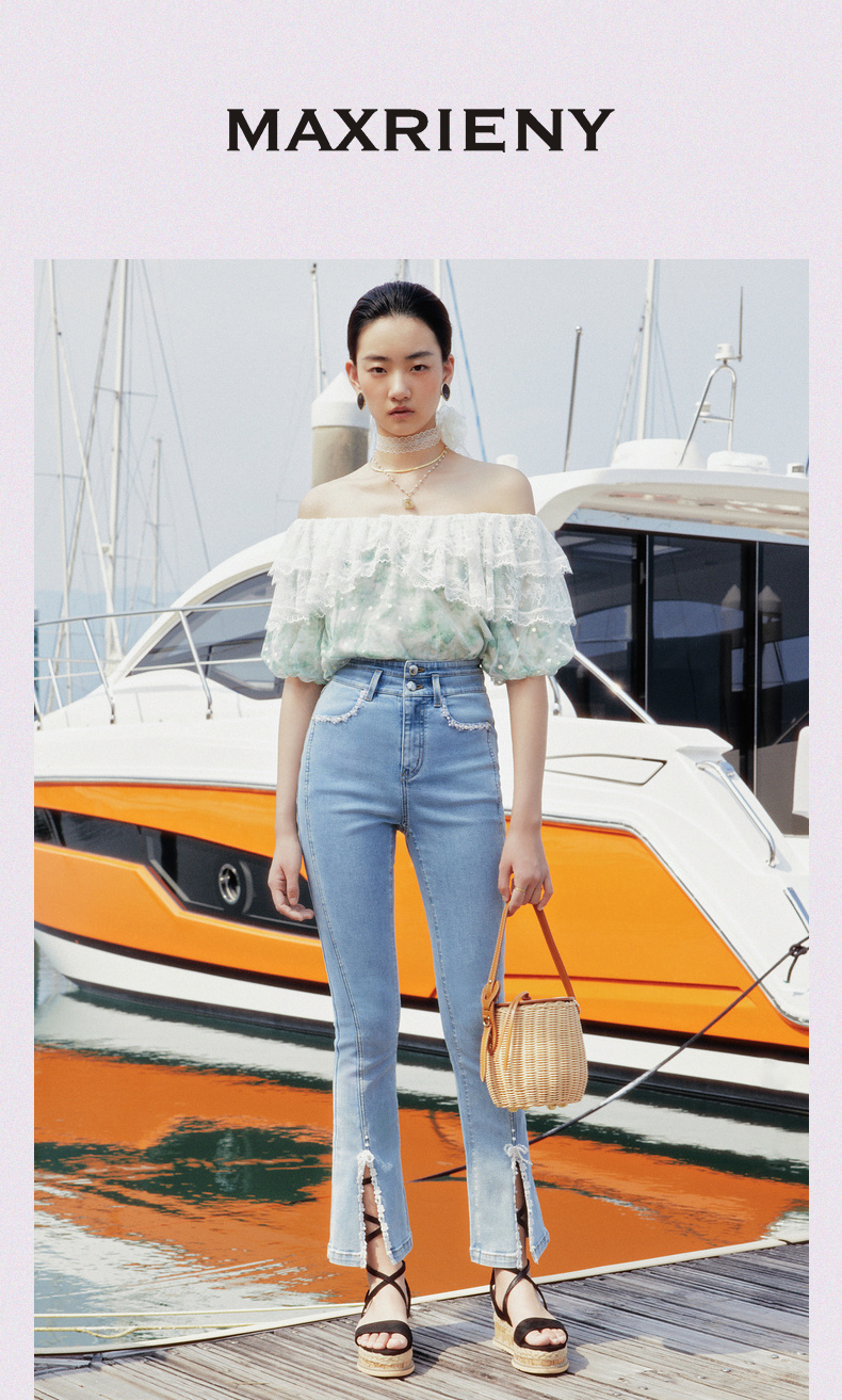 【商场同款】MAXRIENY开叉设计感复古牛仔裤23夏修身显瘦高腰裤子(货号:MC88PA272)