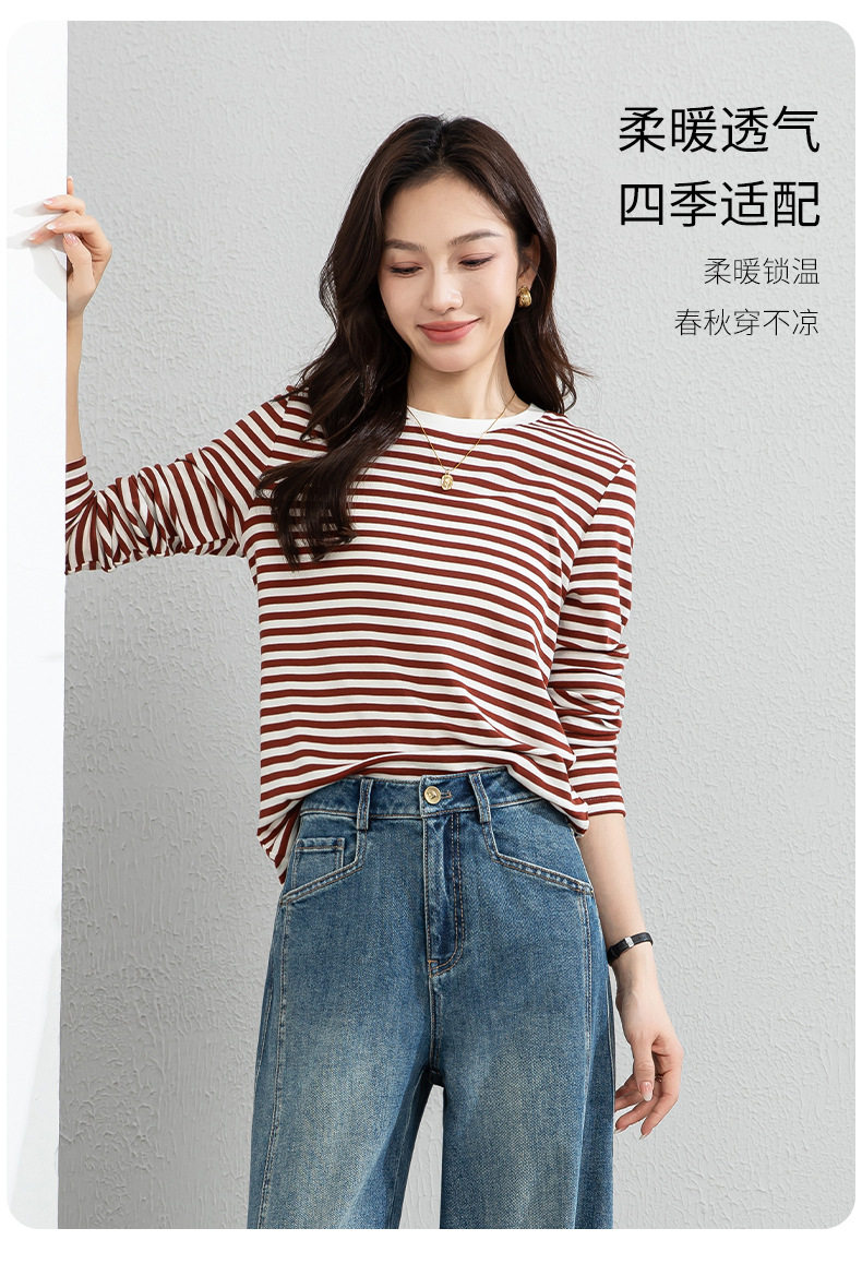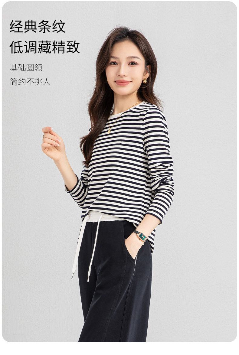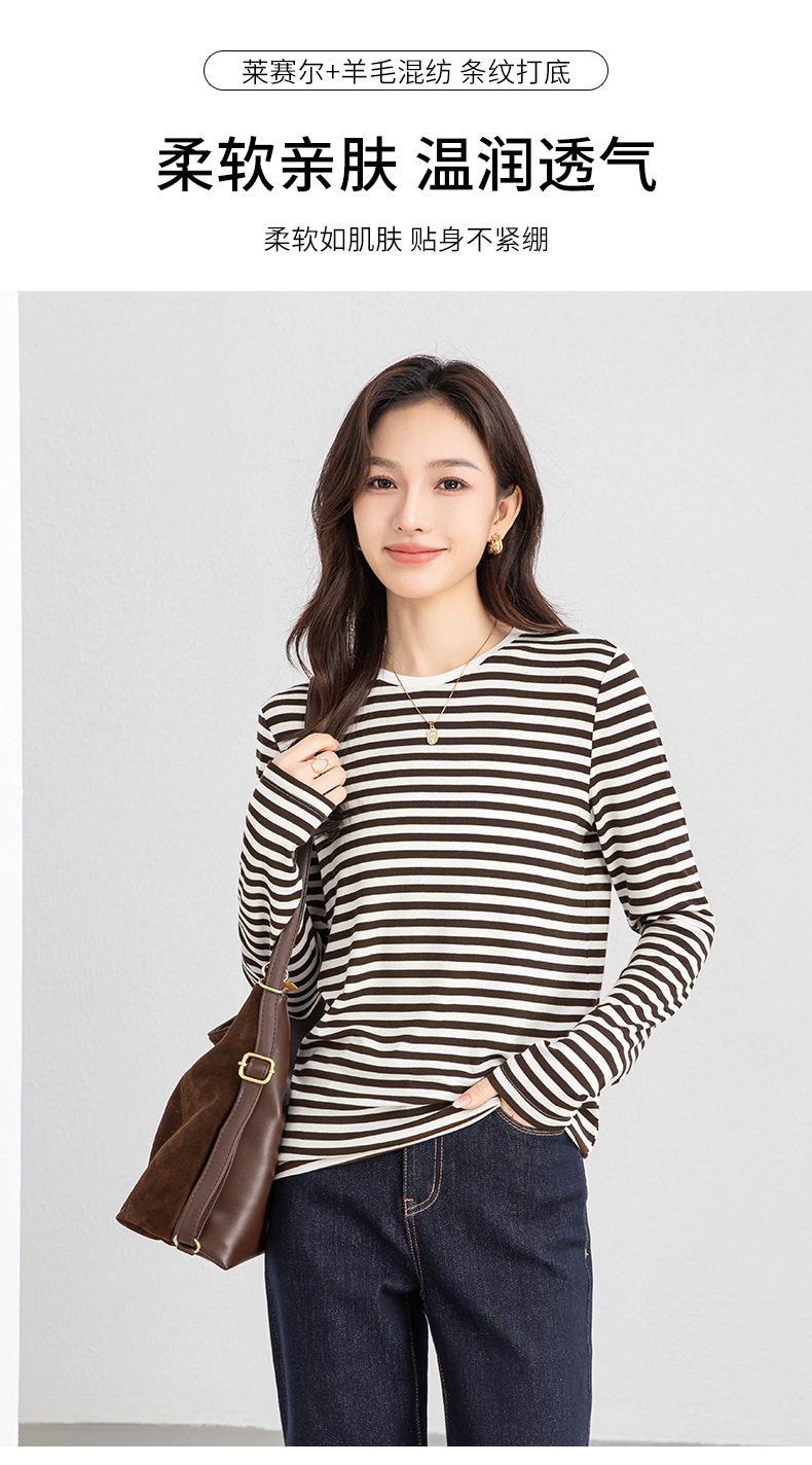 「高货xg」全新升级【铂金会员165/天猫219/差价54】(20609)洛诗琳天丝羊毛条纹T恤2026新款肌理感圆领宽松显瘦上衣