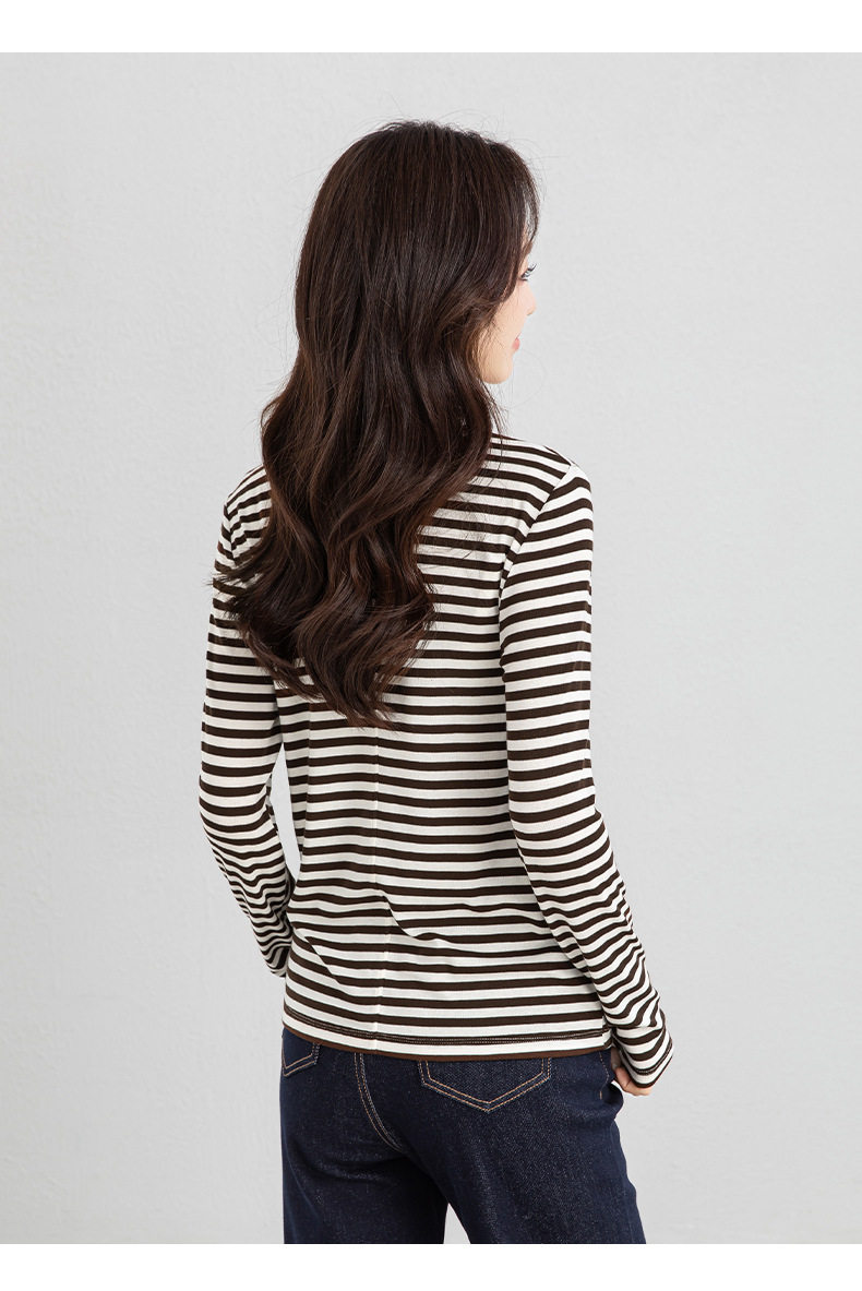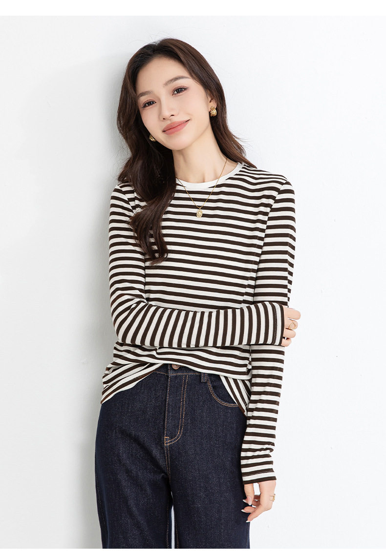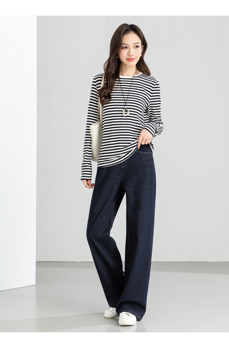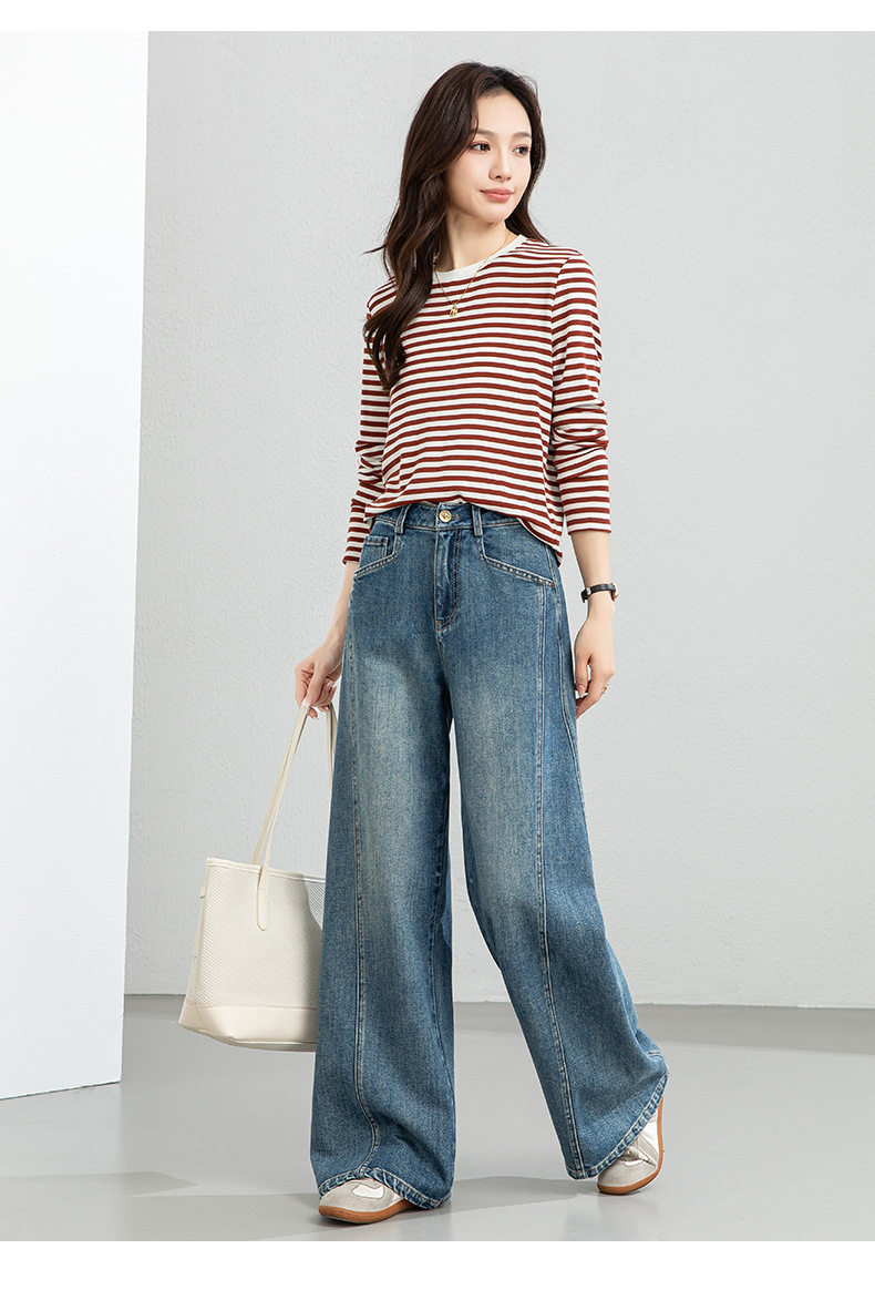 「高货xg」全新升级【铂金会员165/天猫219/差价54】(20609)洛诗琳天丝羊毛条纹T恤2026新款肌理感圆领宽松显瘦上衣