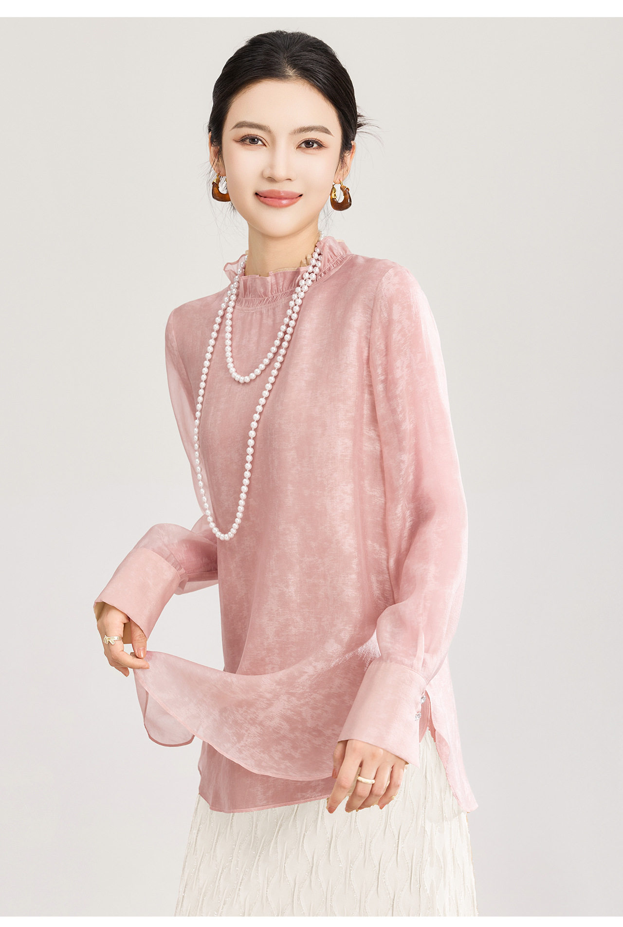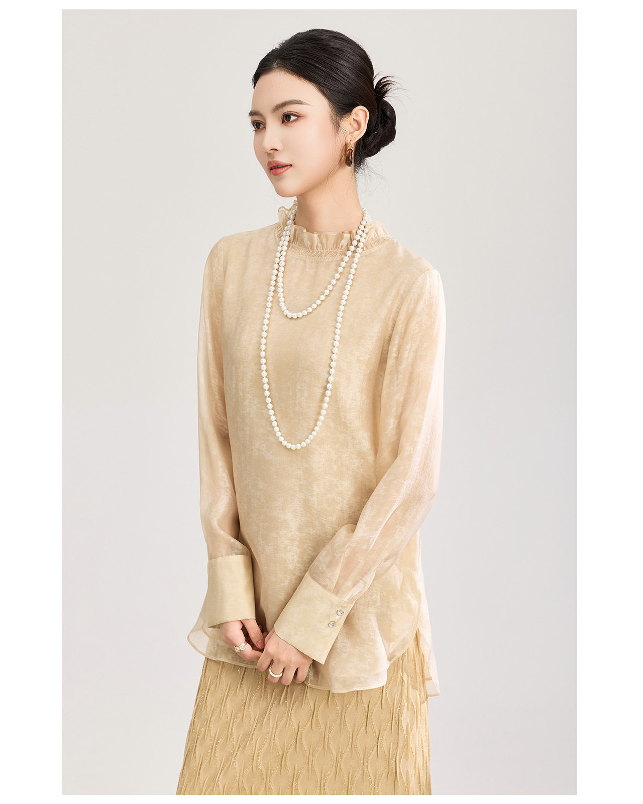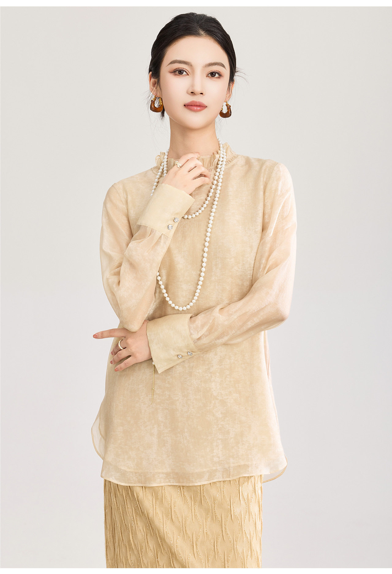 「高货wl」全新升级【铂金会员257/天猫339/差价82】(12000)洛诗琳新中式人丝衬衫2026春夏新款晕染印花立领国风上衣