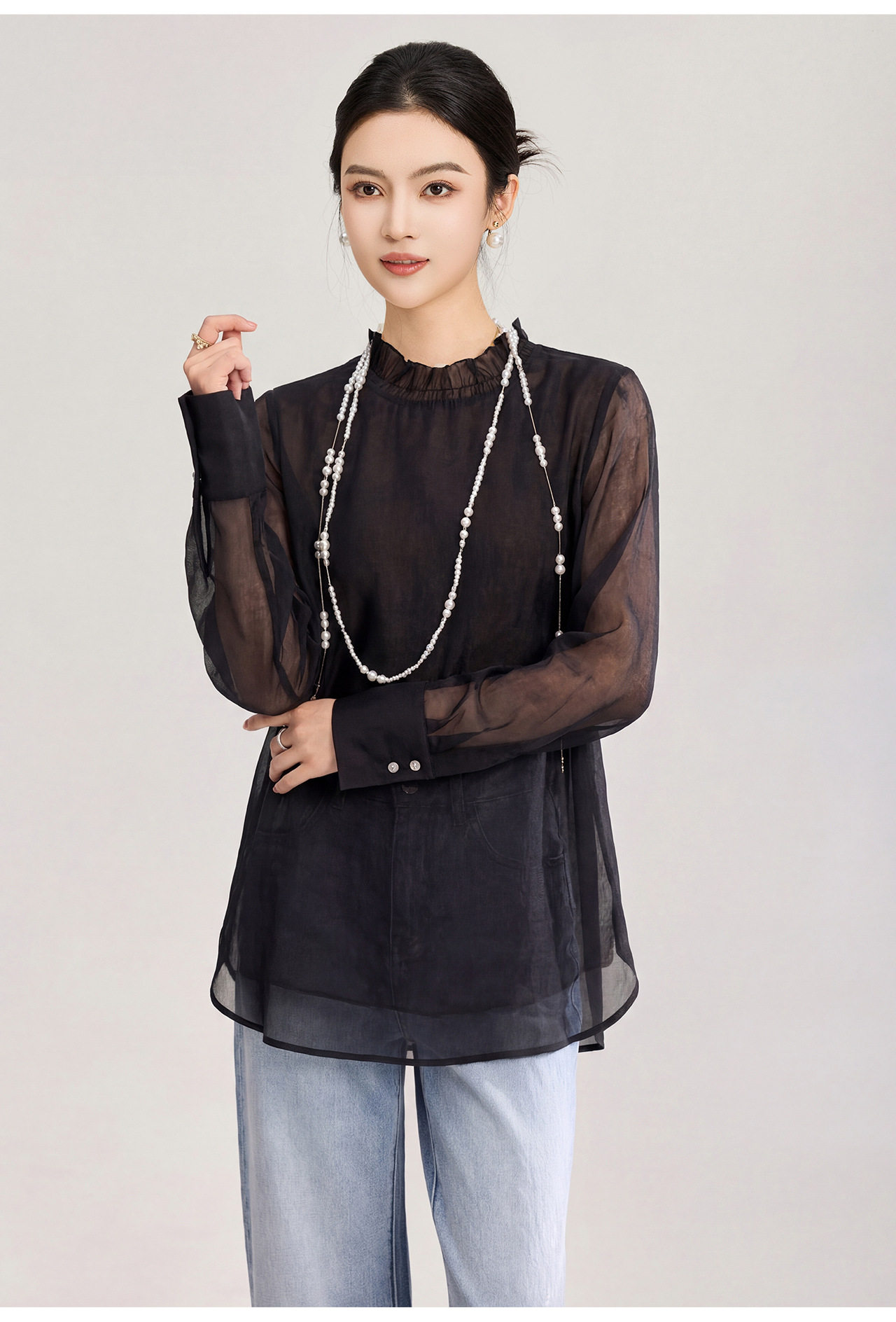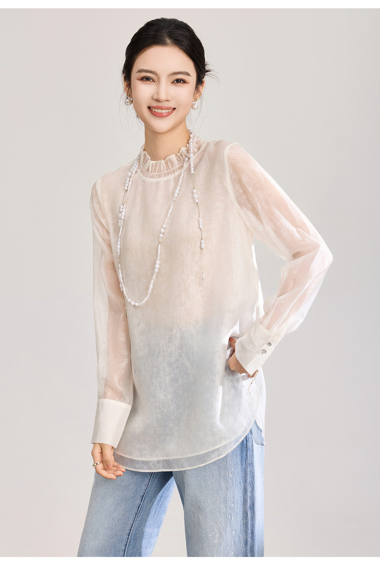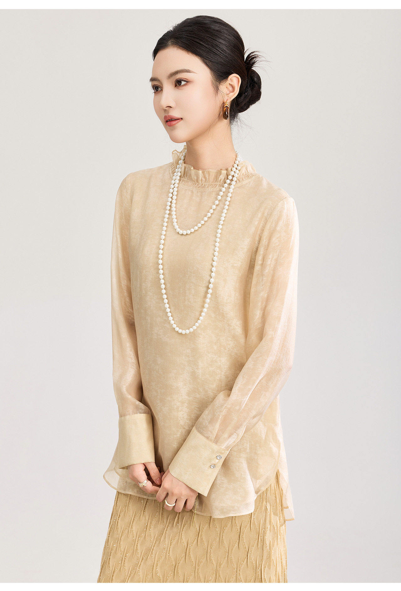 「高货wl」全新升级【铂金会员257/天猫339/差价82】(12000)洛诗琳新中式人丝衬衫2026春夏新款晕染印花立领国风上衣