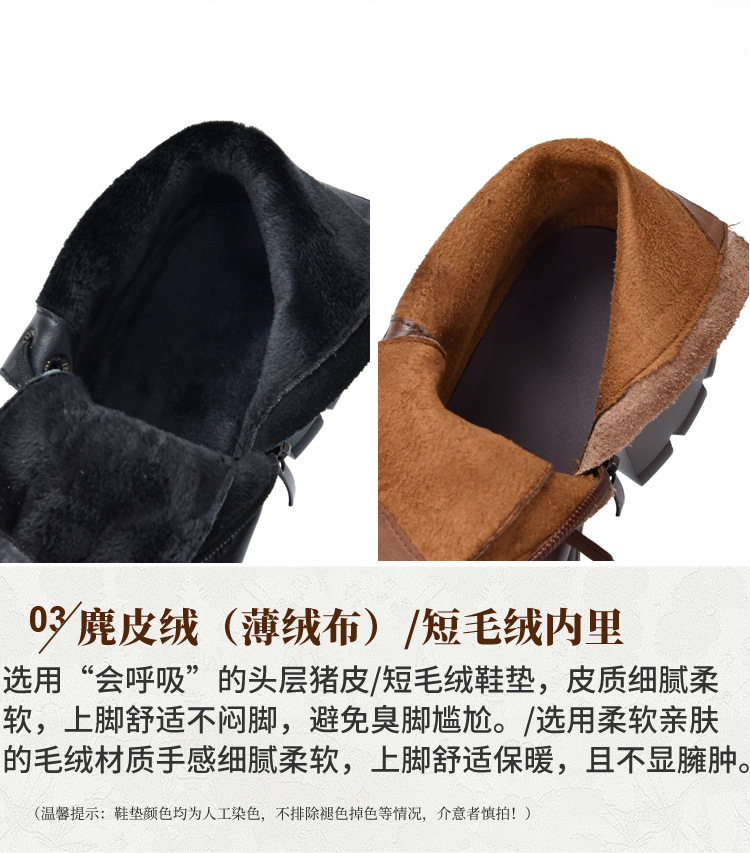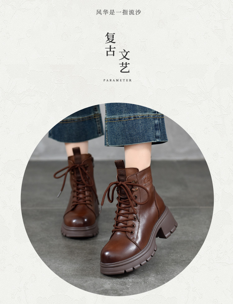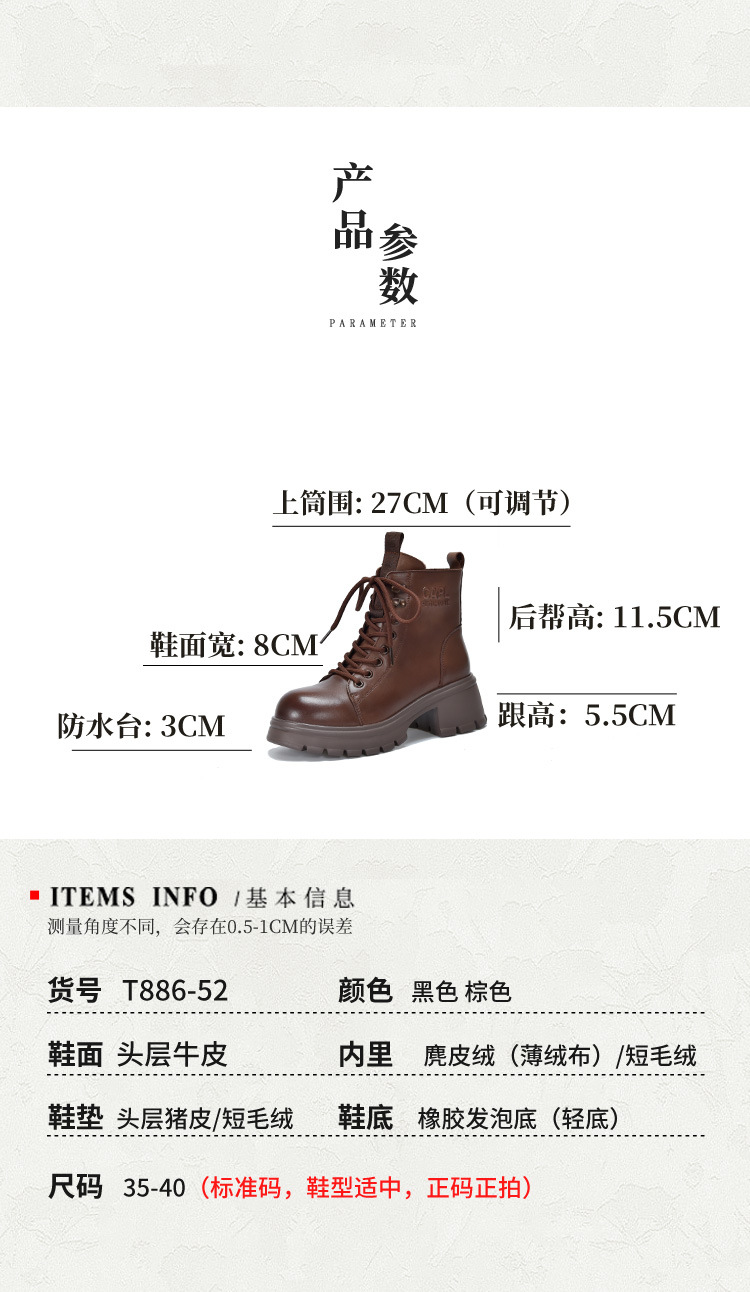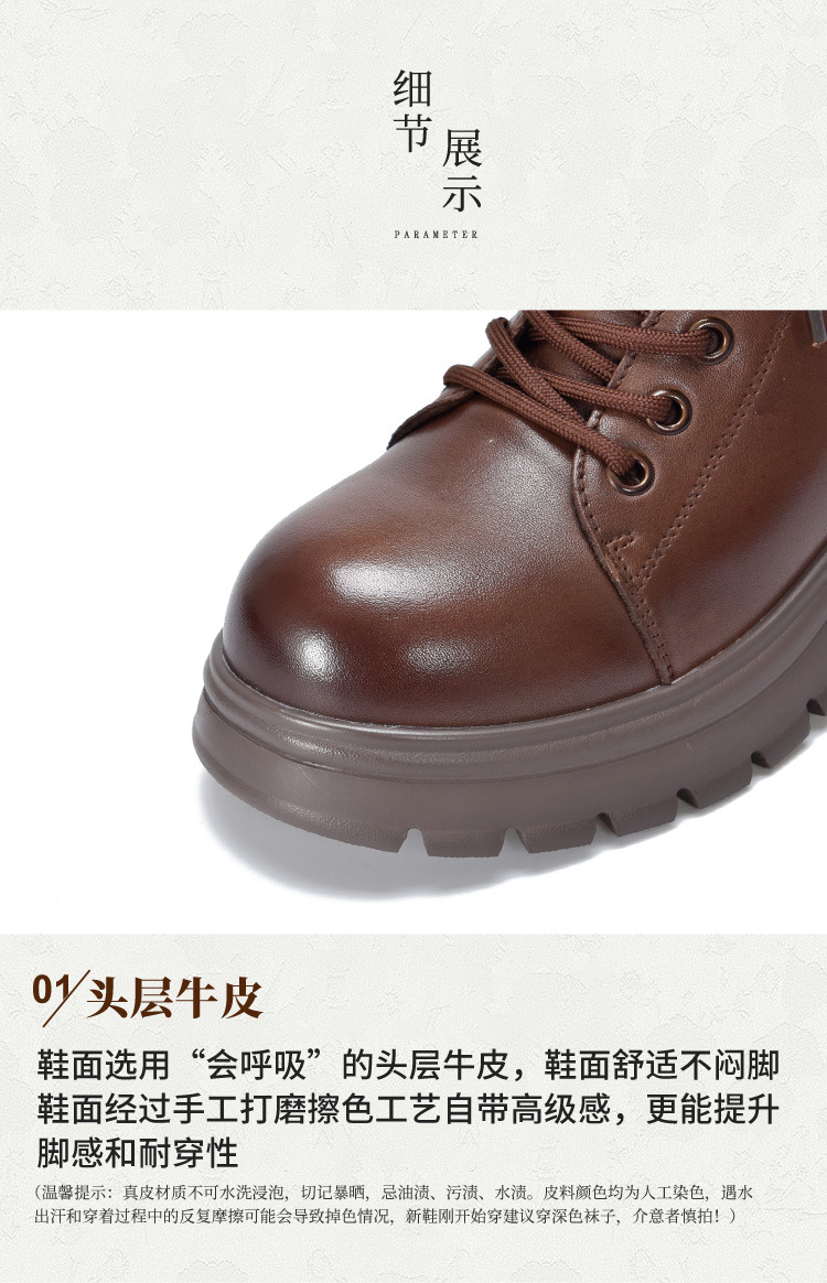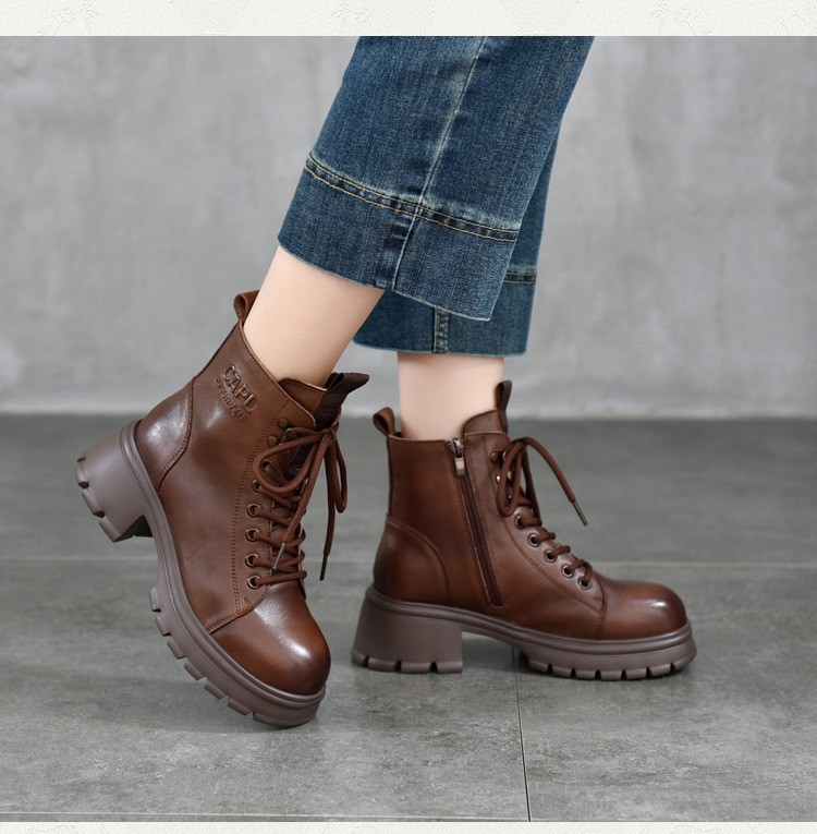 T886-52头层牛皮厚底系带马丁靴侧拉链短靴秋冬新款真皮单靴加绒女棉靴子