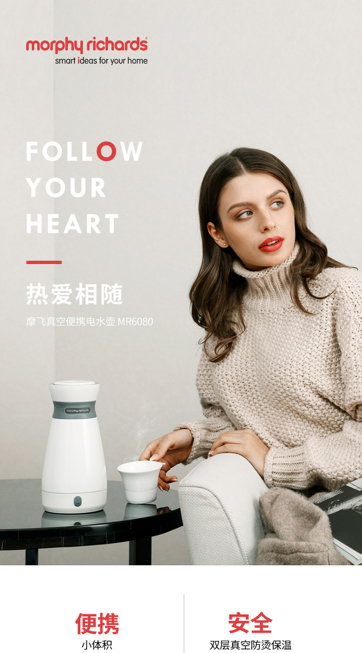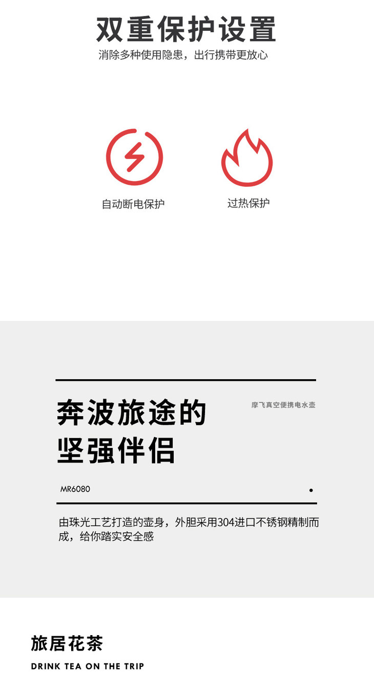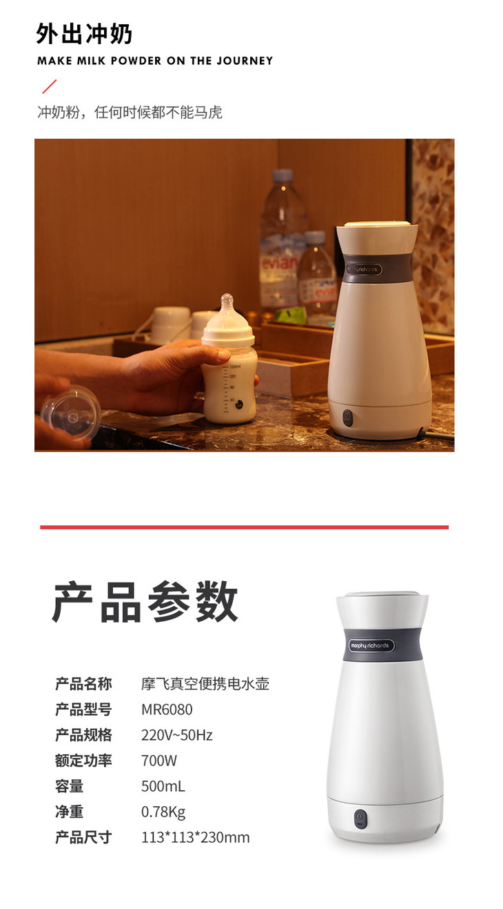 【摩飞】电热水壶【便携式电热水壶 0.4升】MR6090 家用烧水壶 便携出差小型家用一体烧水杯保温水壶