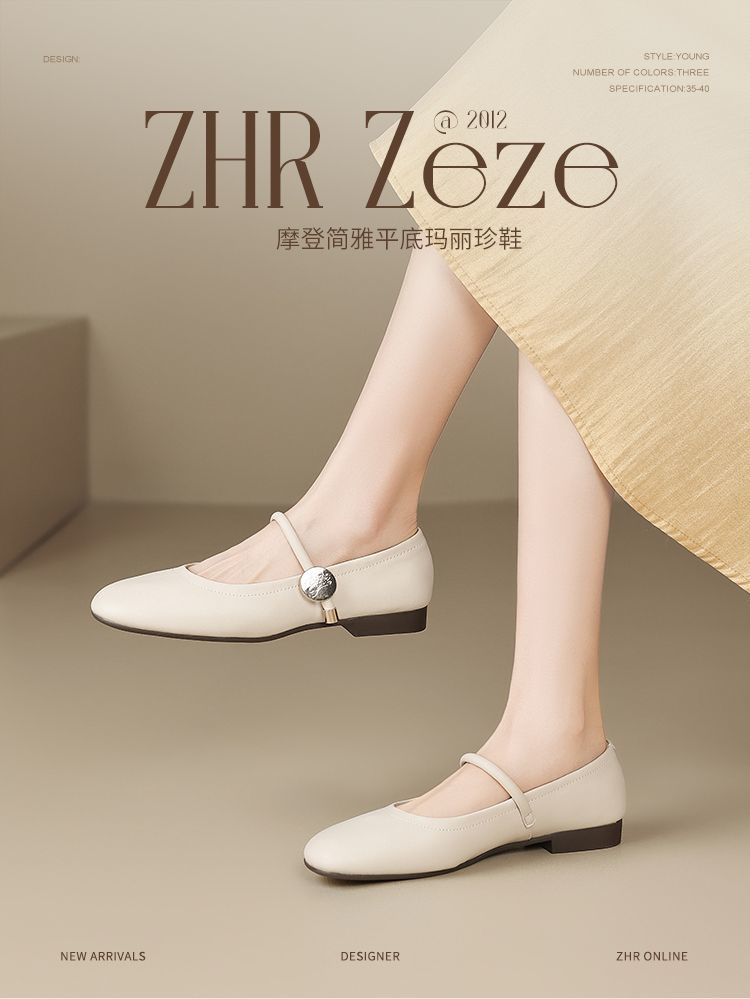 ZHR则则巴恩风平底玛丽珍鞋女2025新款软底豆豆鞋不累脚超软单鞋