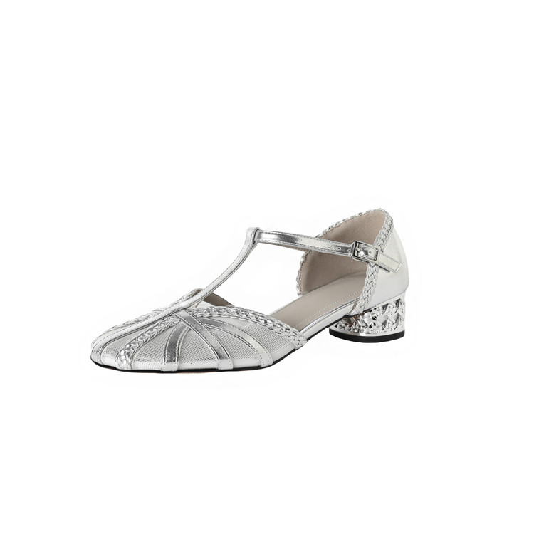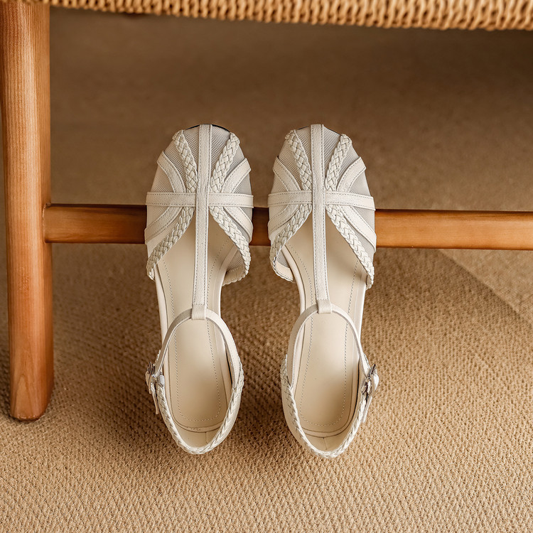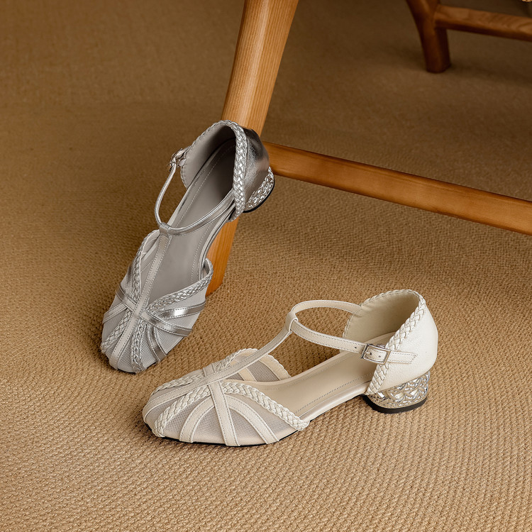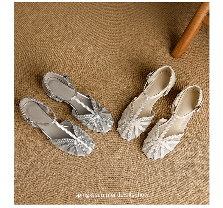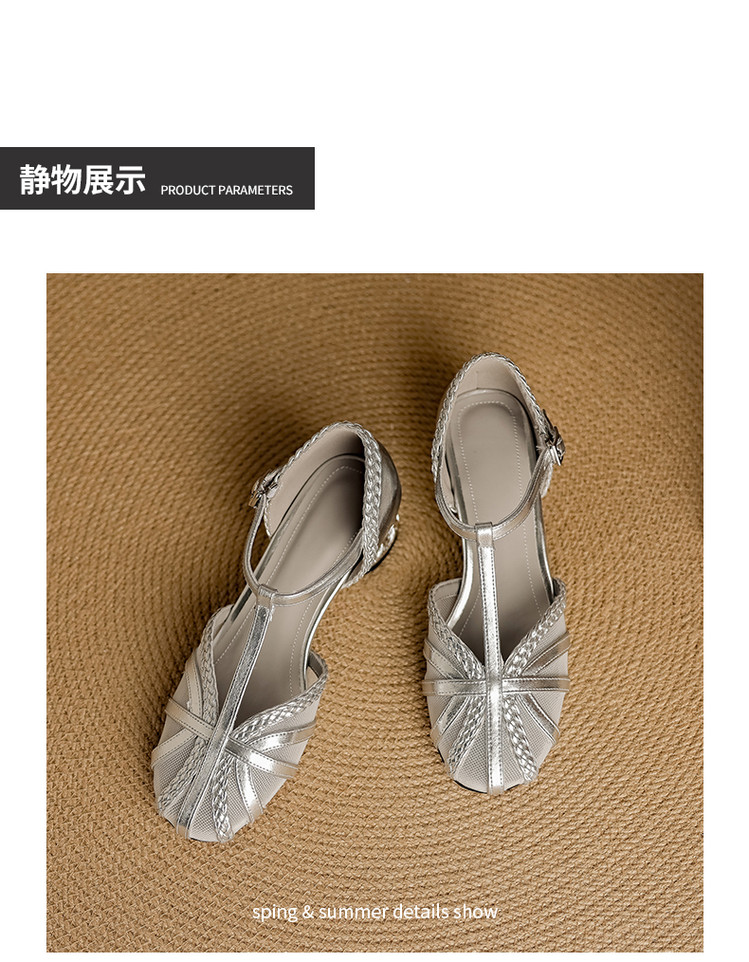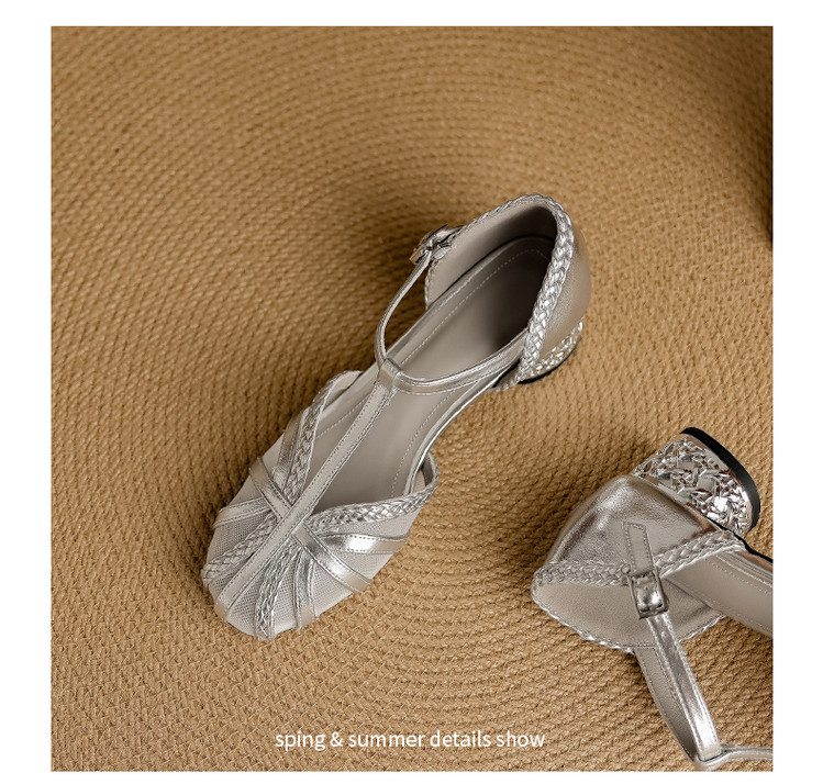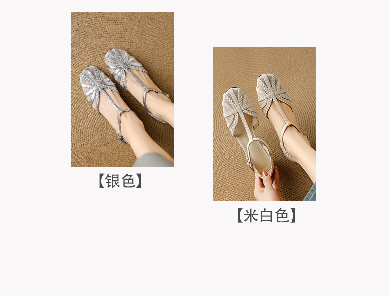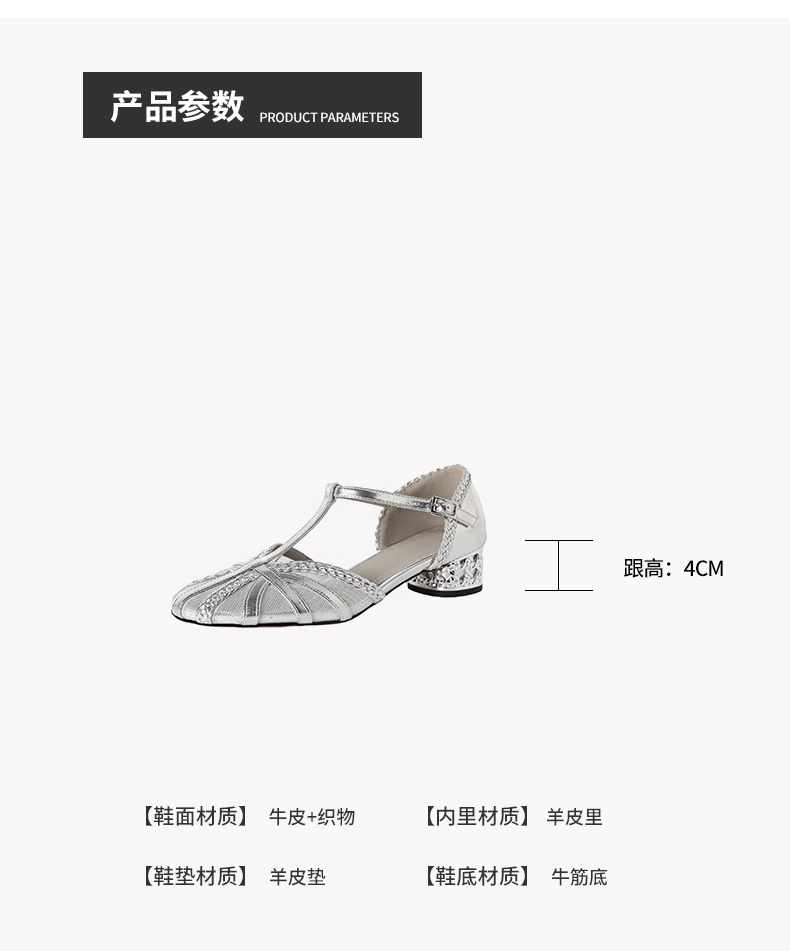 【货号】K1615【面料】牛皮+织物【内里】羊皮【垫脚】羊皮垫【鞋底】牛筋底【跟高】4.0CM【颜色】米白色 银色【尺码】34-40(大小定制不退换)