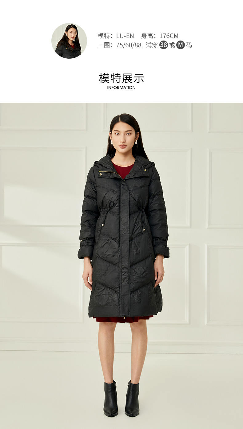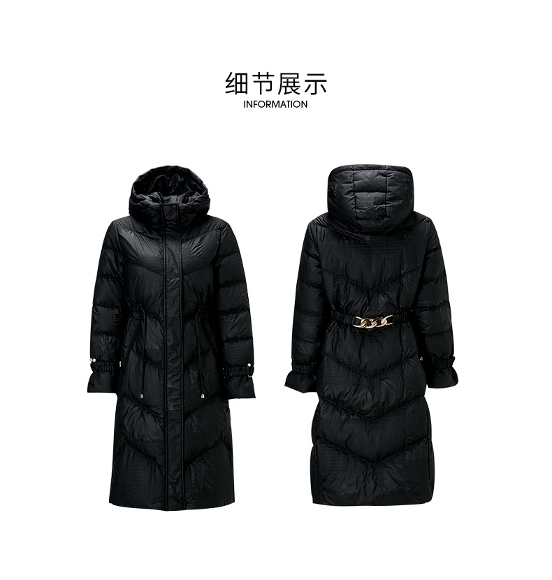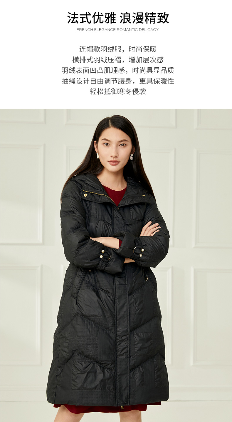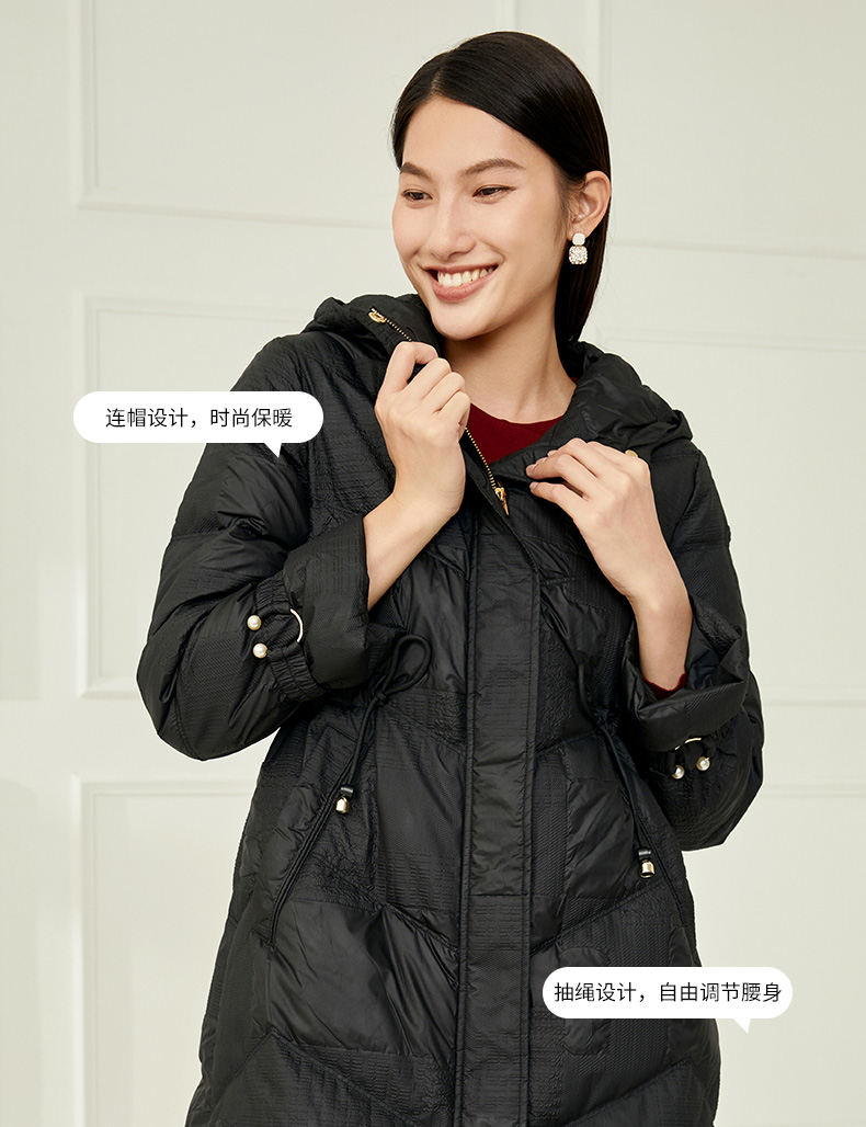 EITIE爱特爱冬季新款通勤百搭宽松舒适显瘦收腰中长款连帽羽绒服外套女6811517