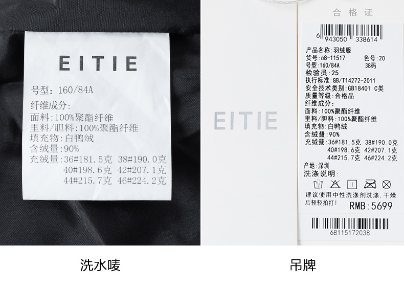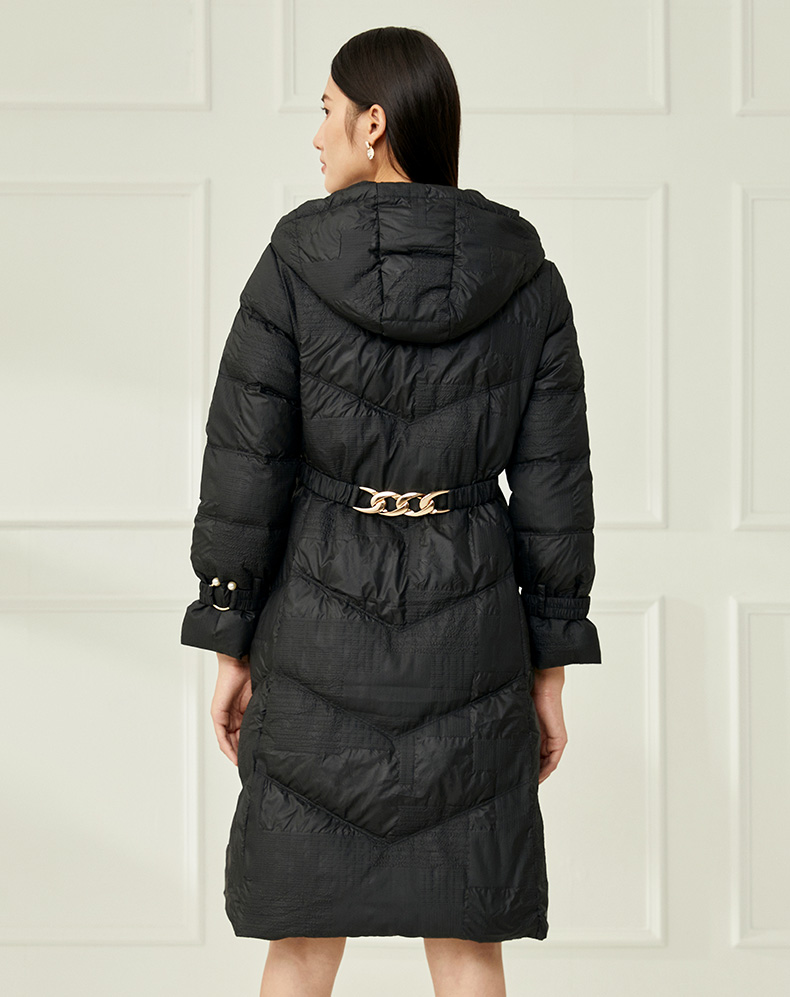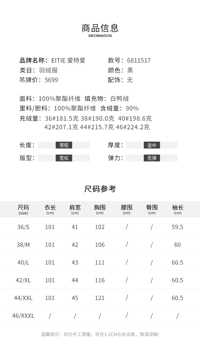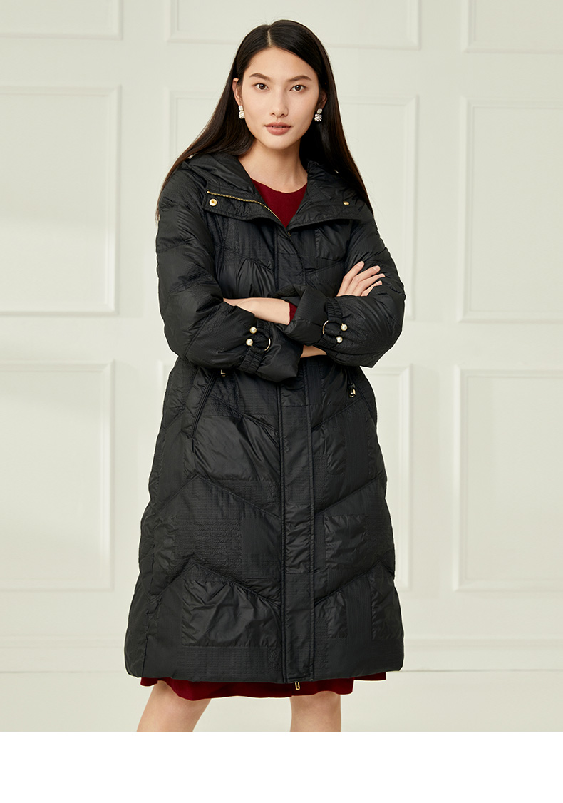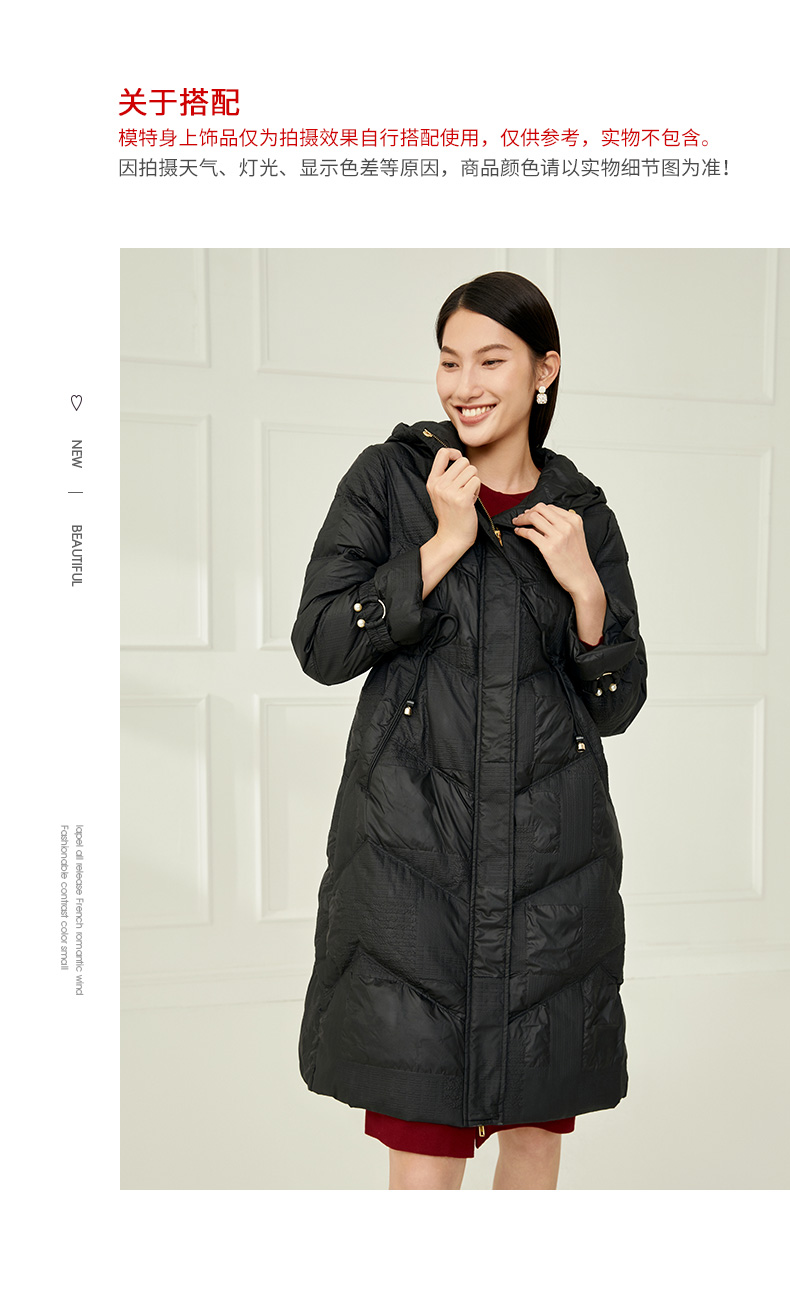 EITIE爱特爱冬季新款通勤百搭宽松舒适显瘦收腰中长款连帽羽绒服外套女6811517