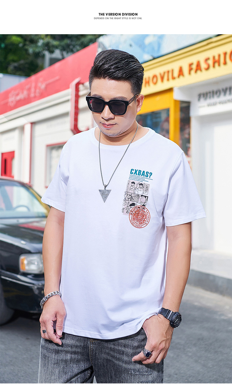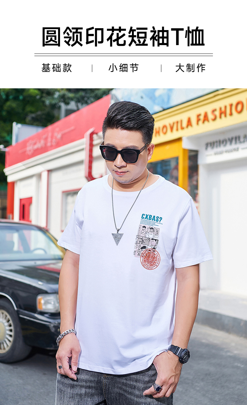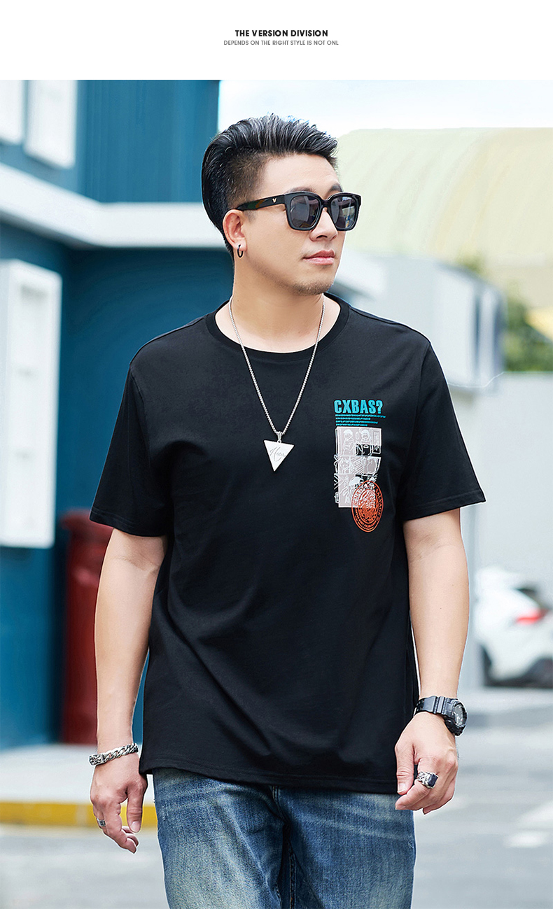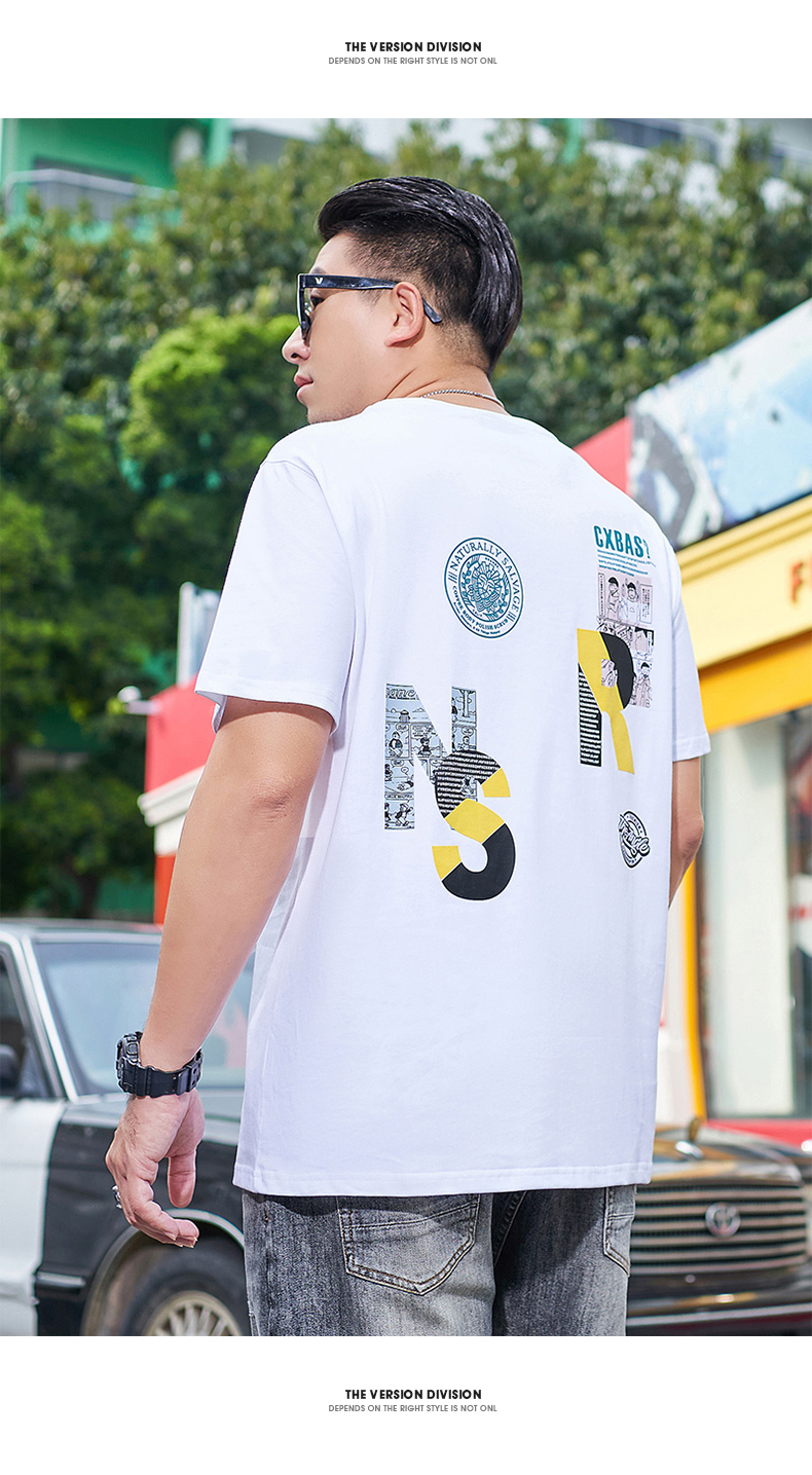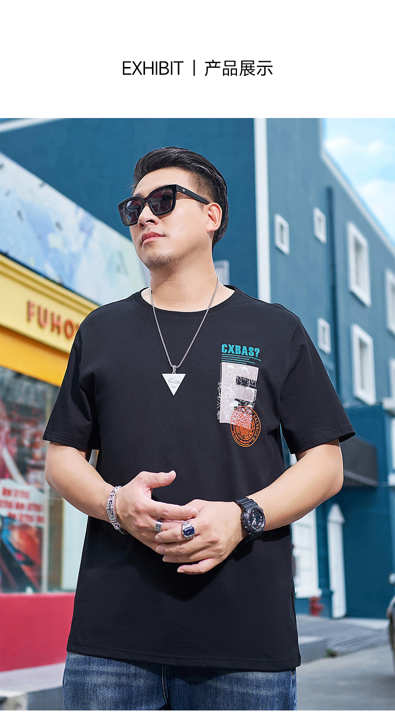 【新款DMH】大码男装国潮前后印花短袖T恤加肥加大休闲潮款肥佬男上衣夏季