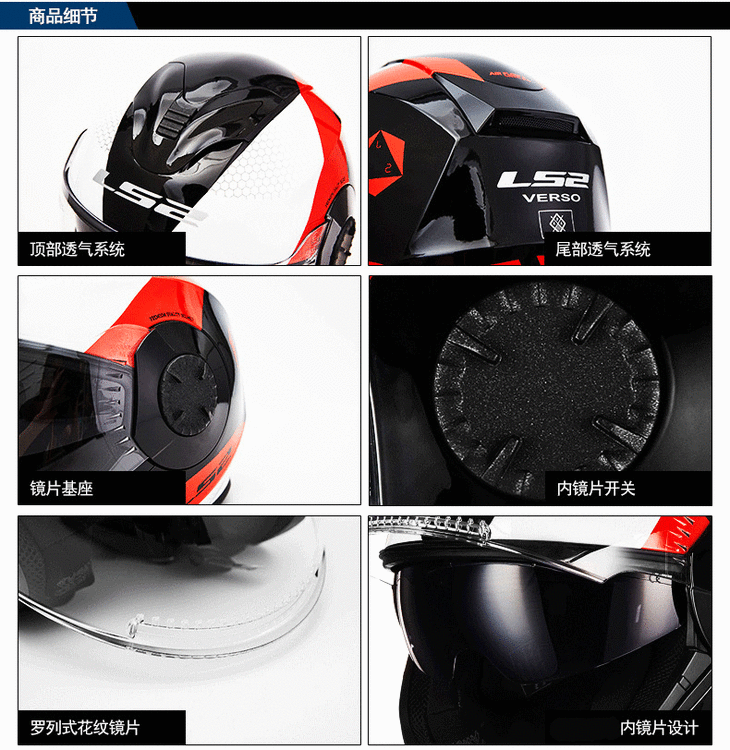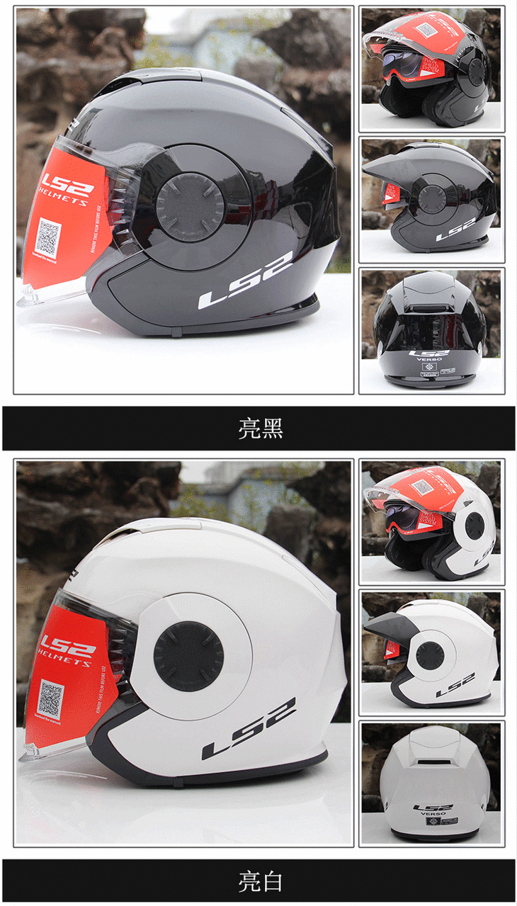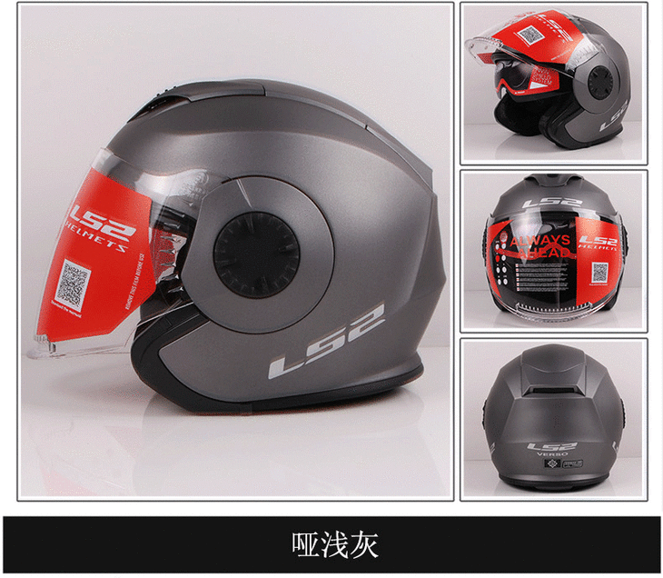 LS2摩托车头盔OF521双镜片半盔四分之三盔男女安全帽玻璃钢四季盔
