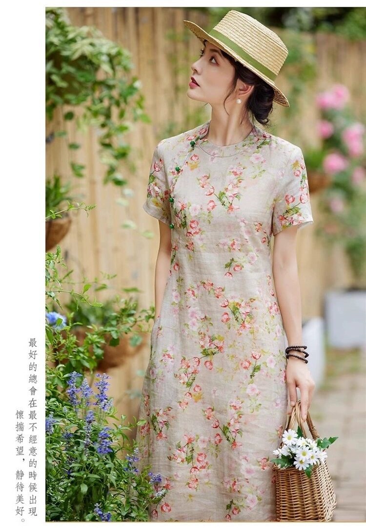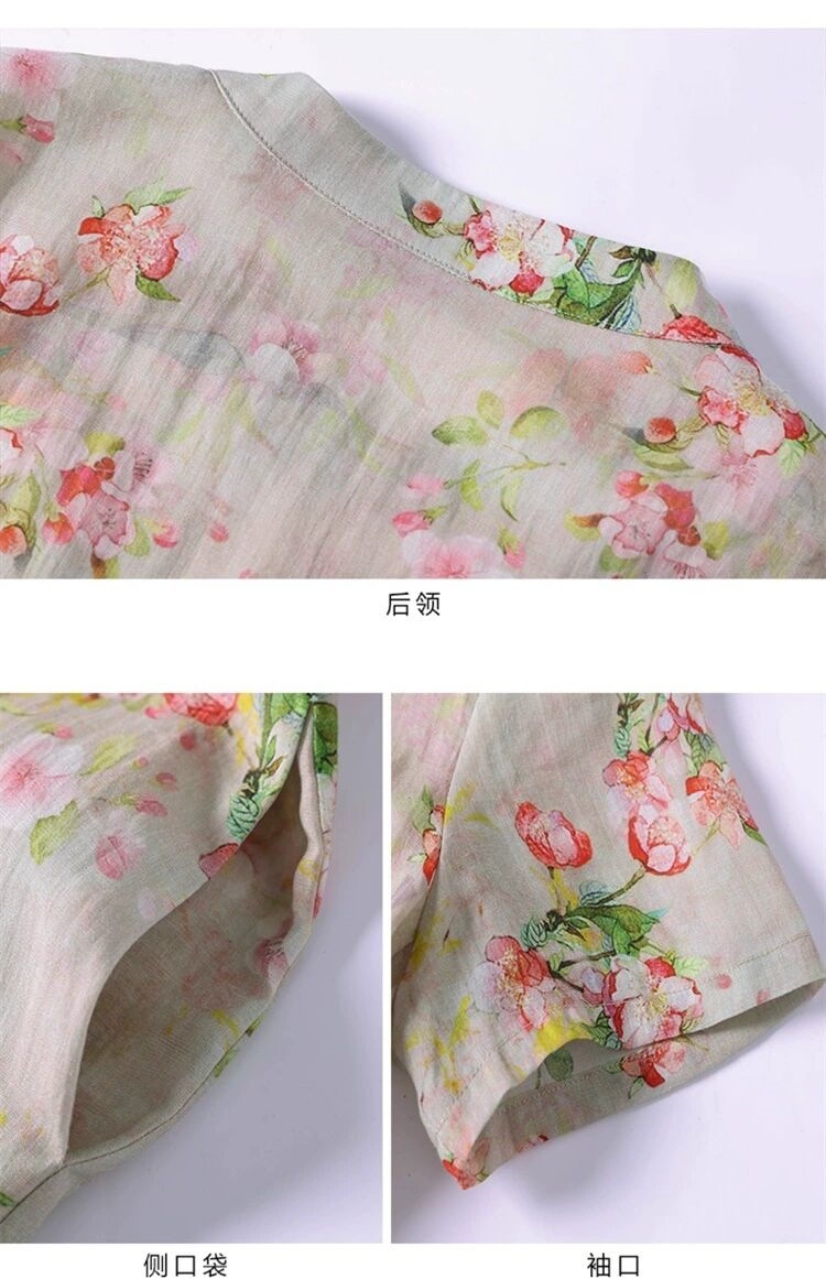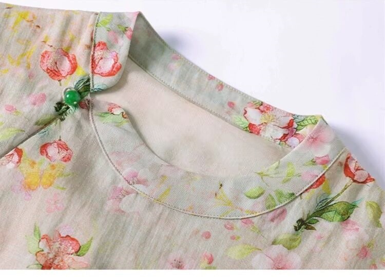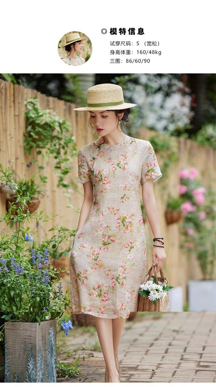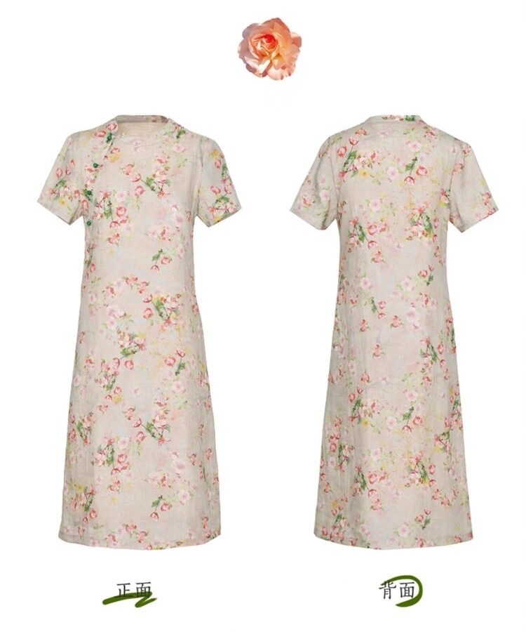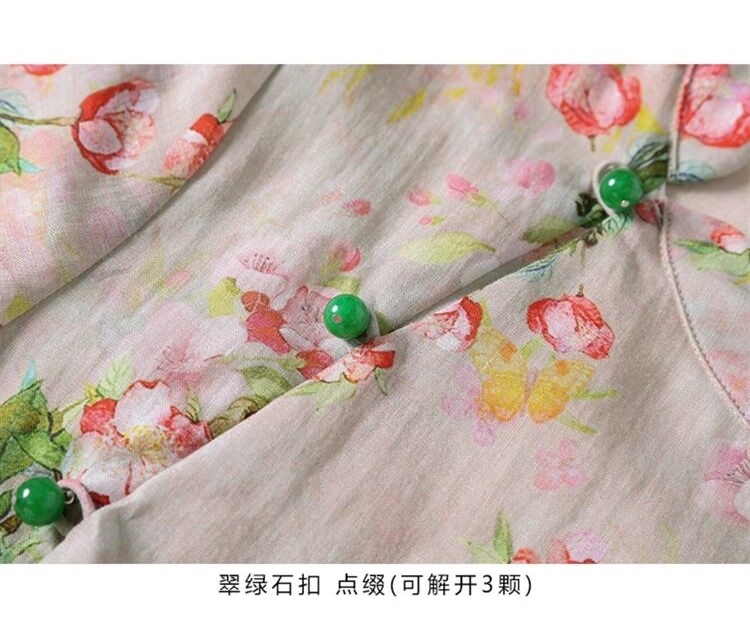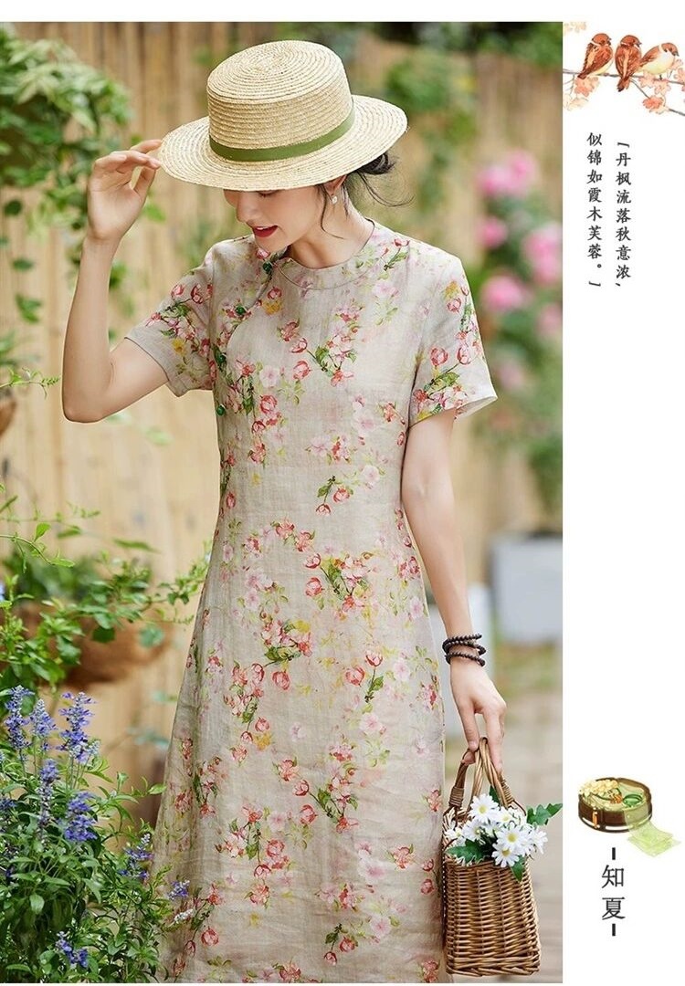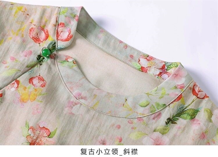 雀说新中式文艺国风宽松大码女装印花斜襟立领改良旗袍连衣裙AL1666