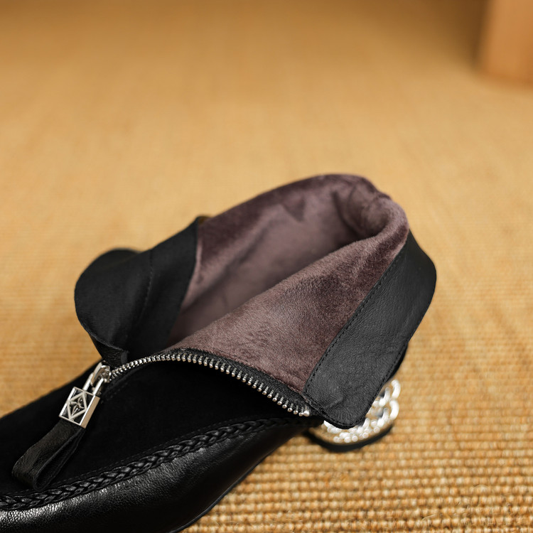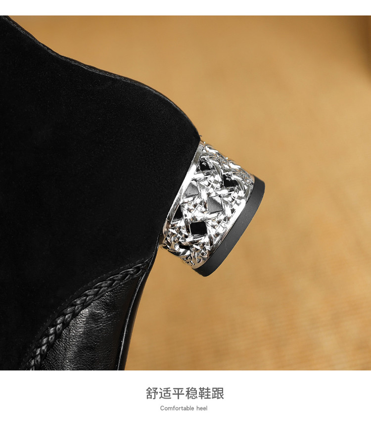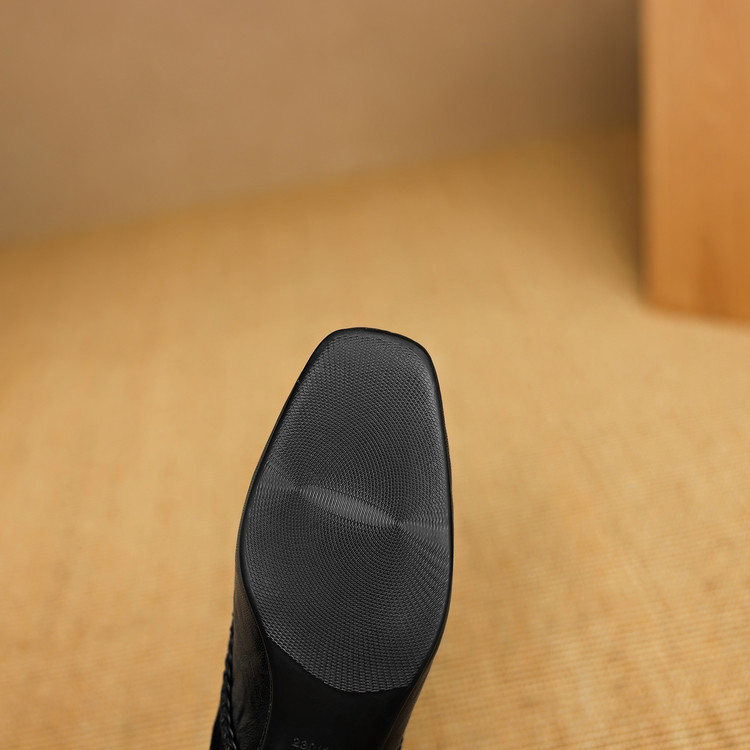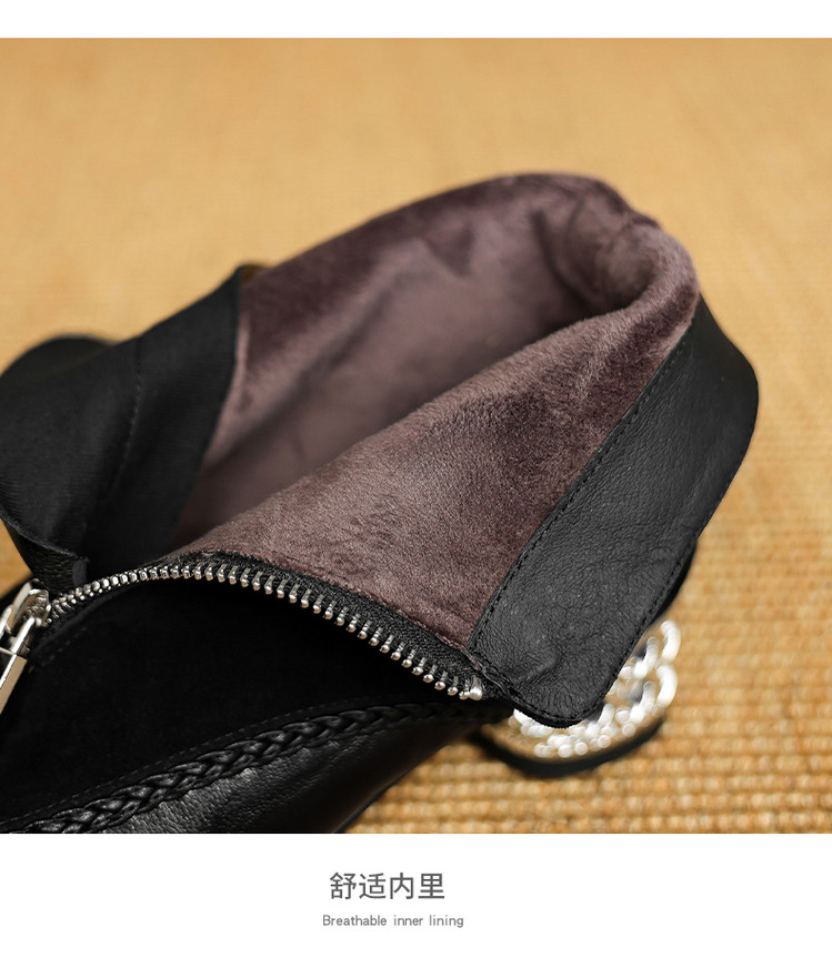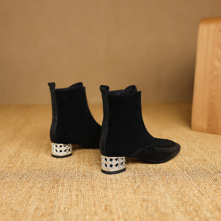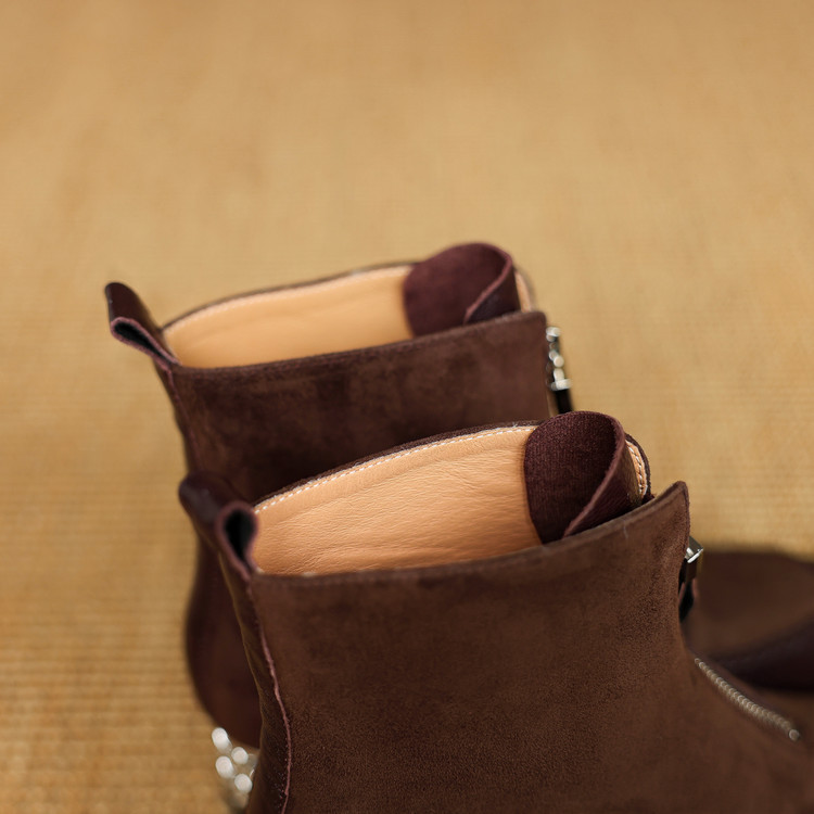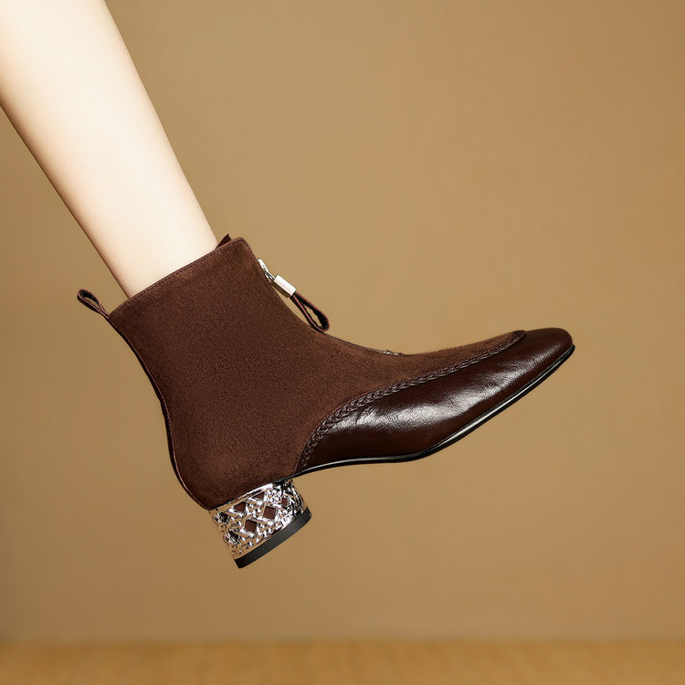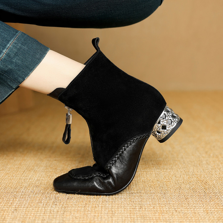 【预售5天】复古方头真皮粗跟短靴女秋冬新款前拉链软底骑士靴百搭单靴中跟靴NJMK&K1763