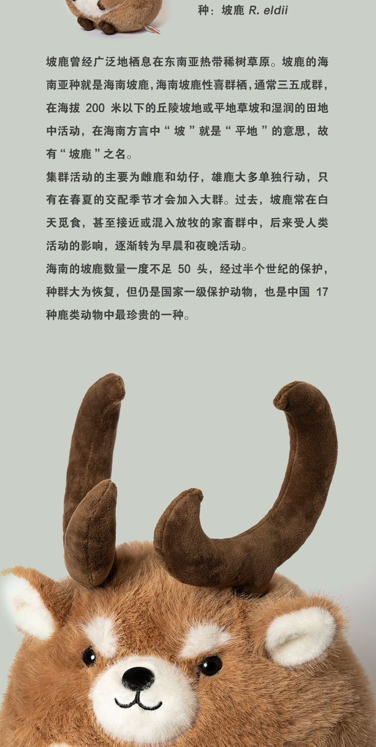 博物文创 圆宝系列海南坡鹿毛绒玩偶节日礼物