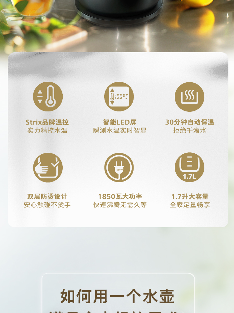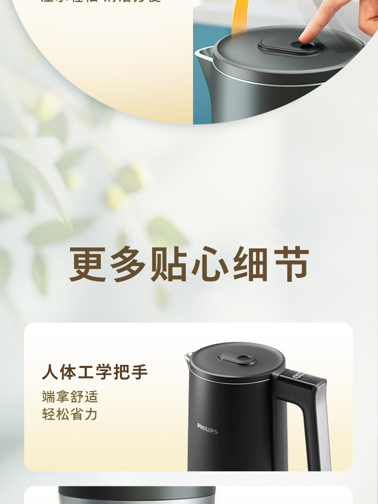 PHILIPS飞利浦家用大功率双层控温不锈钢烧水壶(HD9396)