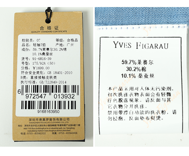 YvesFigarau伊夫·费嘉罗夏季新款休闲舒适透气短袖T恤(尺码偏小,建议拍大一码)916816