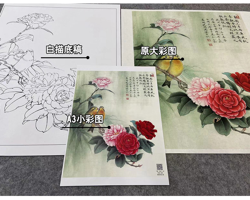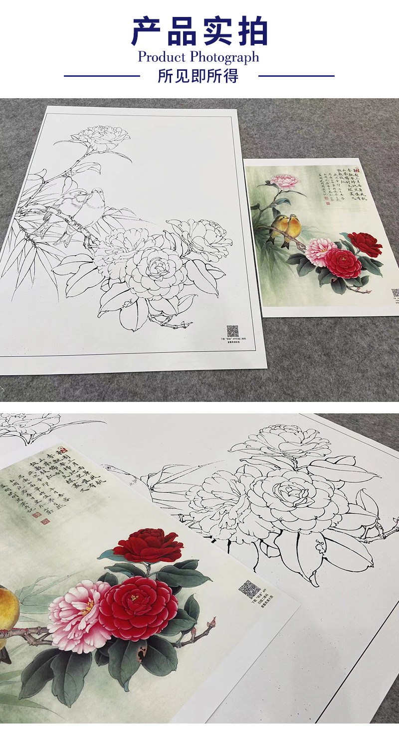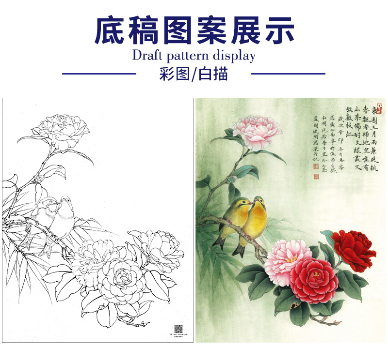 【大彩图】李晓明工笔画白描底稿《南国相思》牡丹临摹勾线花鸟线稿K030