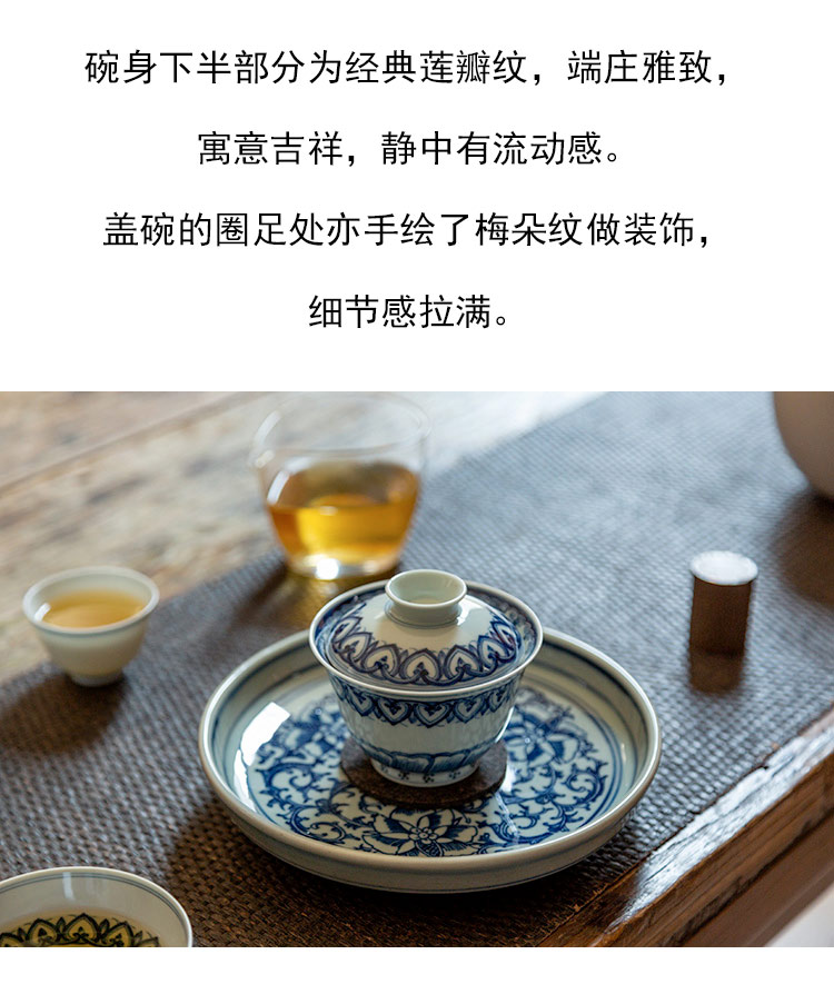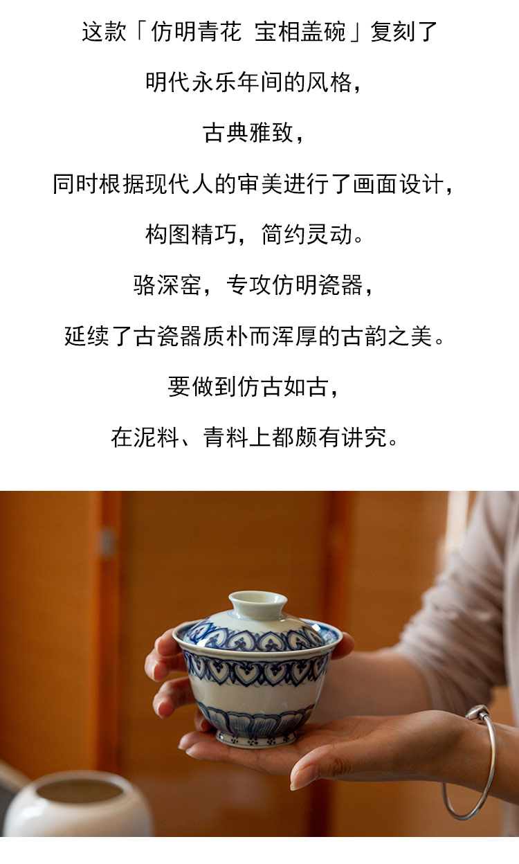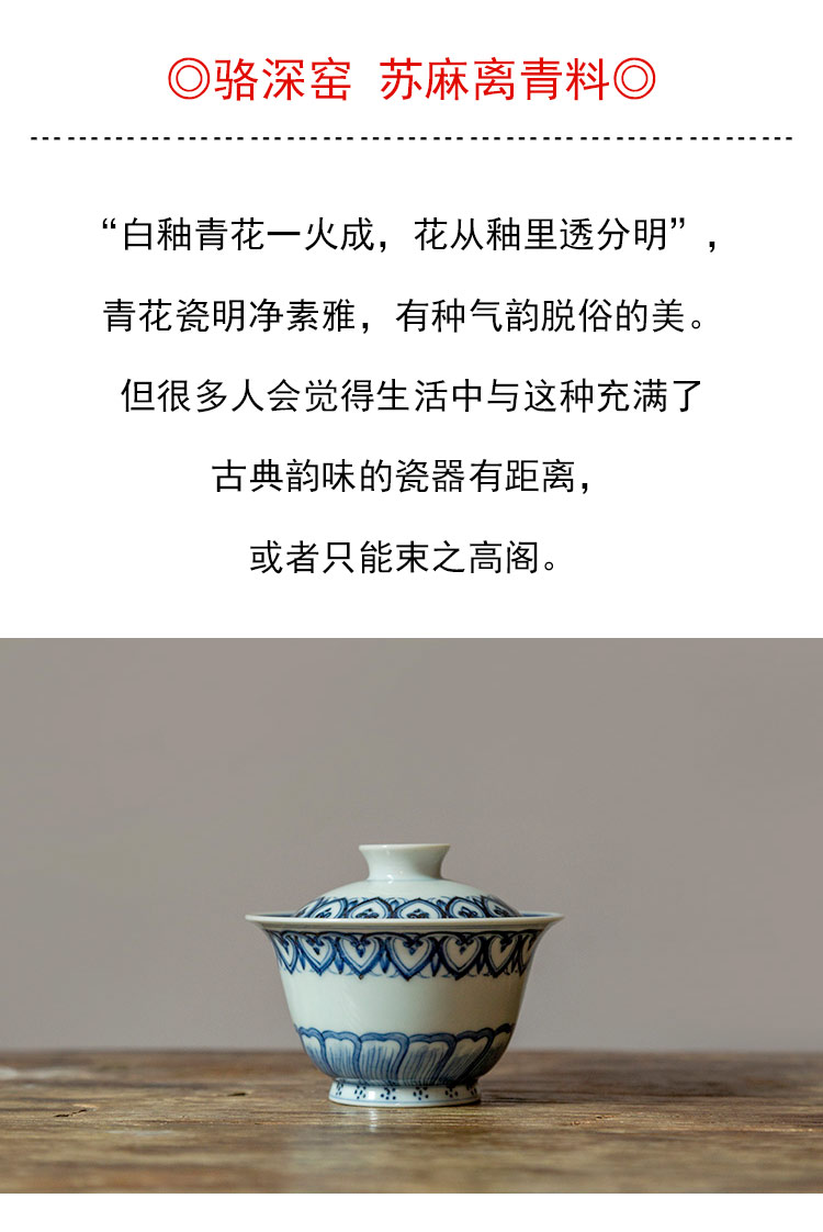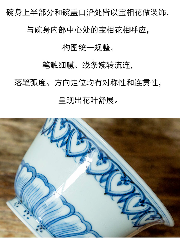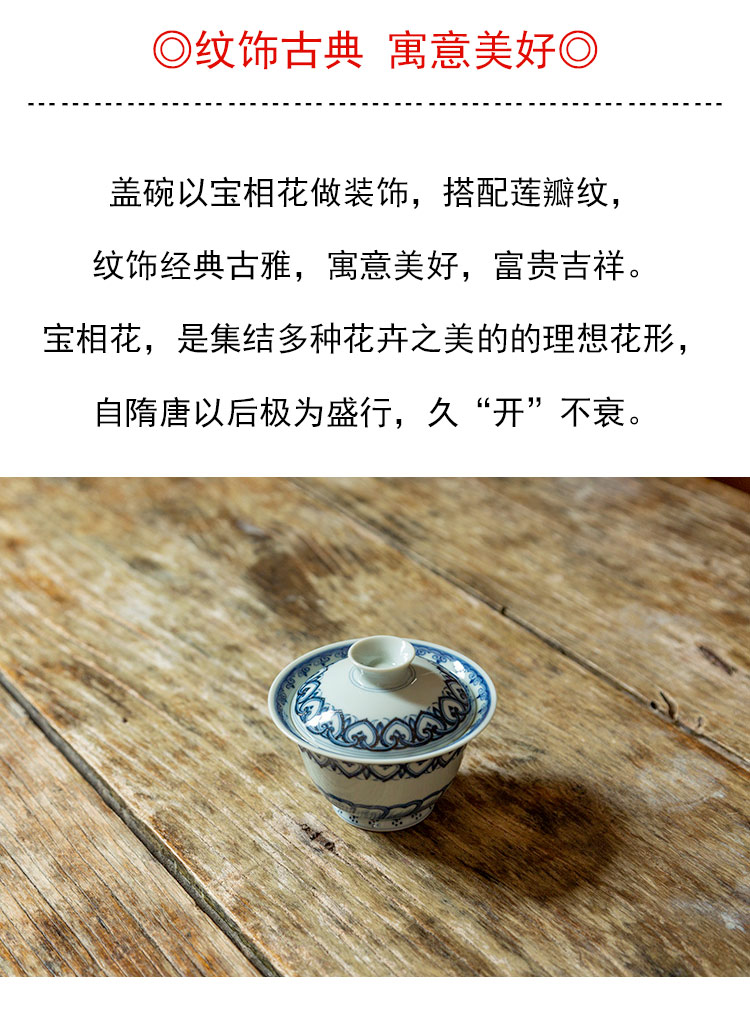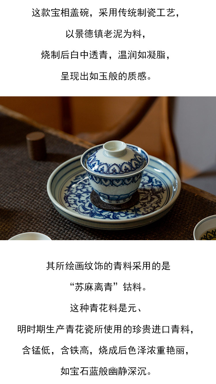 茶香记 仿明青花 宝相盖碗 骆深窑 简约典雅 端庄古朴 赏用皆宜