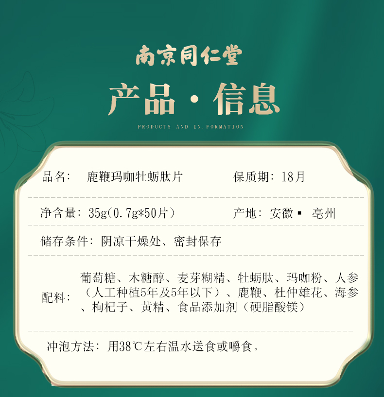 【买2送1】南京同仁堂鹿鞭玛咖牡蛎肽,男性滋补 50片/瓶