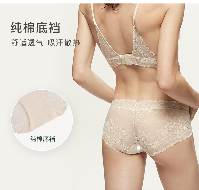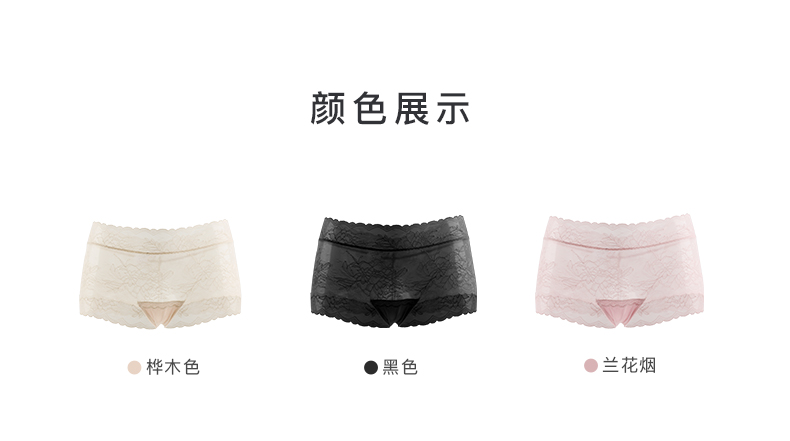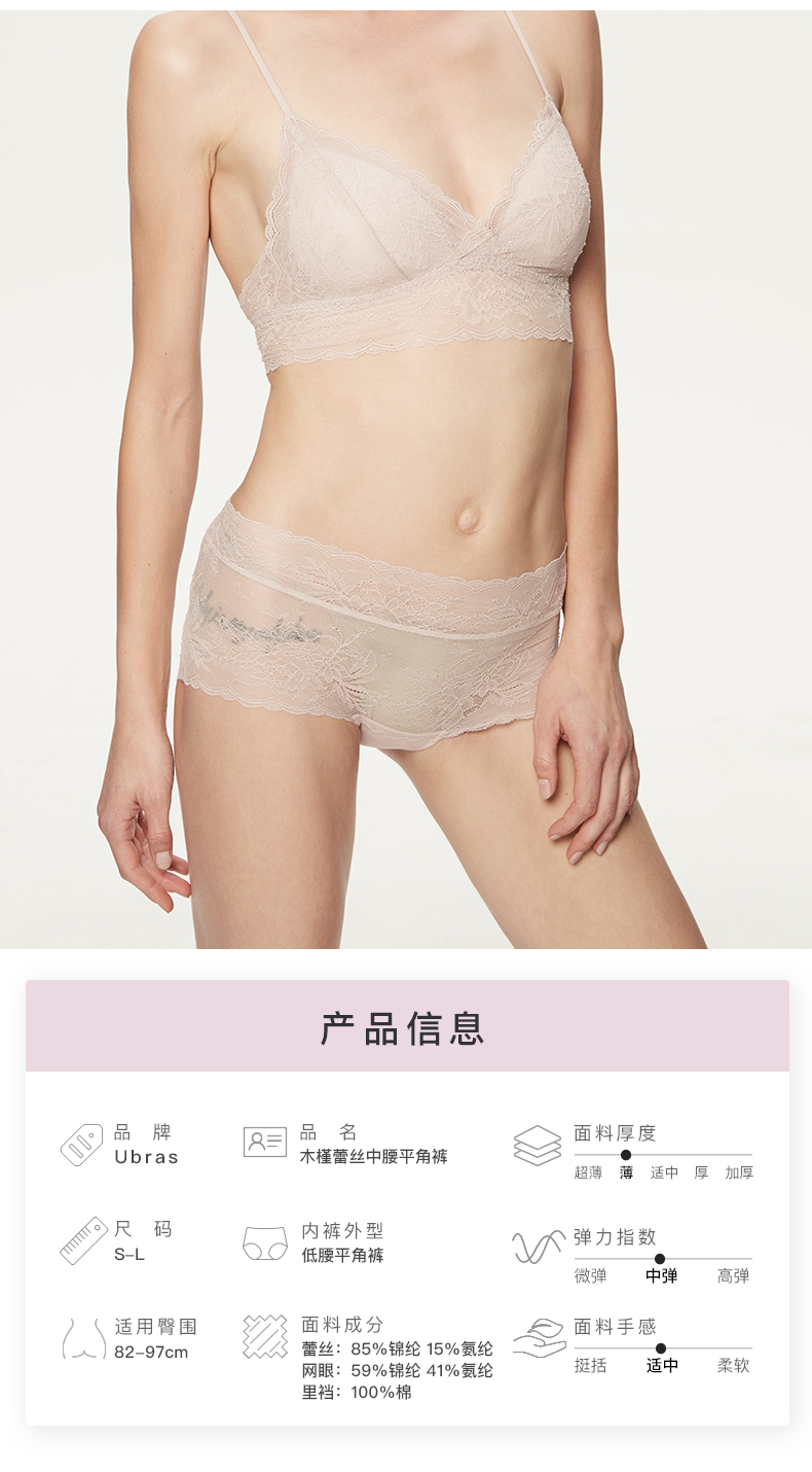 Ubras木槿蕾丝中腰平角裤性感内裤女纯棉底裆舒适透气无痕女短裤