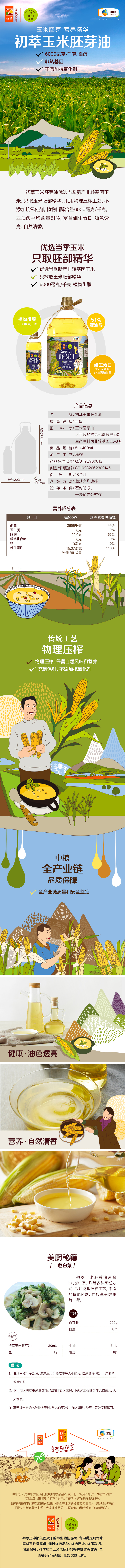 中粮初萃 食用油 一级压榨 非转基因玉米胚芽油4L/5L+400ml/6.18L