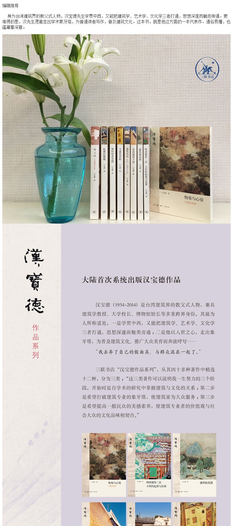 生活•读书•新知三联书店是一家具有悠久历史和光荣传统的出版机构。建店八十余年来,始终秉承“竭诚为读者服务”的宗旨,坚持“一流、新锐”的标准,被誉为“中国知识分子的精神家园”。