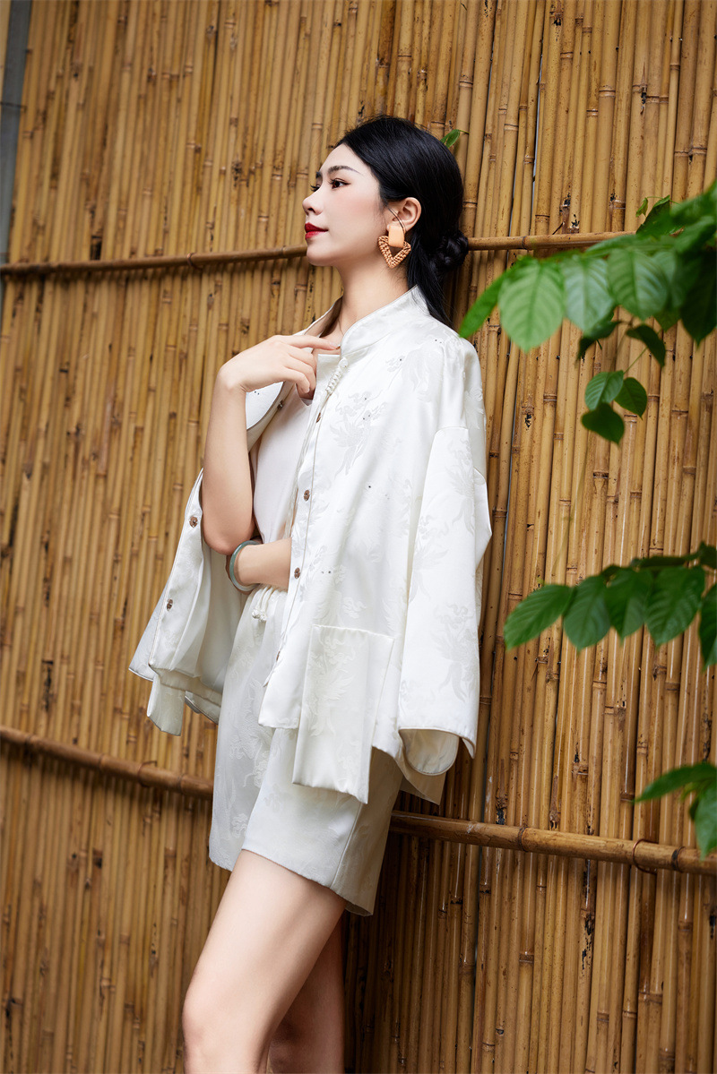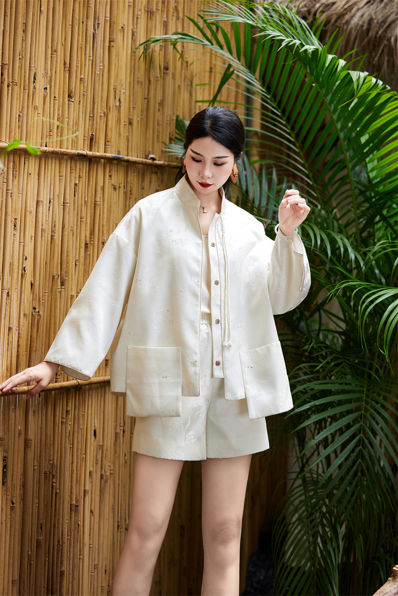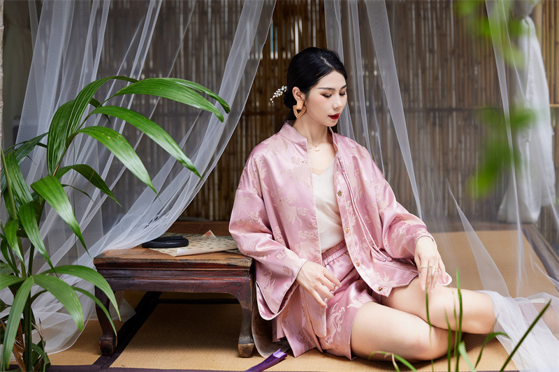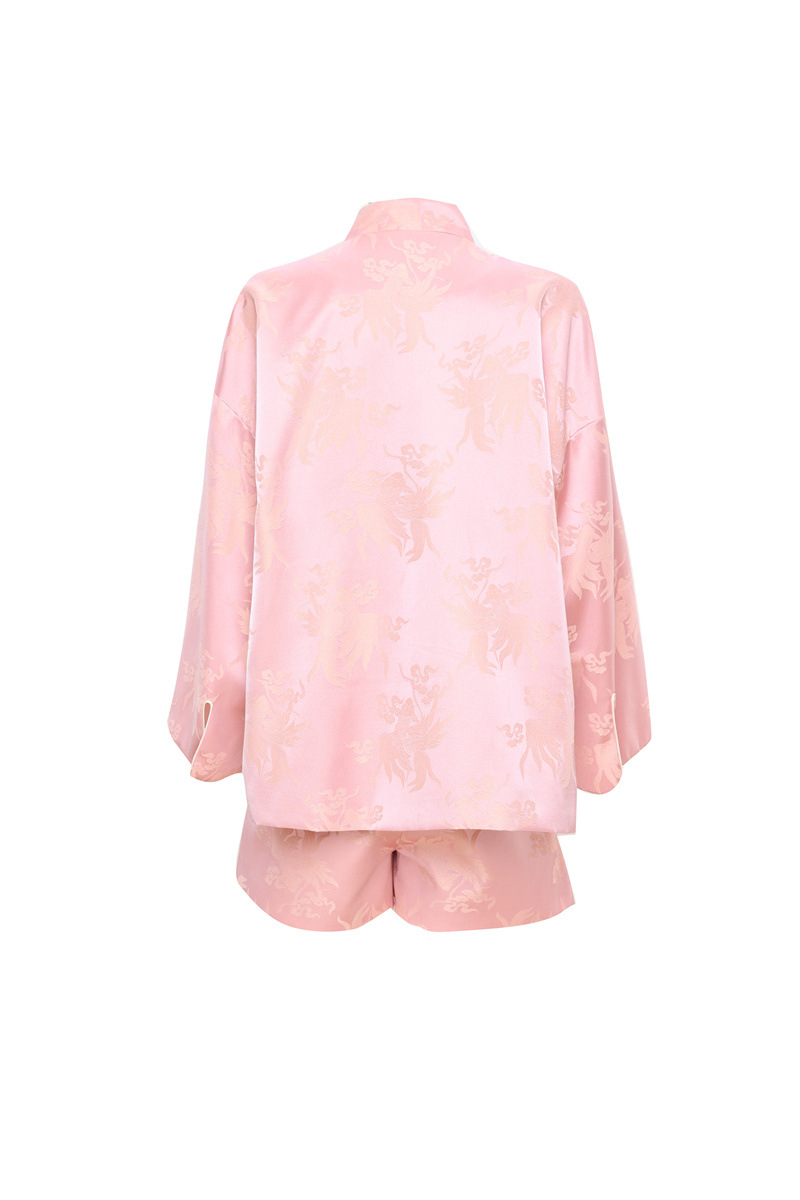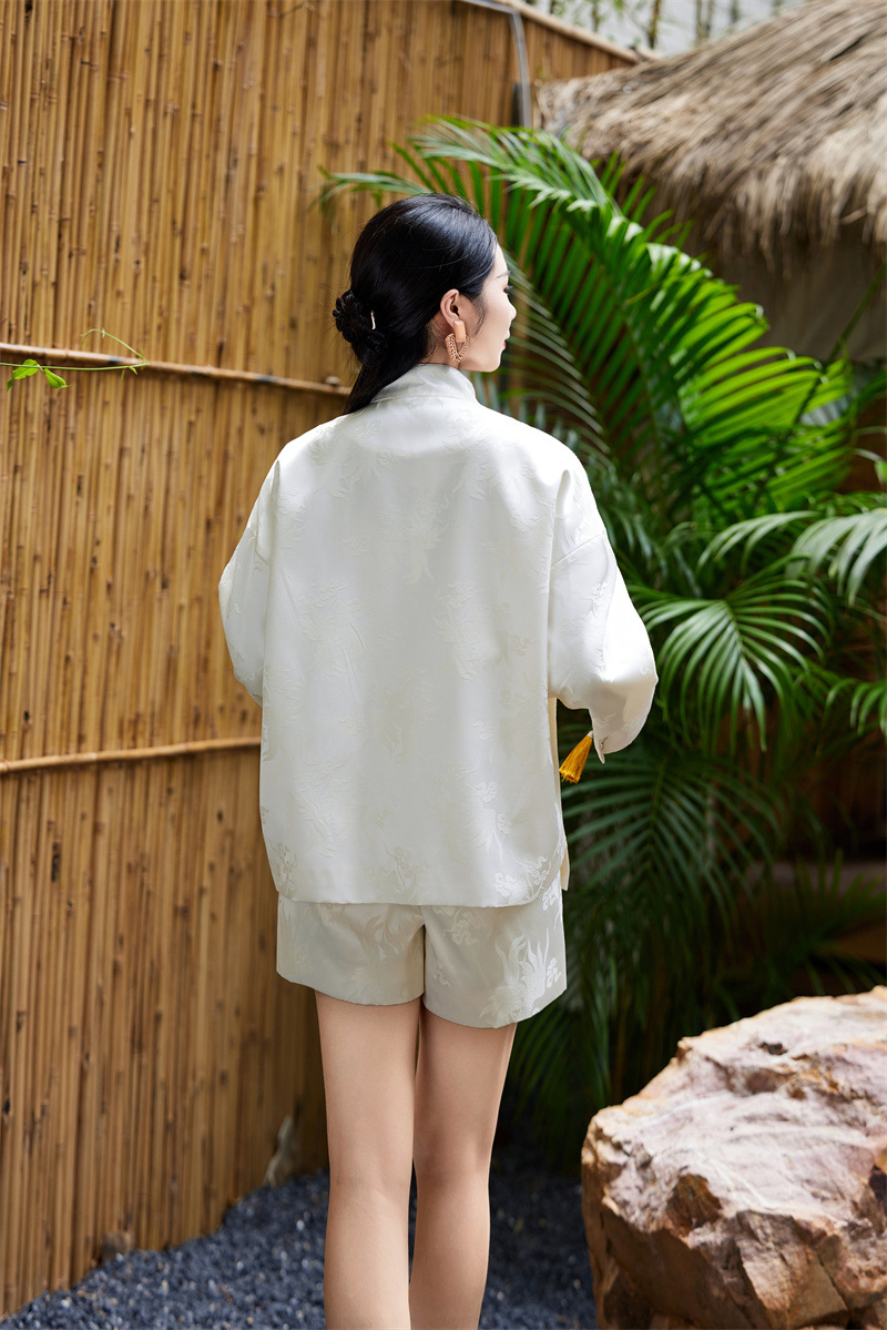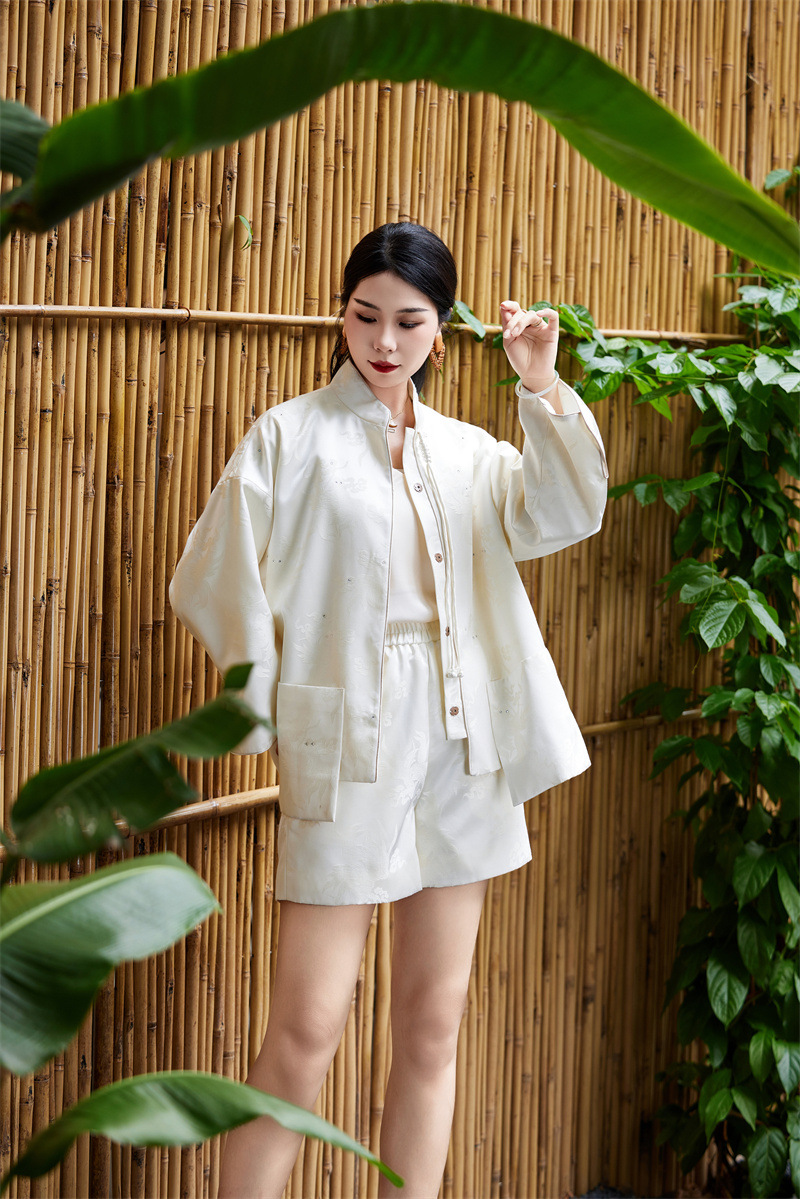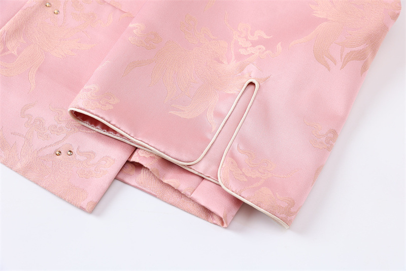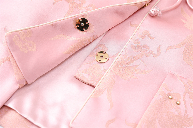 FLZD-A9433粉色小香风提花套装女秋季巨显瘦气质感小个子休闲短裤两件套