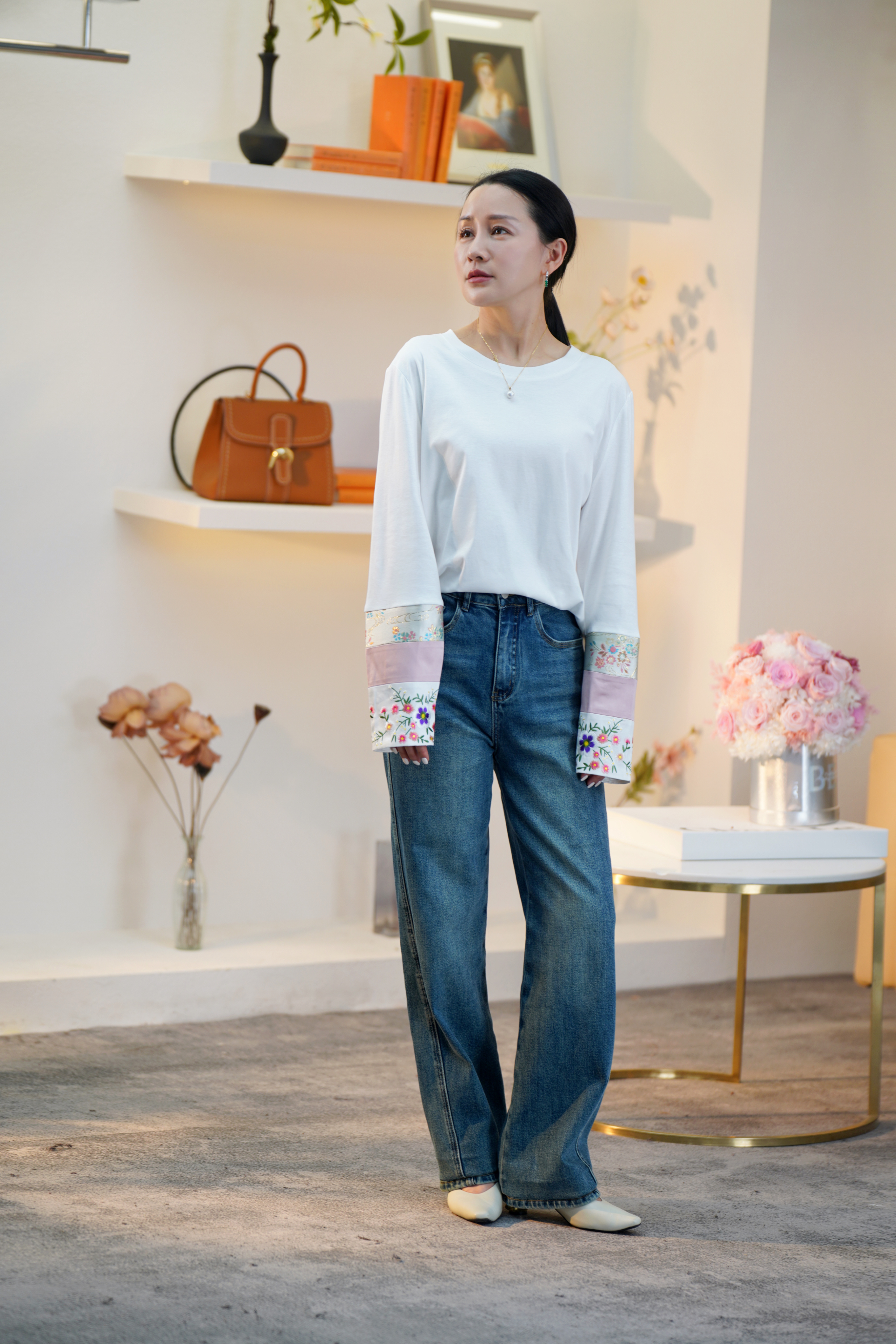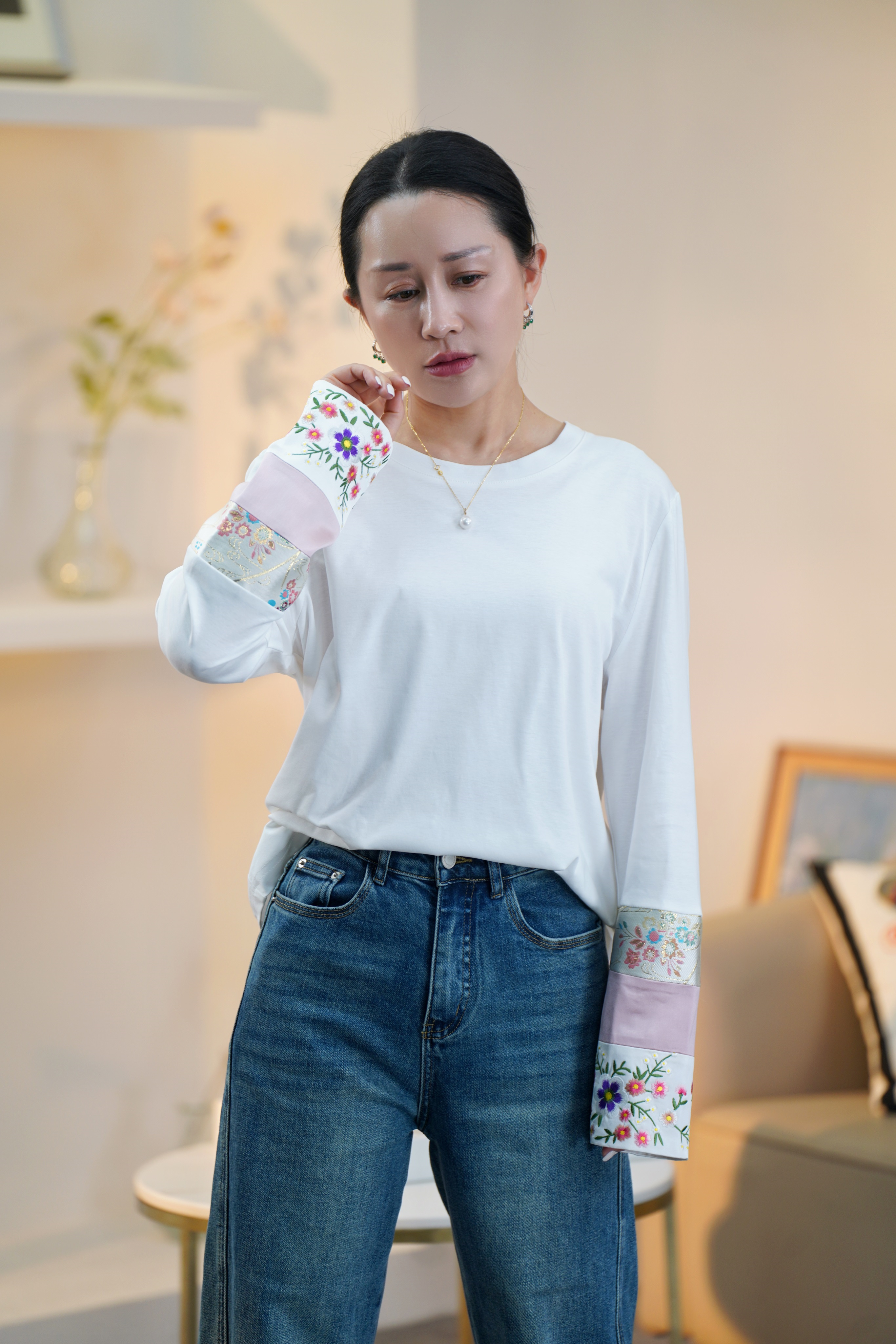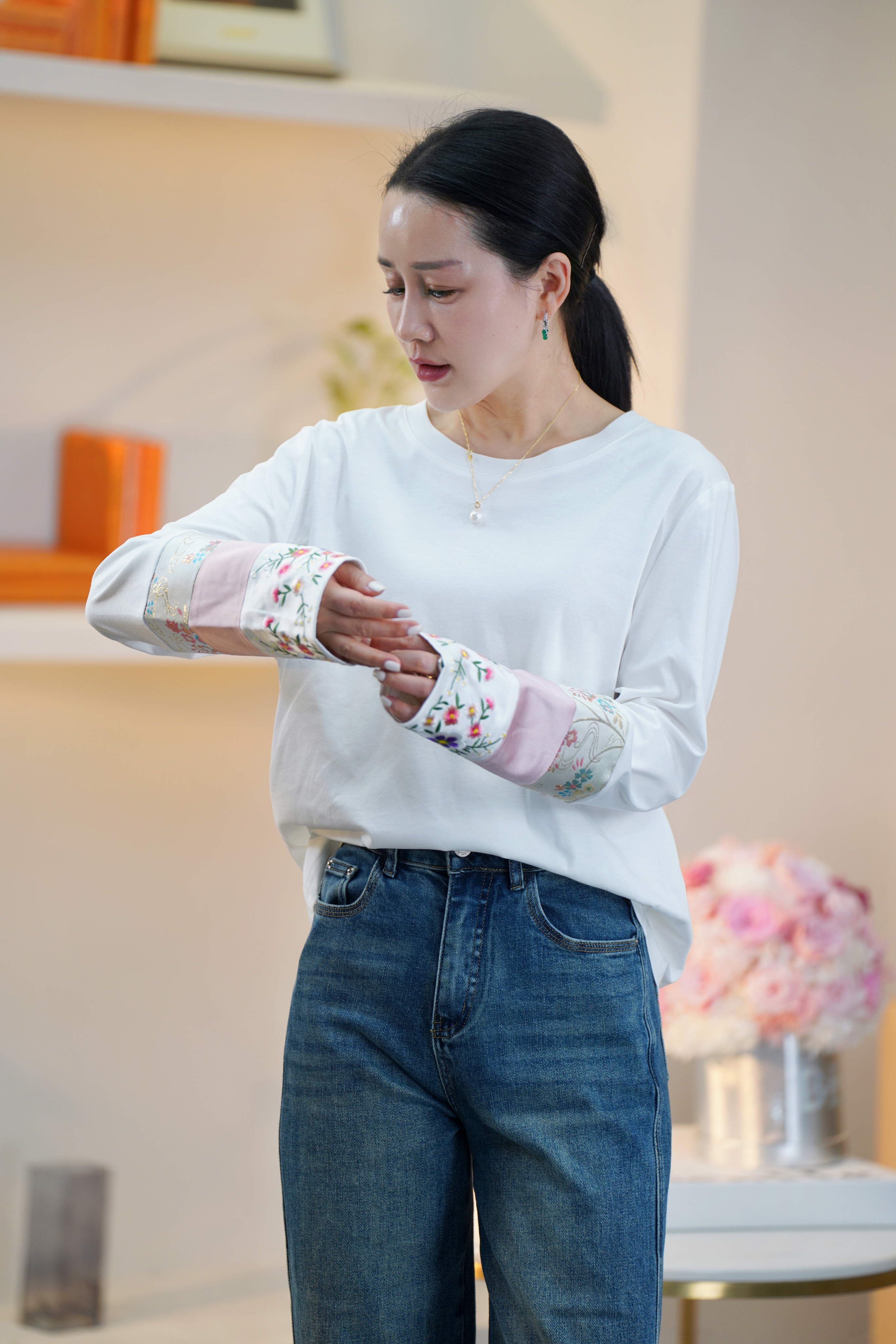 【S1L2】臣禾 圆领新中式拼接长袖T恤JZ241080358【金猪甄选】