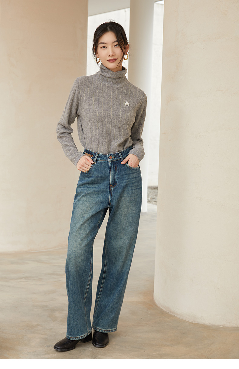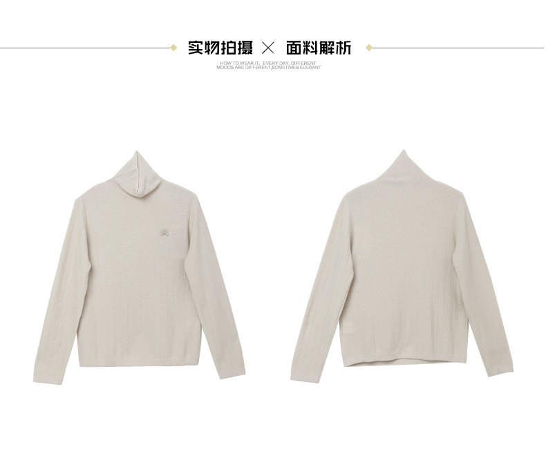 米色高领针织衫女 竖纹肌理感 秋冬内搭保暖修身长袖打底毛衣