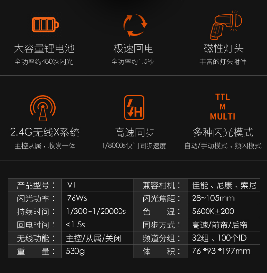 神牛V1闪光灯佳能索尼富士尼康机顶灯锂电高速TTL单反相机热靴灯