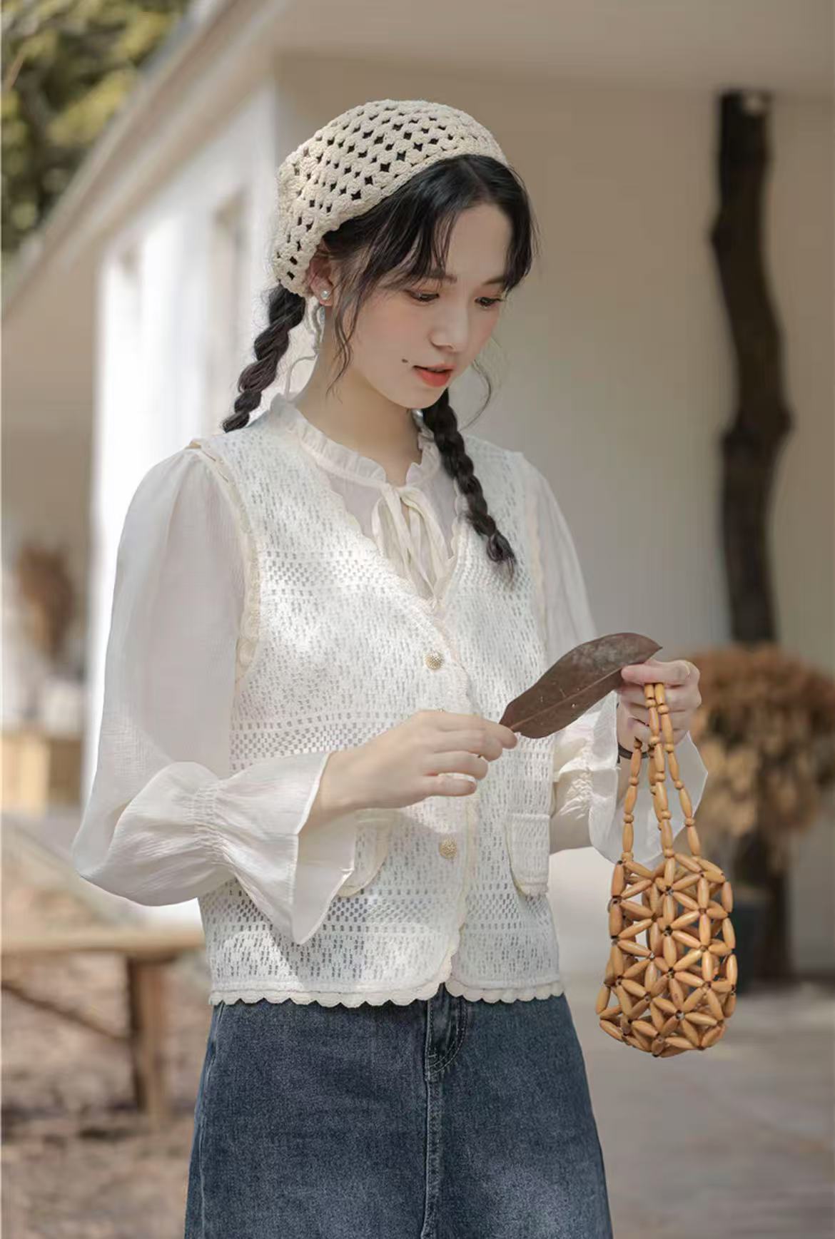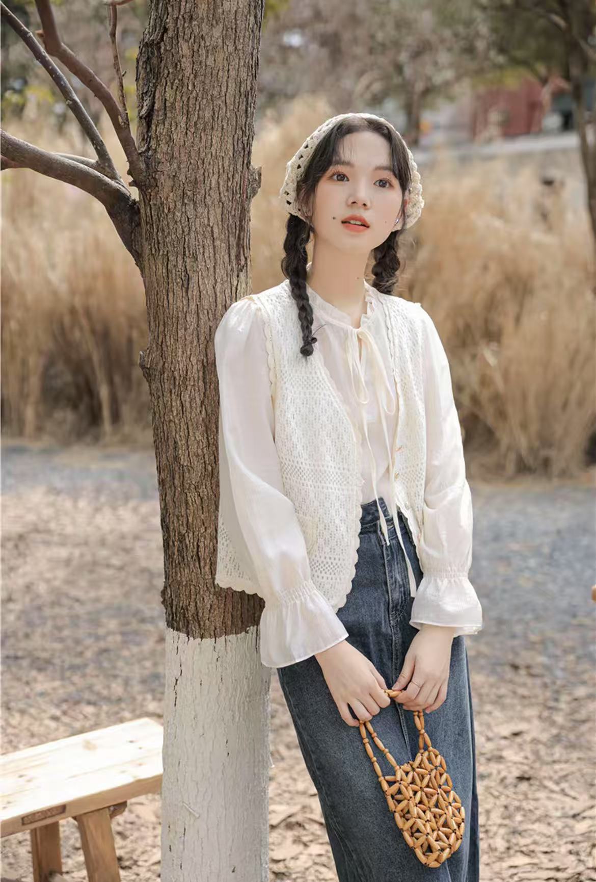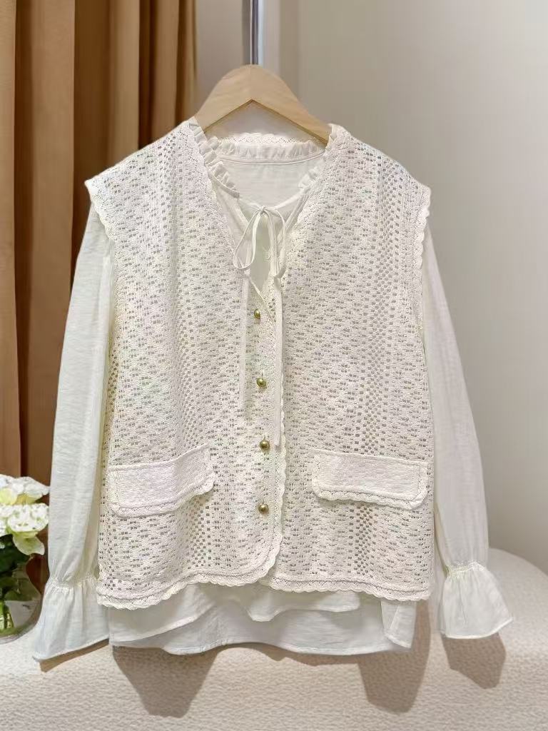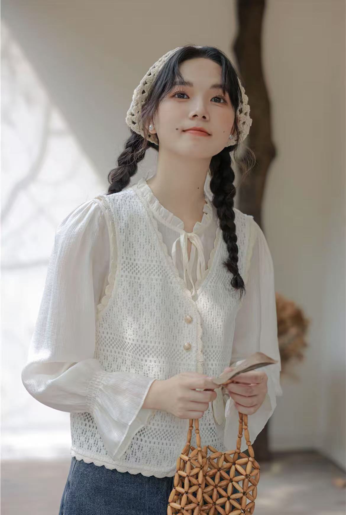 【时装系列】(两件套)法式温柔风系列蕾丝马甲➕小衫套装M1-3-喜出