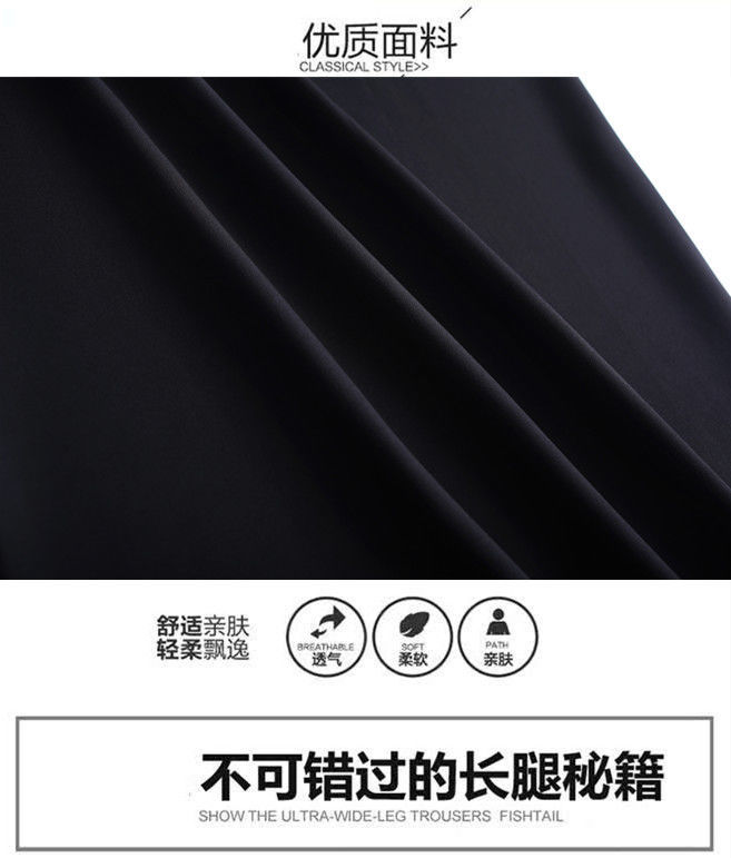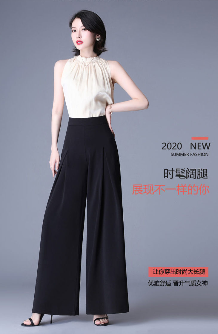 PDD-春夏新款阔腿裤高腰长裤宽松甩裤阔腿裤时尚黑色长裤