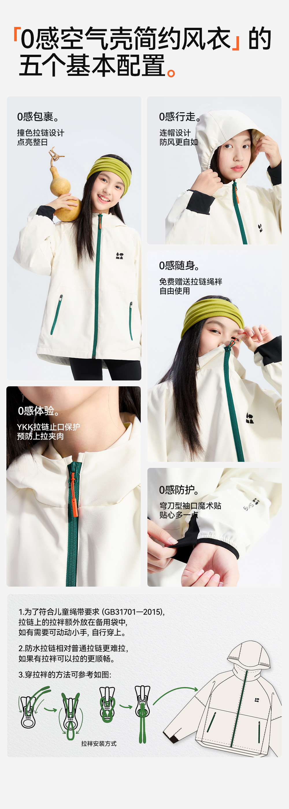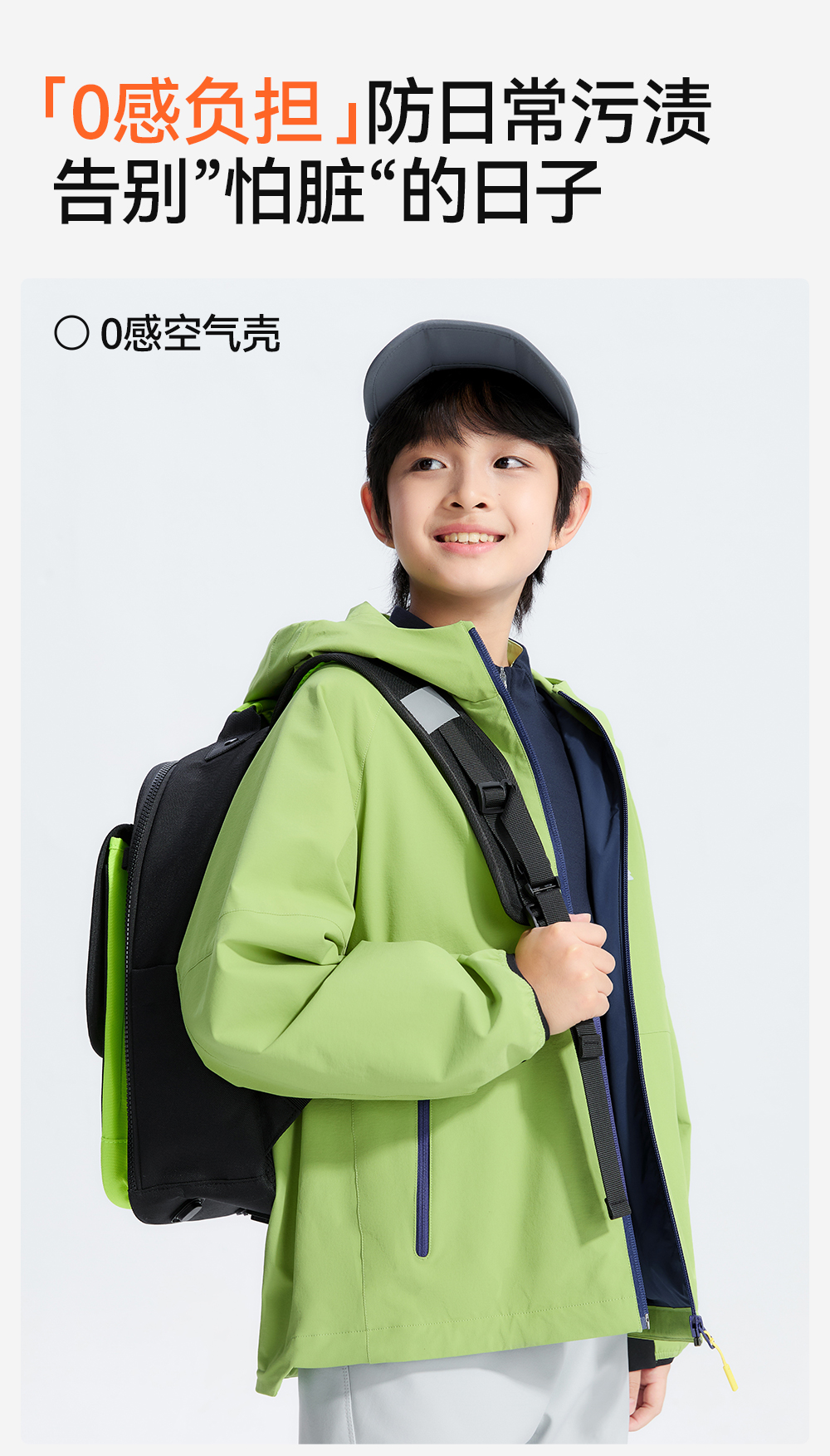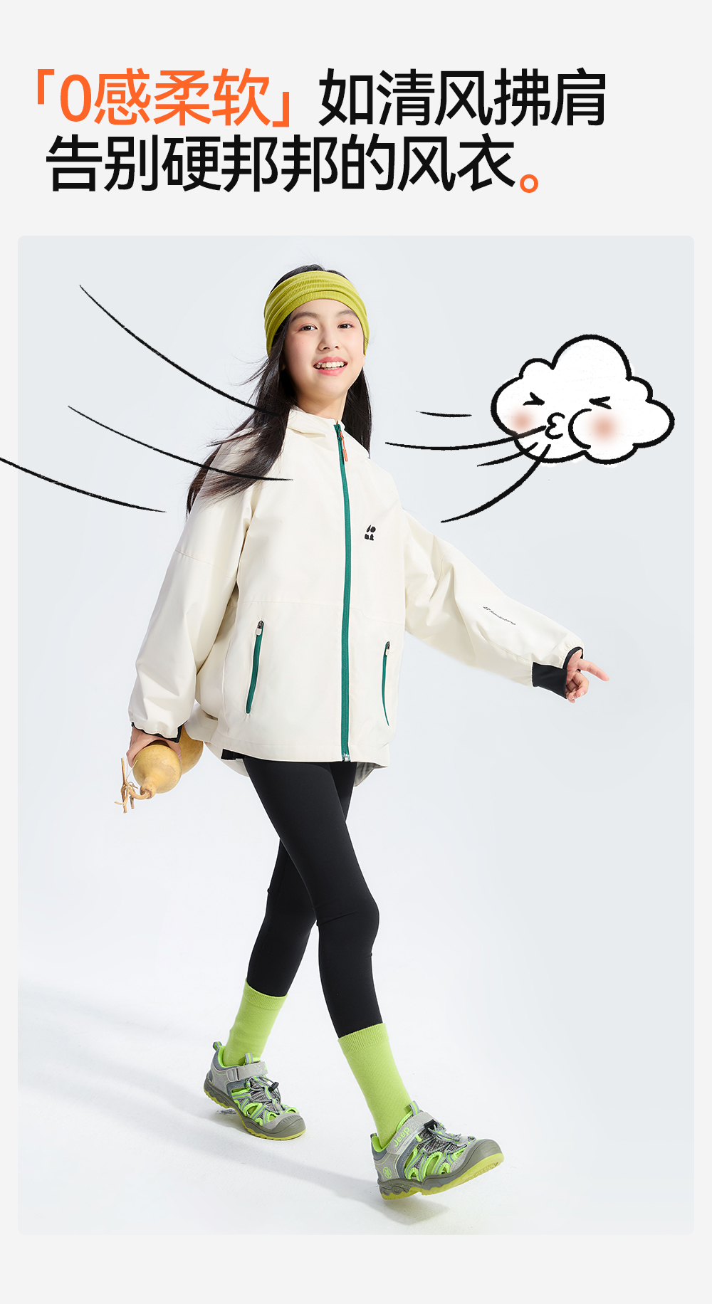 【0感空气壳简约风衣】森林棠25秋款儿童百搭高性能三防耐磨连帽外套61653002