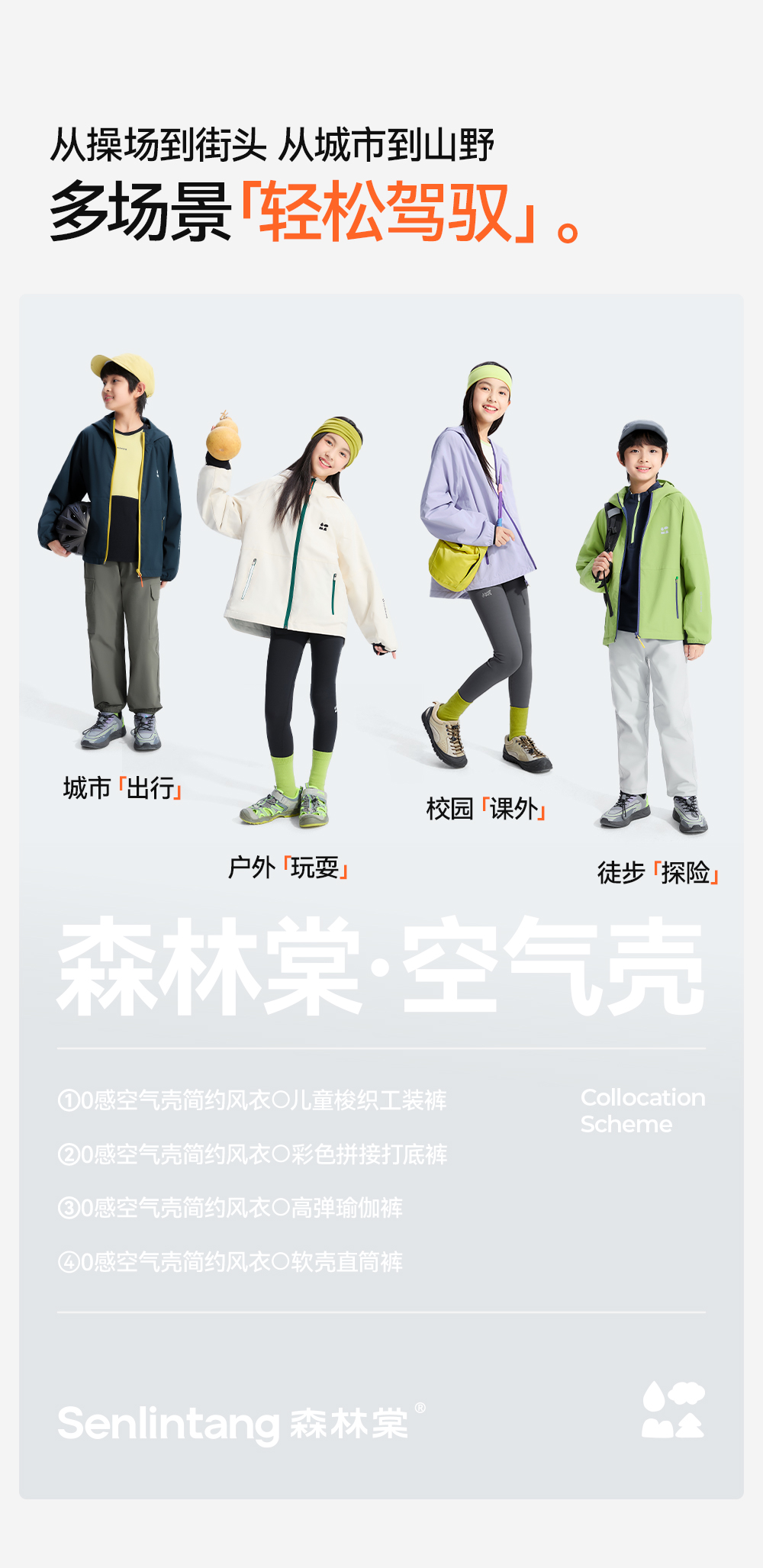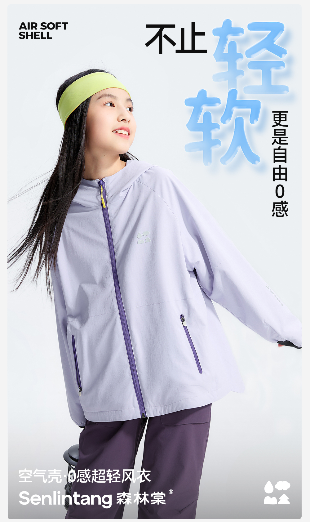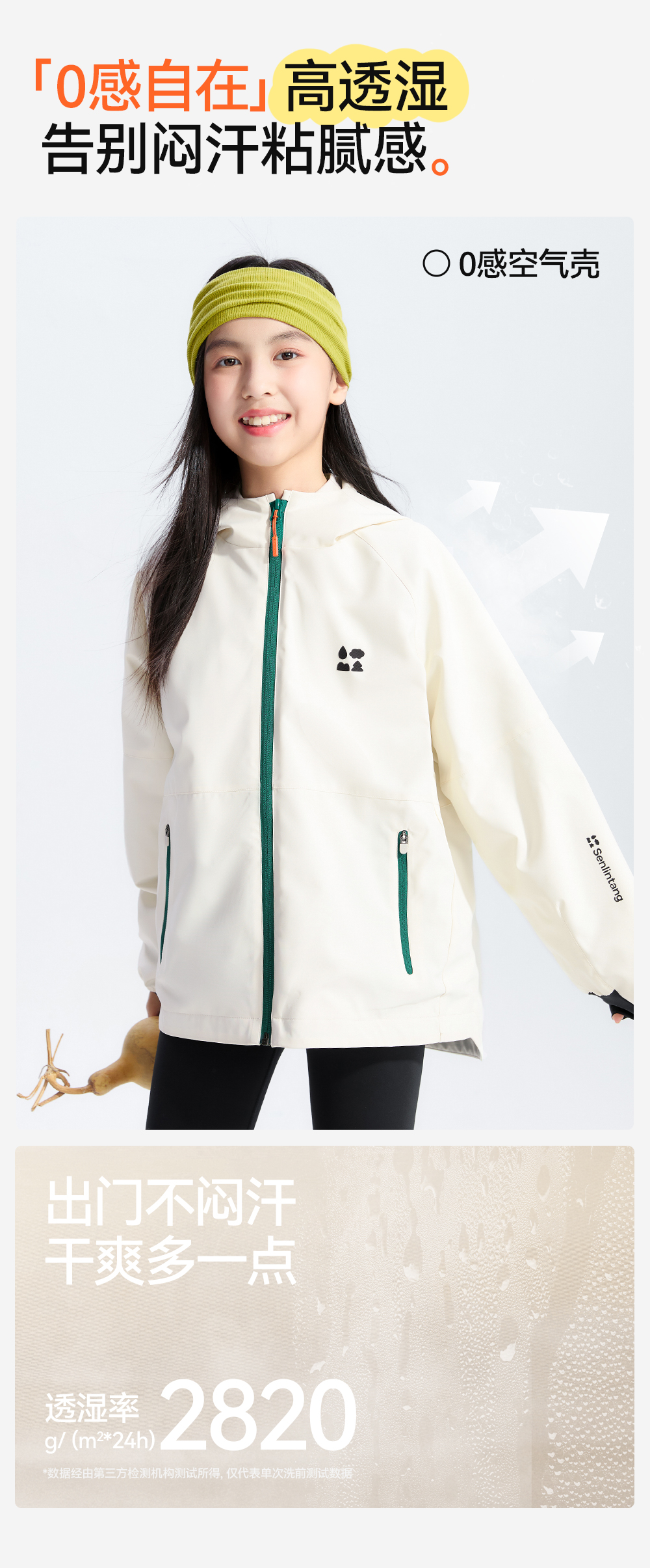 【0感空气壳简约风衣】森林棠25秋款儿童百搭高性能三防耐磨连帽外套61653002