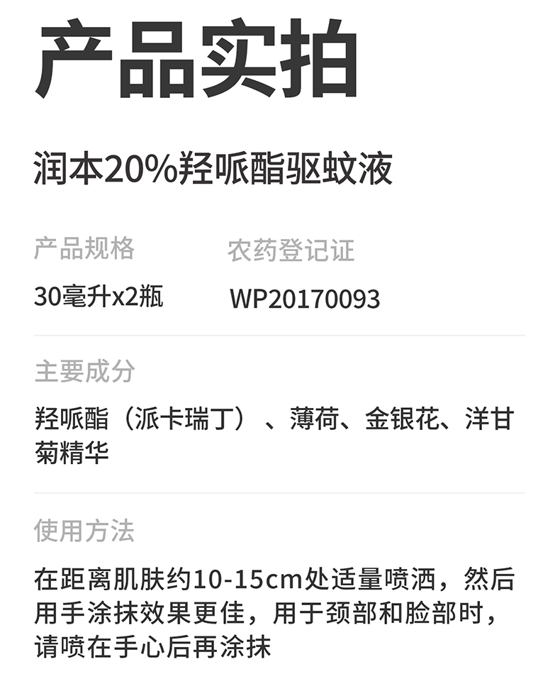 润本20%羟哌酯 驱蚊液 倒喷款 无香型 白郁兰花香 防蚊虫神器