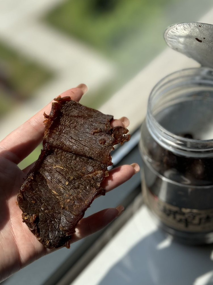 【遥远的牛—湖岭牛肉干】好大一片,肉不干也不柴,是那种湿润润的口感,越嚼越香!