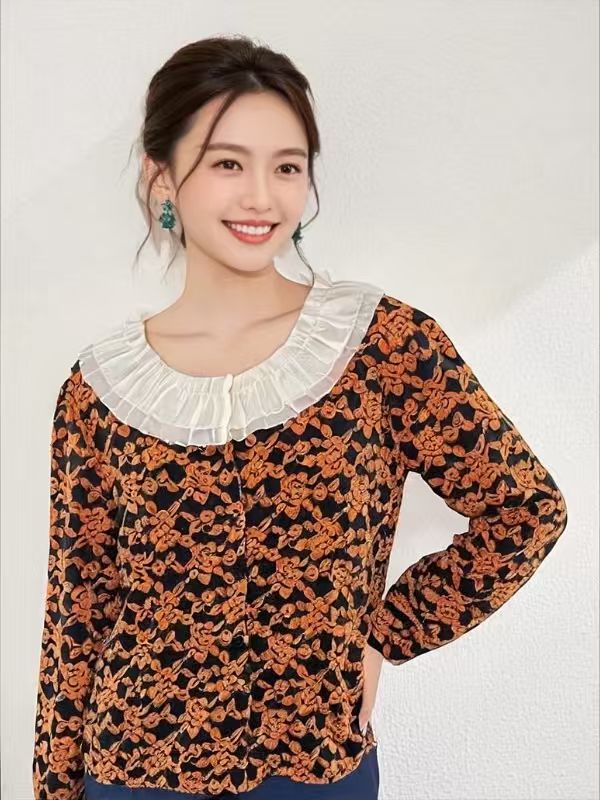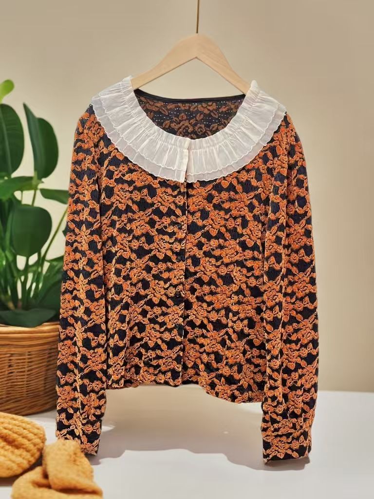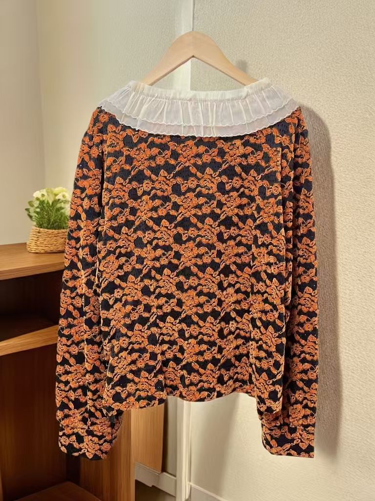 7.30秒杀~NO退【超值特卖】植绒提花长袖上衣(缺一粒扣)-喜出