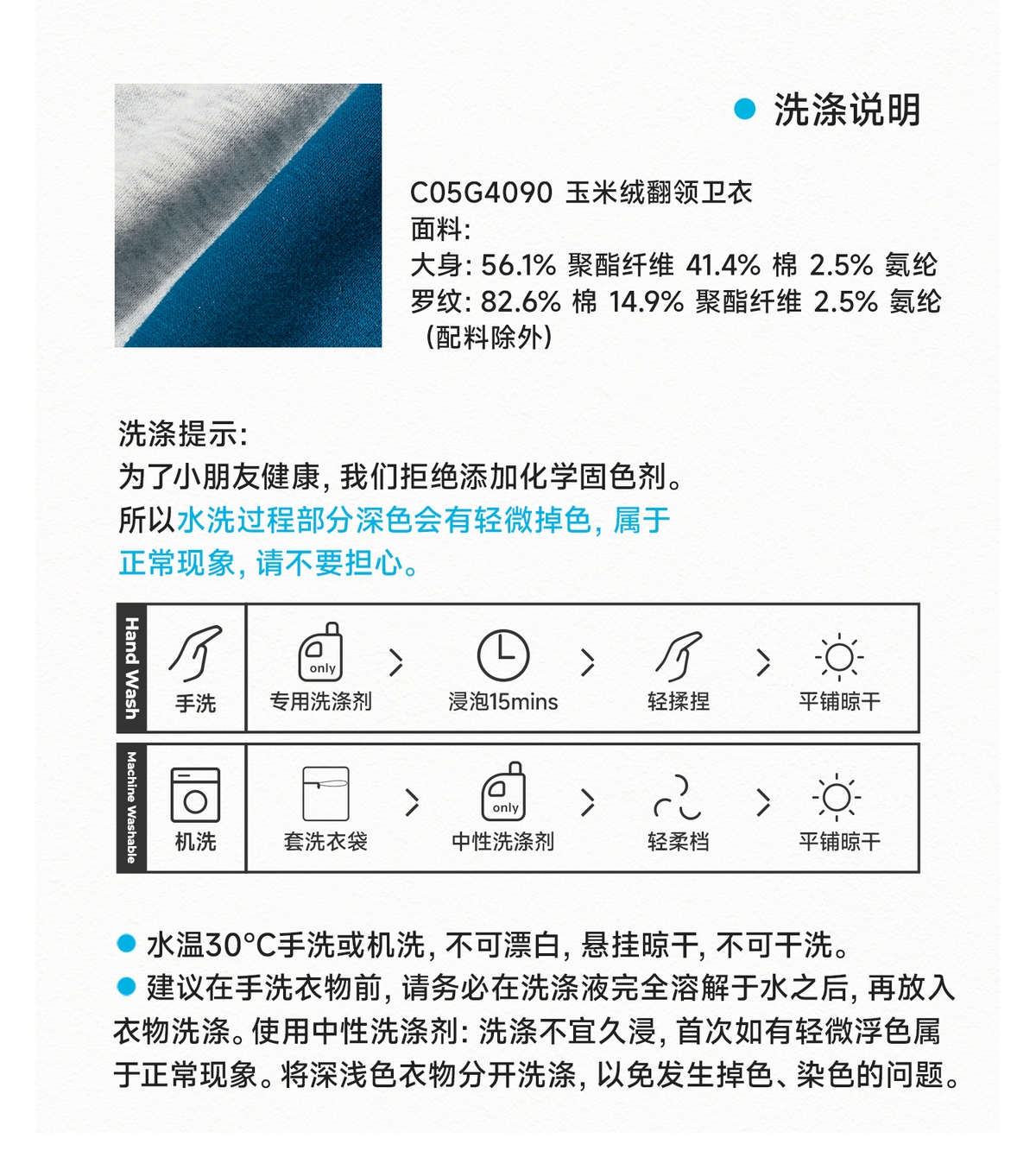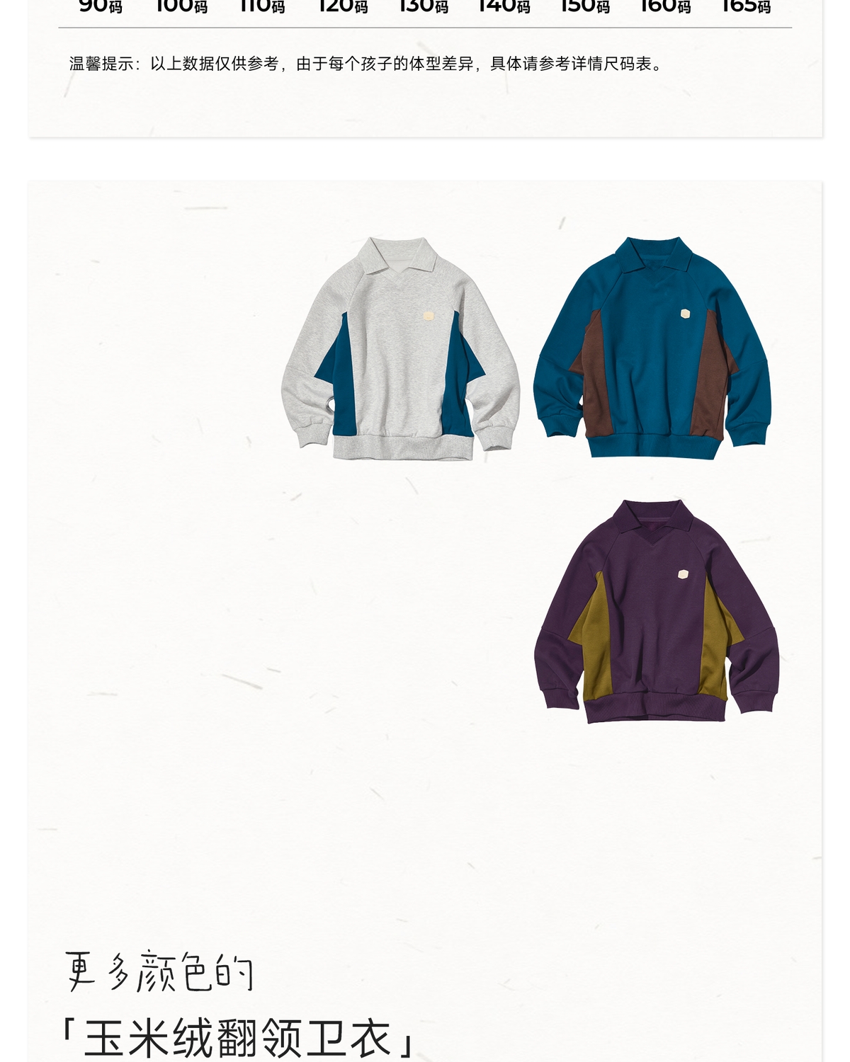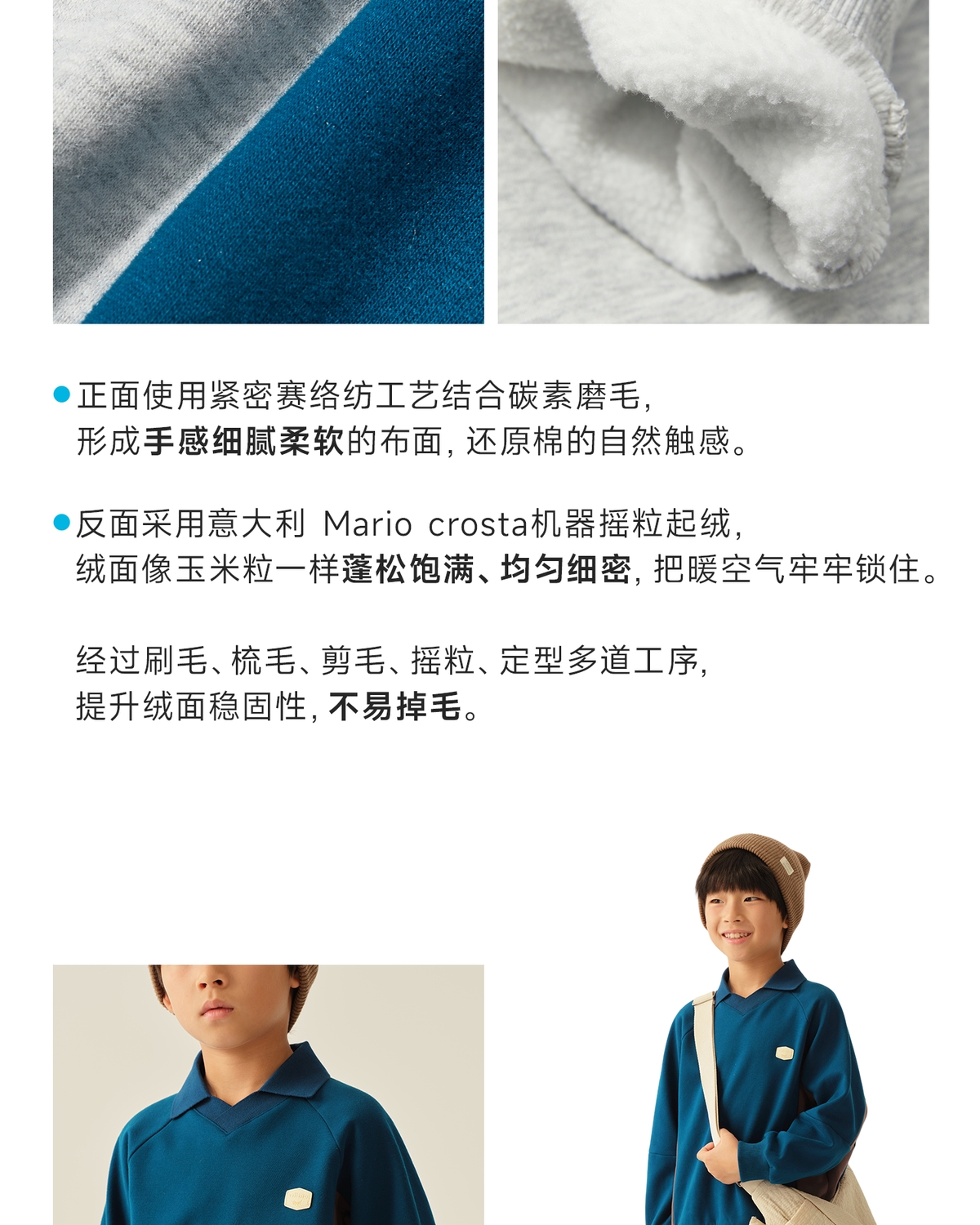 幼岚【玉米绒】儿童翻领卫衣A类加绒25冬新款男童女童上衣