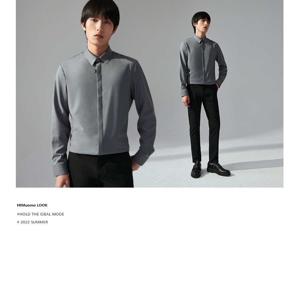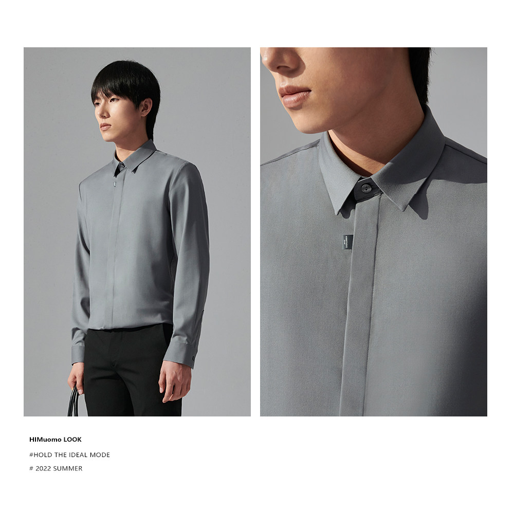 HIM漢崇 商务正装衬衫男士修身斯文优雅舒适长袖衬衣 2026夏季