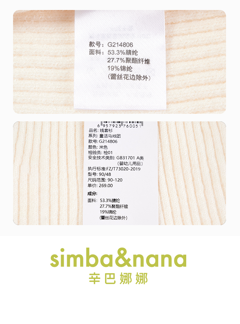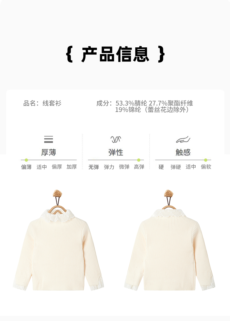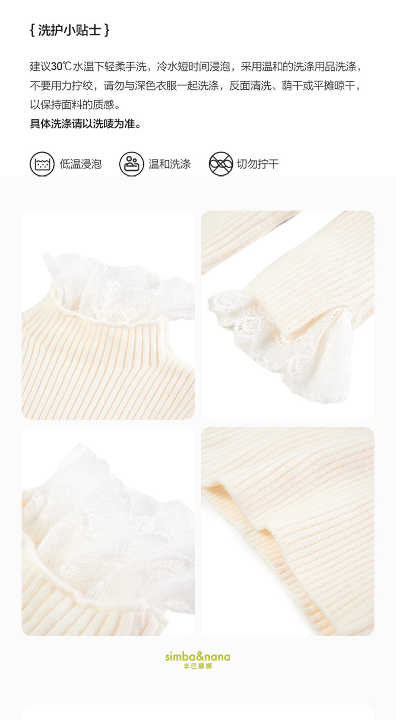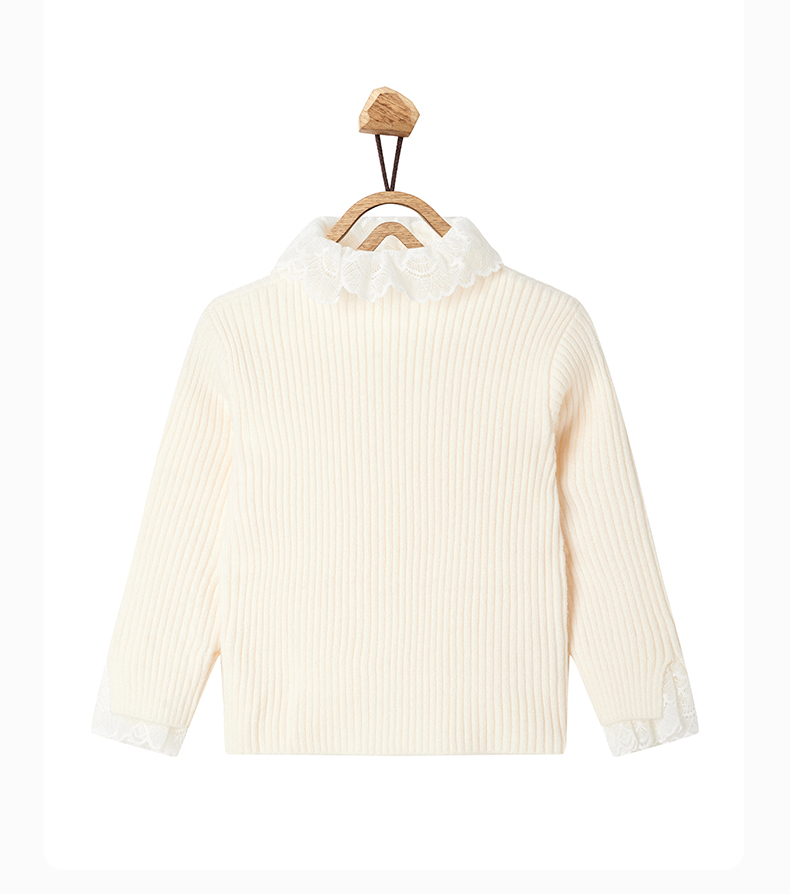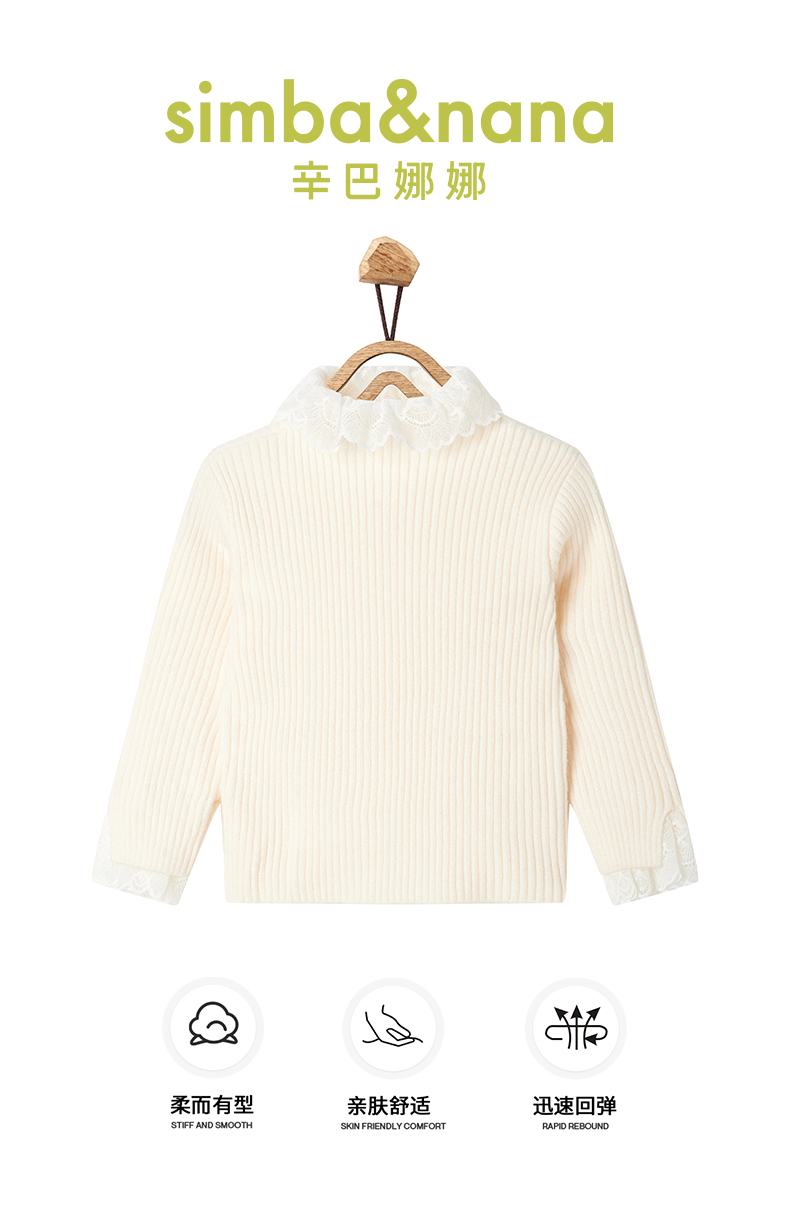 【辛巴娜娜】simbanana女童秋冬新款宝宝蕾丝花边领口基础百搭打底针织衫