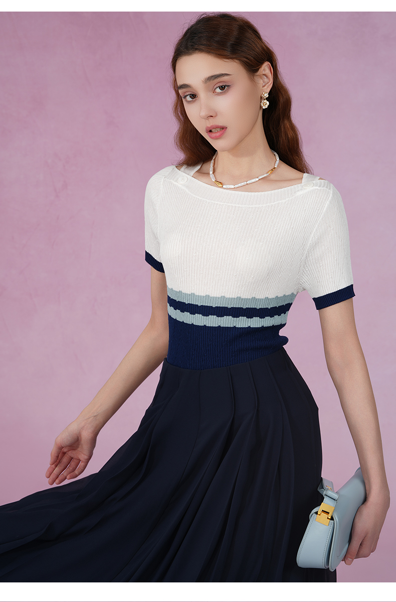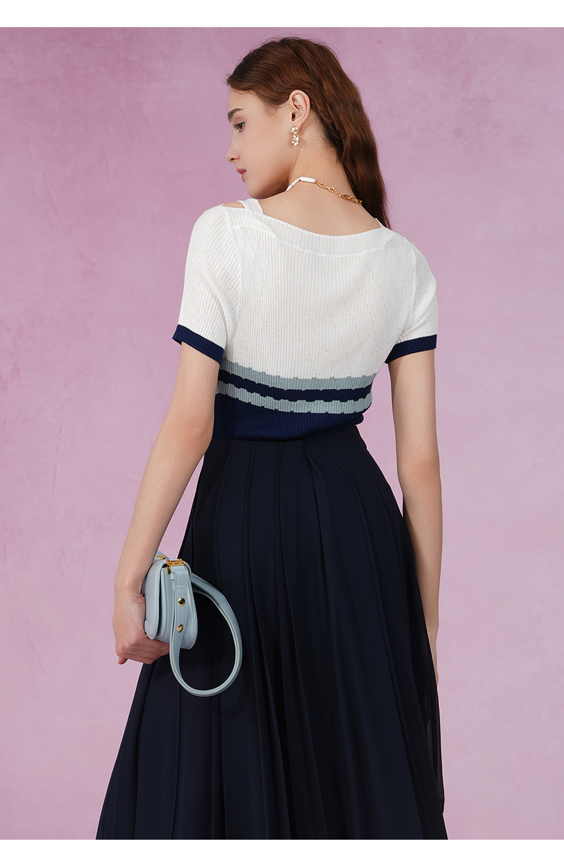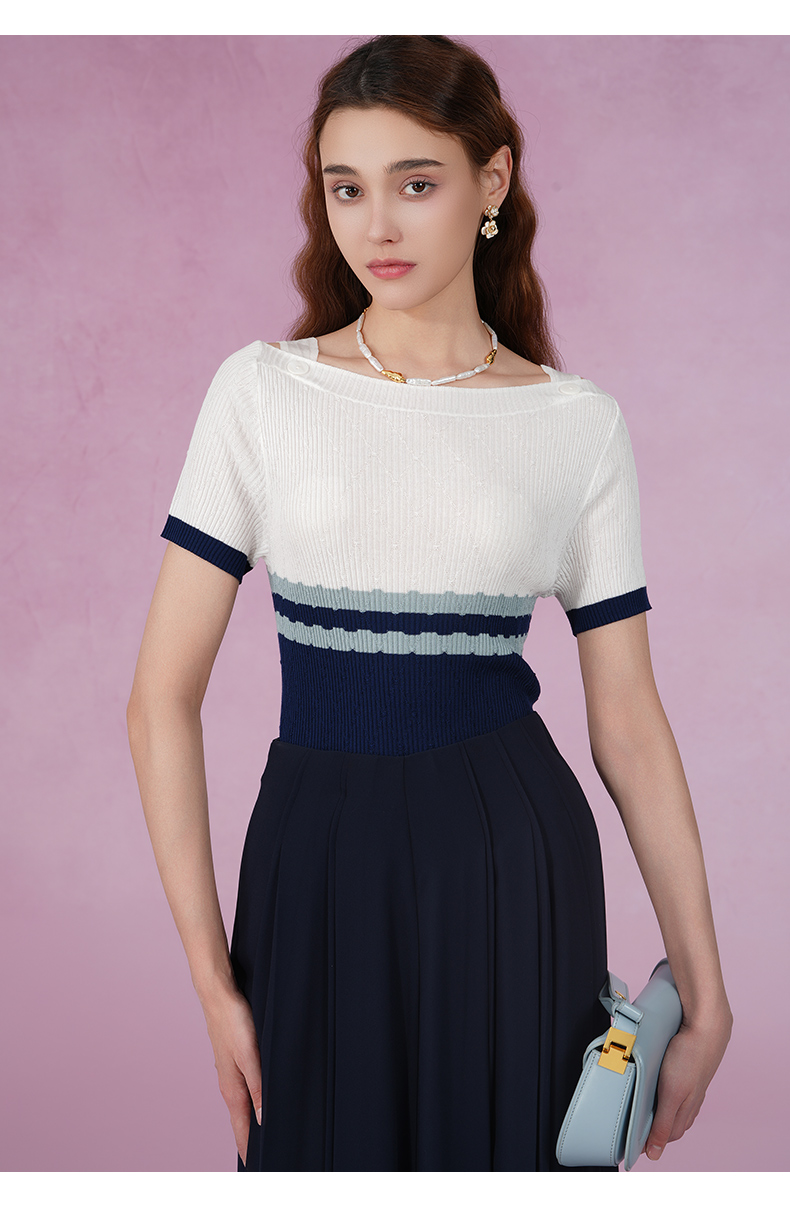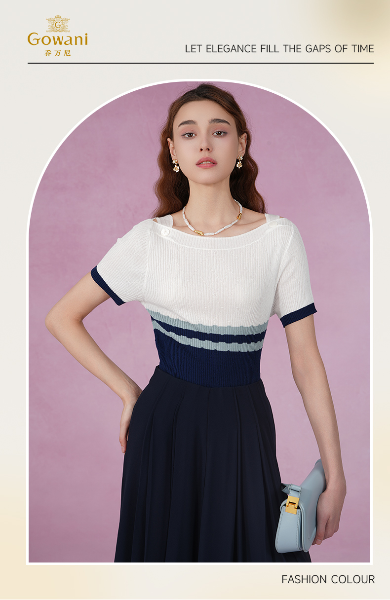 乔万尼早春冰丝针织衫薄款小香风设计感方领修身夏款上衣EI2M816