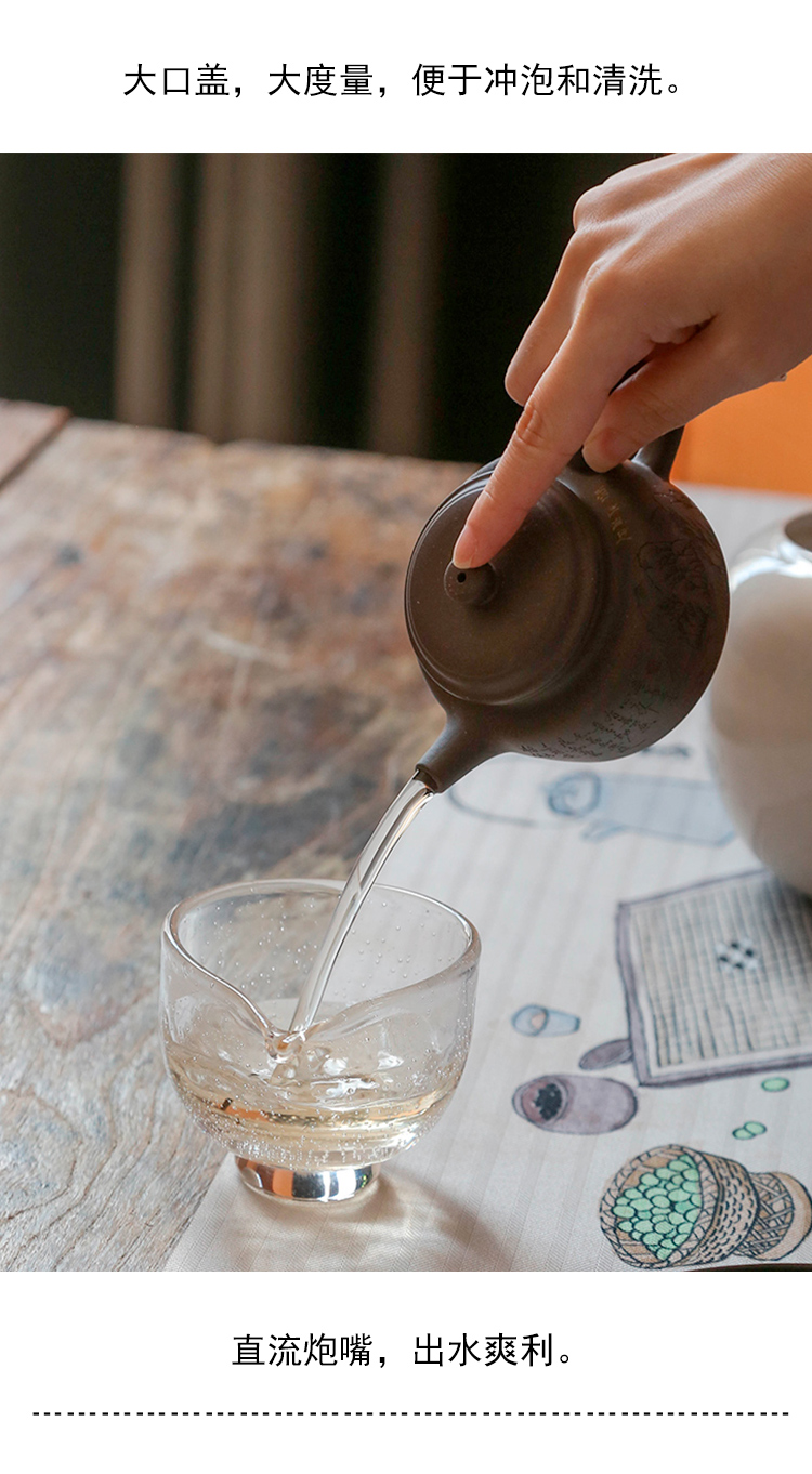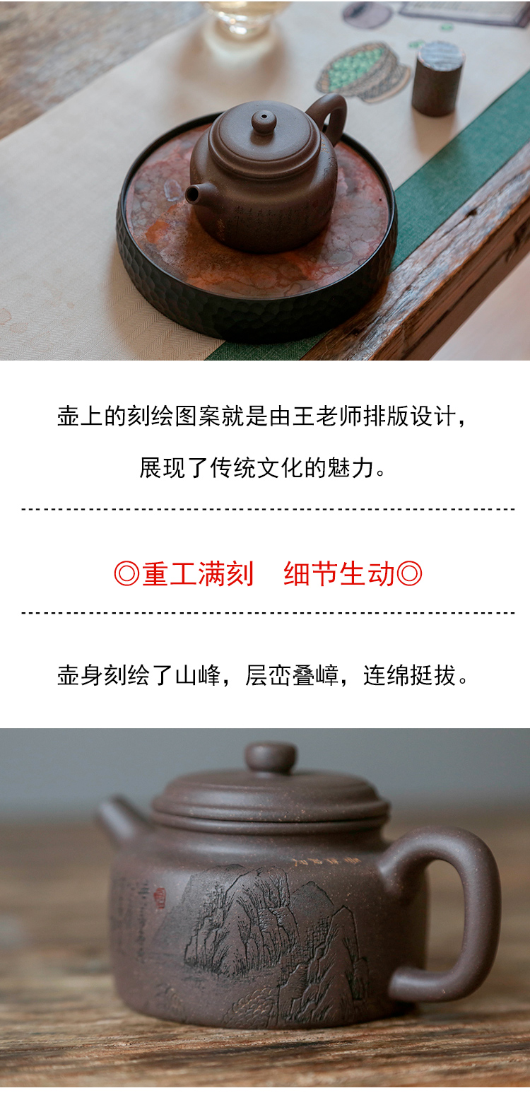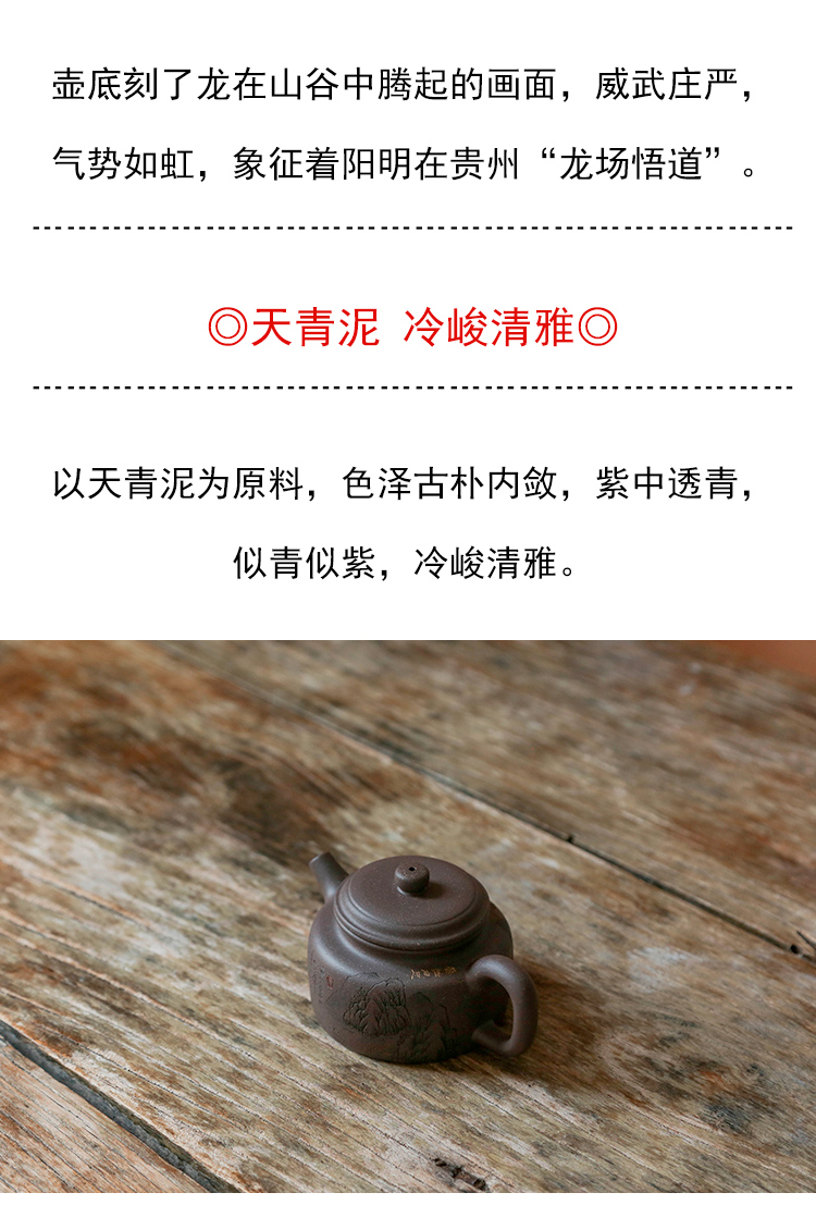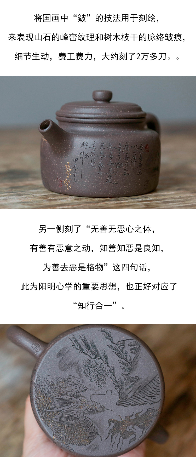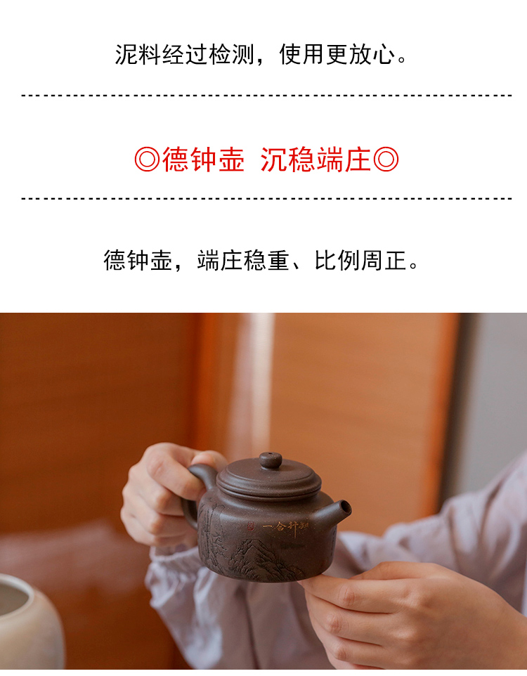 乘风阁 天青泥【知行合一】德钟紫砂壶 大气沉稳 重工满刻 古朴清雅 功夫茶具 泡茶壶
