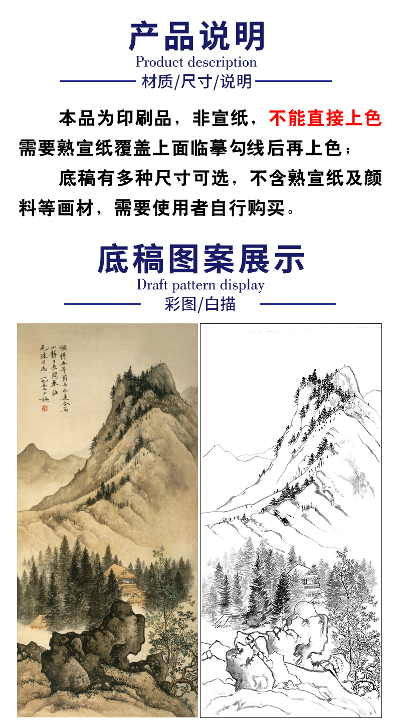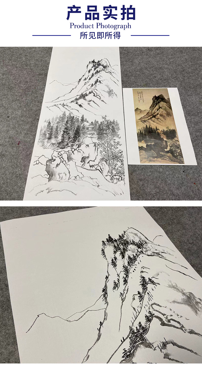 陈少梅竖幅工笔山水白描底稿-《山静日长图》-多种白描尺寸可选-CR32