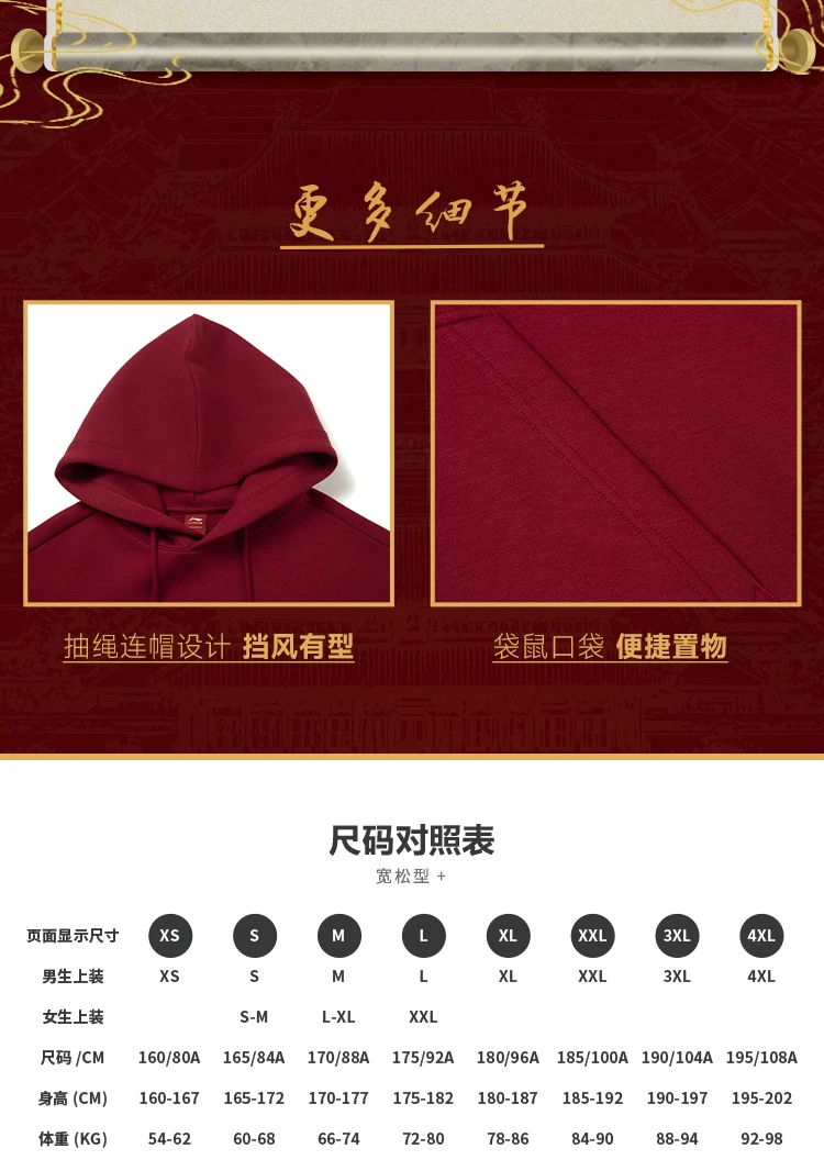 【肖战同款】李宁故宫博物院特别系列男女同款宽松套头连帽卫衣AWDVQ01