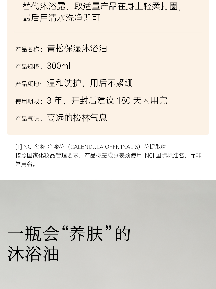 枕草子f&f系列青松沐浴油300ml,以油溶油,净肤更润肤