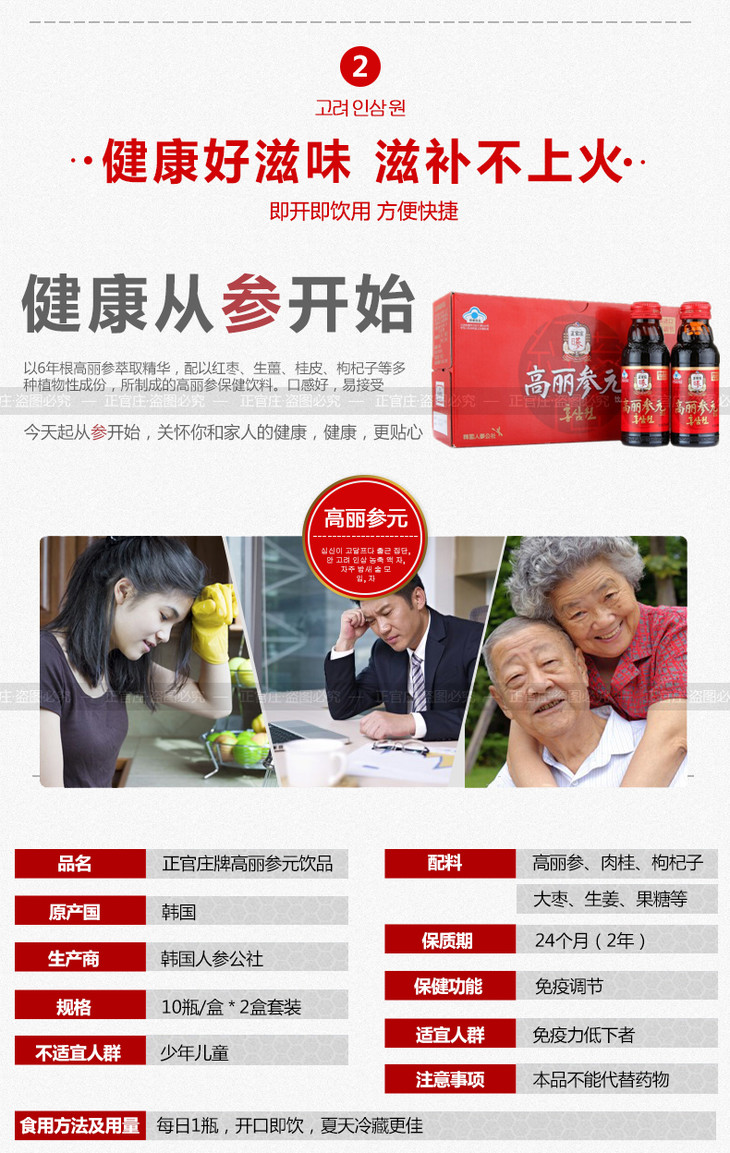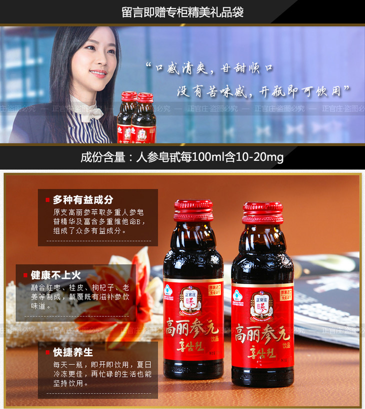 100ml*10瓶正官庄牌高丽参元饮品 增强免疫 每日一瓶更健康
