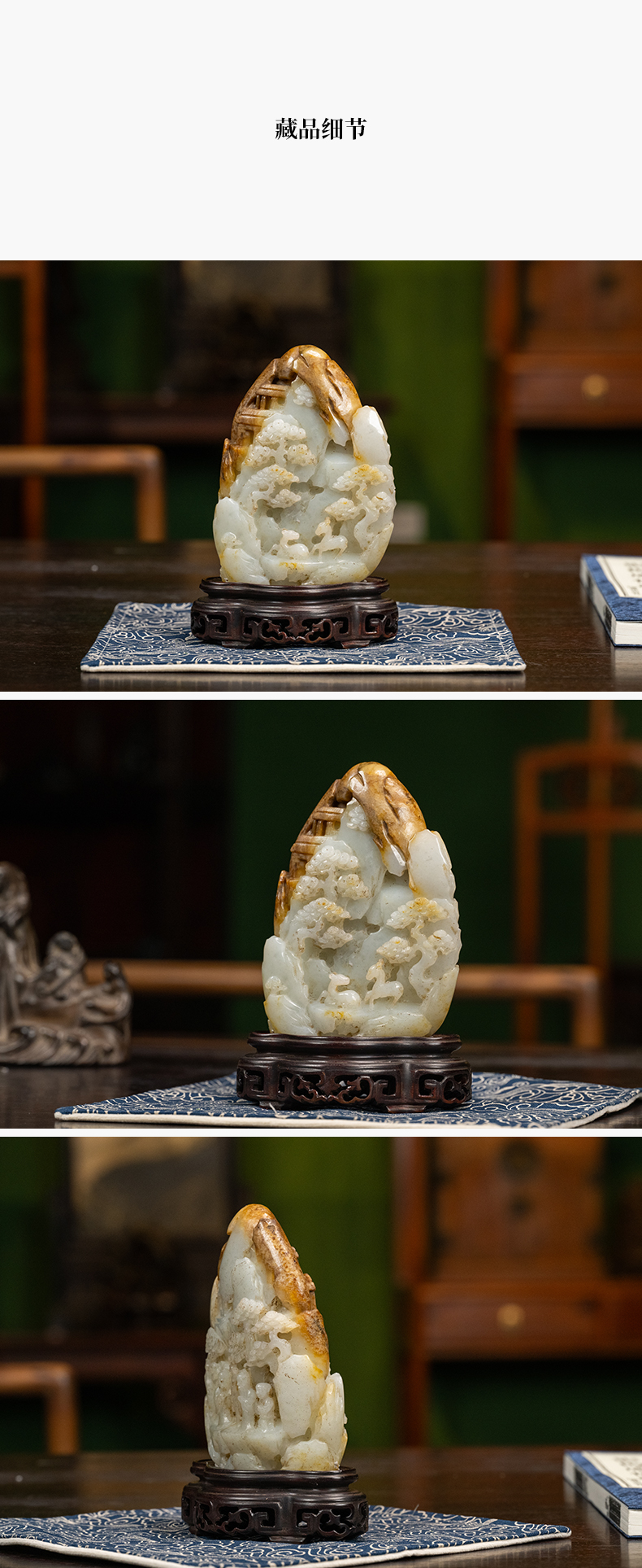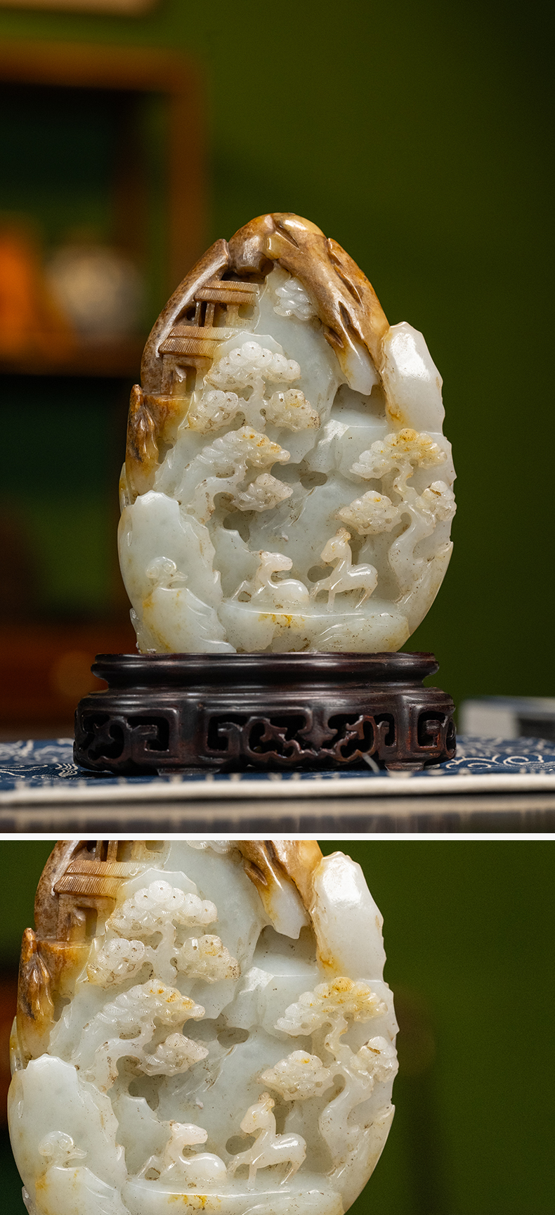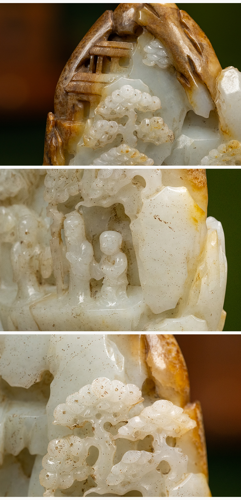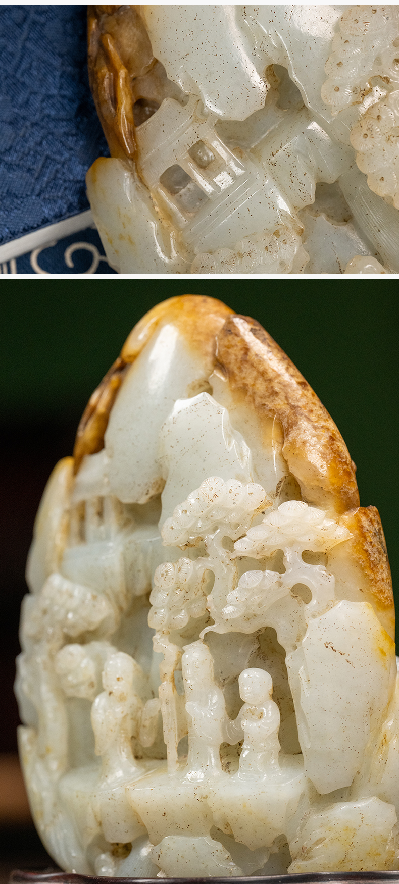 清 玉雕山水人物山子摆件(红木座)
