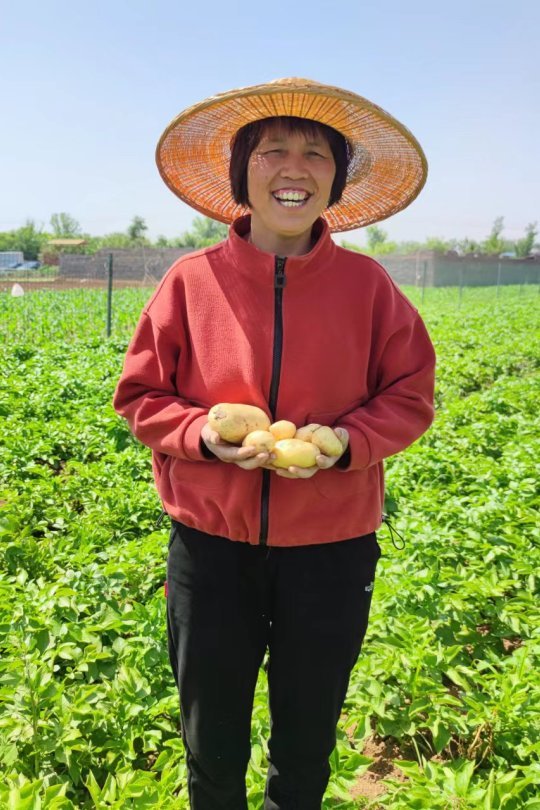 本来跟梁家女儿商量,拍一下爸爸和妈妈一起在田间地头拿着土豆的合影,后来说两个人在农场的负责的各自擅长的内容,白天两个人时间很难碰到一起。